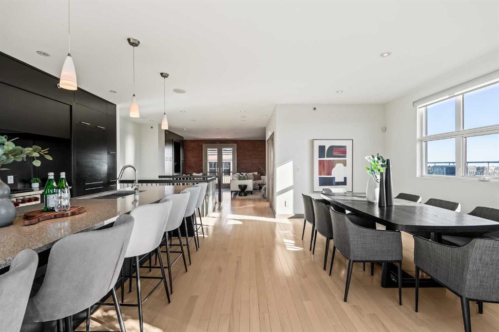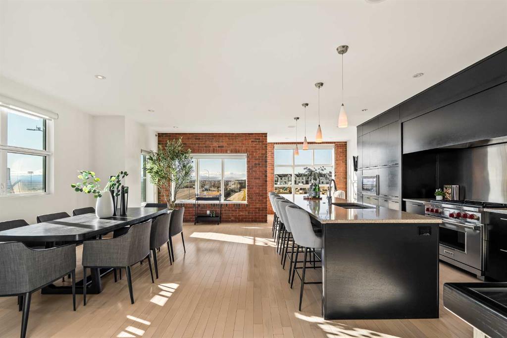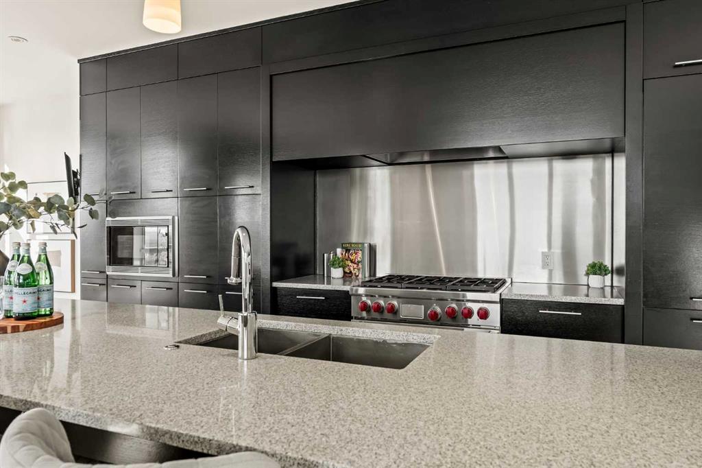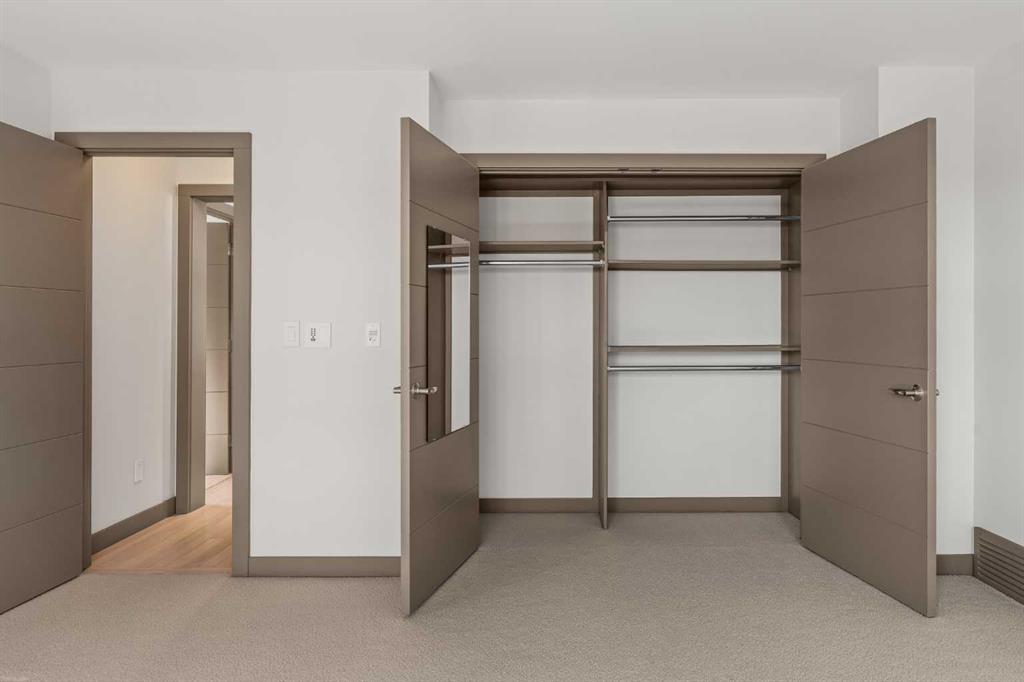 Welcome to luxury living in the heart of Aspen Estates at 101 Aspen Meadows Hill SW - a sophisticated, executive-style end-unit townhouse offering over 3,100 sq ft of beautifully designed living space, a private elevator connecting all levels, and unobstructed southwest mountain views. Perfectly suited for professionals and empty nesters seeking comfort, privacy, and low-maintenance living, this elegant residence blends timeless design with thoughtful upgrades and exceptional functionality. The entry level welcomes you with a spacious foyer, a versatile bedroom or home office complete with a custom built-in desk and Italian Murphy bed, and a full bathroom - perfect for guests or day-to-day flexibility. This level also features a bright, open-concept layout centred around a large bar and entertainment space, with a comfortable living area that opens onto a sunny balcony, creating an ideal setting for hosting or relaxing at the end of the day. The second level offers two large bedrooms, including a spacious primary retreat with dual walk-in closets (one thoughtfully converted from the original laundry space) and a luxurious 5-piece ensuite. A second bedroom with its own ensuite ensures comfort and privacy for guests or visiting family. Wool carpeting adds warmth and comfort throughout this level, while integrated audio and visual upgrades enhance everyday living. The top floor is designed for both entertaining and relaxation, featuring a stunning family room with an electric fireplace, an expansive dining area, and a second chef-inspired kitchen complete with premium appliances including Sub-Zero, Wolf, and Miele. Beautiful exposed brick adds warmth, character, and a timeless architectural element, creating a striking backdrop that elevates the entire space. Large windows frame the sweeping mountain views and capture sunlight throughout the day thanks to the home’s east south west exposure. Downstairs, the fully developed basement adds valuable flex space with a recreation room, laundry area with Miele washer, water softener, and built-in TV and sound system. The heated double attached garage is a standout, finished with an epoxy floor, new heater with thermostat and remote control, built-in cabinets, workshop space, and a convenient shoe closet. Additional upgrades include Lutron programmable lighting, remote-controlled blinds and shades, a hot water recirculating pump, updated elevator components, glass shower enclosures in all bathrooms, and a new electrical breaker panel - all contributing to a refined and effortless lifestyle. Located in the prestigious Aspen Woods community, this home offers exceptional convenience with the C-Train just across 17th Avenue, quick access to Stoney Trail and Highway 1, and close proximity to Westside Recreation Centre, shopping, dining, and top-rated schools.