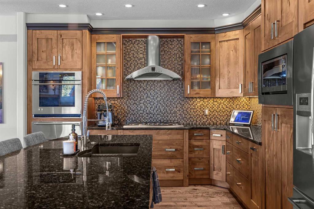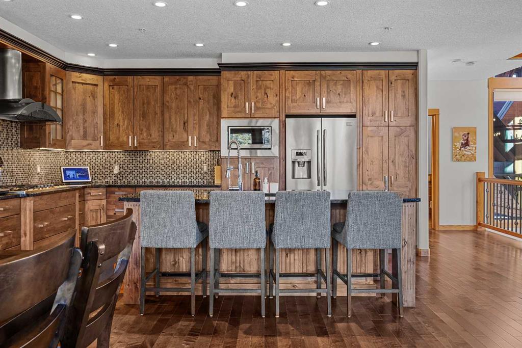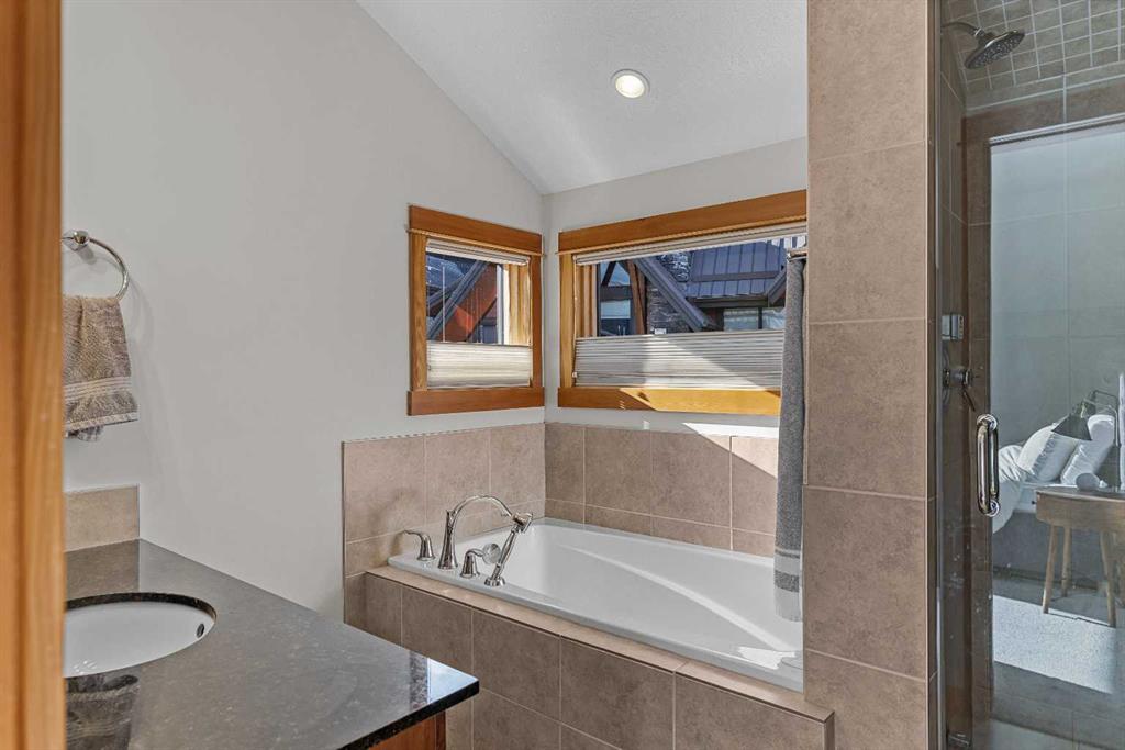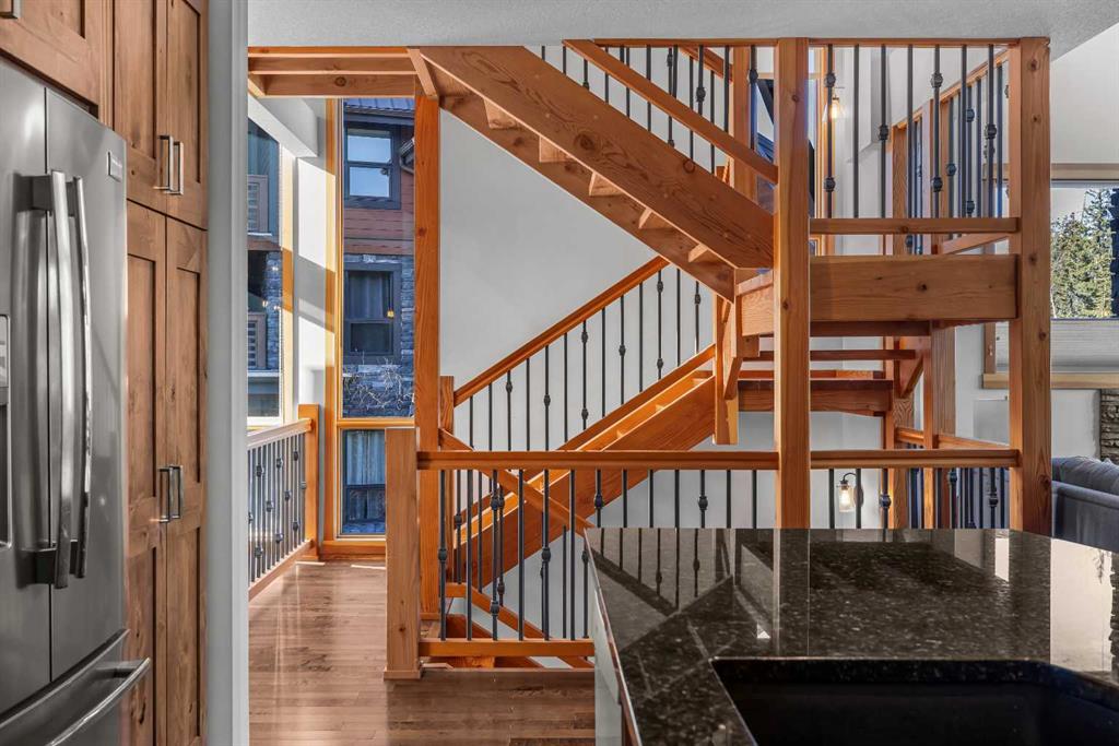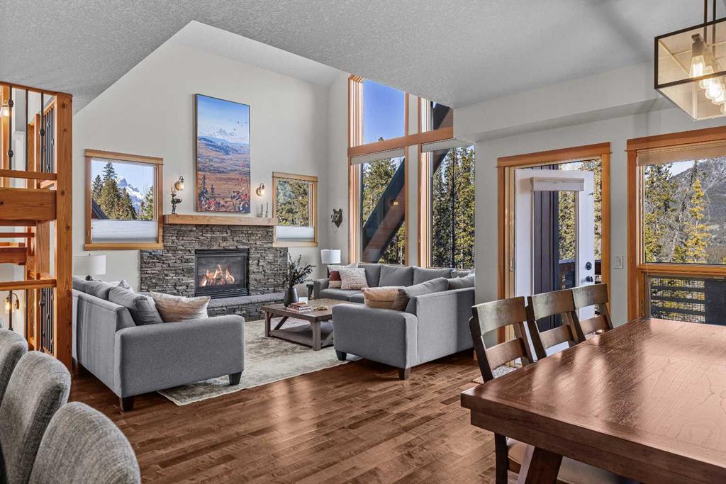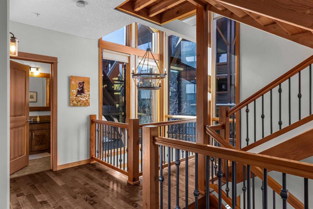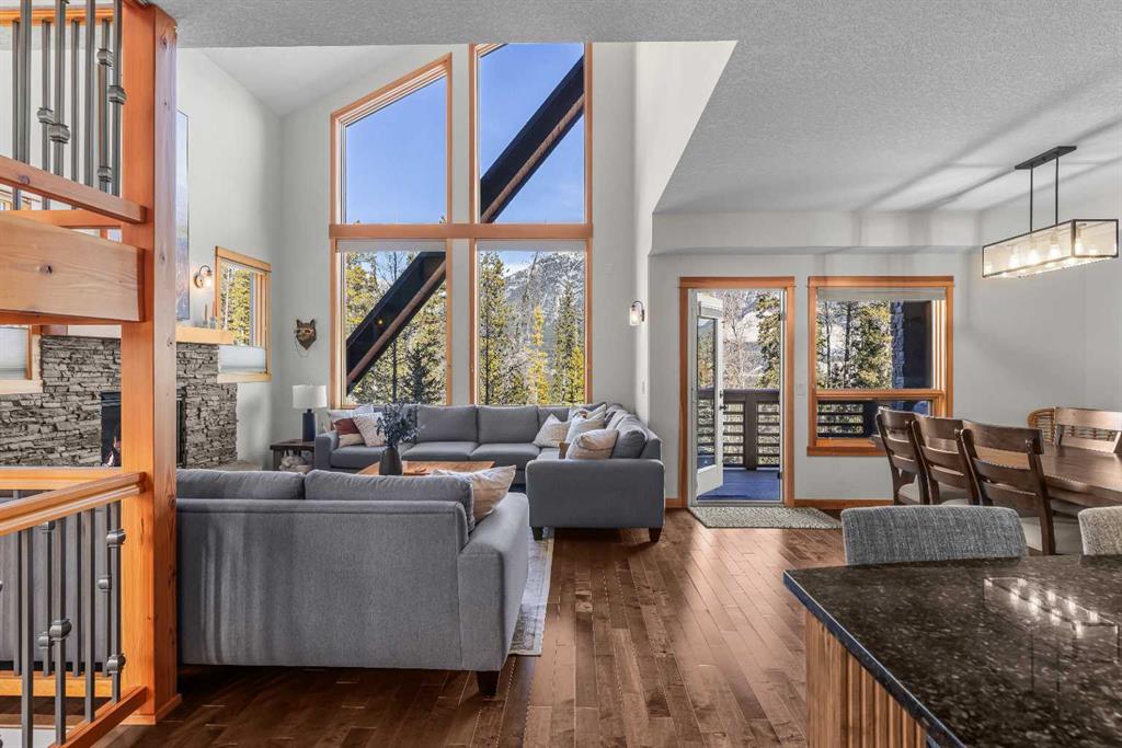 Soaring ceilings, timber frame accents, and panoramic mountain views set the tone the moment you walk in. Offering almost 3,000 square feet of thoughtfully designed living space, this mountain retreat blends scale with warmth. An open-riser staircase adds architectural flair and enhances the true chalet feel. With multiple decks and a walkout level built for entertaining, the home is designed for both gathering and quiet escape. The main level features a gourmet kitchen with stainless steel appliances, alder cabinetry, granite counters, BBQ deck access, and a spacious dining nook. The great room showcases floor-to-ceiling windows and a cozy gas fireplace framed by valley views. Tucked around the corner is a convenient half bath and a generous bedroom with private ensuite and its own coffee deck. Upstairs offers a loft/office plus two additional bedrooms, each with its own ensuite, including a steam shower in the primary. Wake up to Lady Mac out back or Big Sister out front from the primary suite. The walkout level includes a second living room with fireplace, games area, wet bar, 4-piece bath, and hot tub patio backing onto green space and pathway. A double attached garage provides room for all your mountain gear, and the high-end mechanical system, including boiler and heat recovery, reflects the quality throughout. Furniture is included, making this a true turnkey opportunity—just move in and enjoy mountain life.