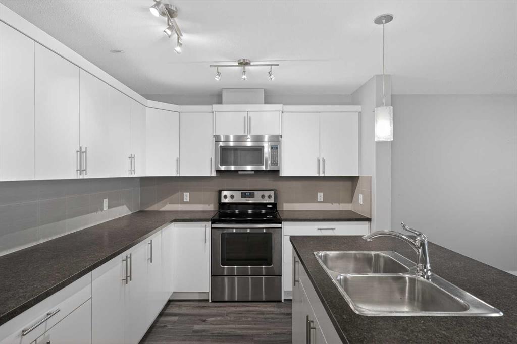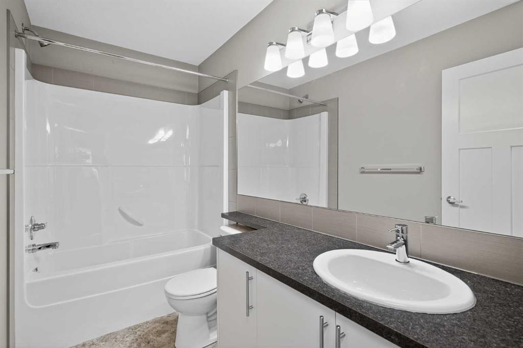 Welcome to Skyview Ranch Grove — a beautifully maintained multi-level townhouse offering modern finishes, smart design, and comfortable everyday living. From the moment you step inside, you’ll notice the pride of ownership and lightly lived-in condition that gives this home the feel of a new build. Contemporary cabinetry, quality flooring, and sleek countertops create a clean, modern aesthetic that’s both stylish and practical. The main living level is thoughtfully designed with an open-concept layout where the living room, dining area, and kitchen flow seamlessly together. High ceilings enhance the sense of space and allow natural light to move freely throughout. Whether you're entertaining guests or enjoying a quiet evening at home, the layout keeps everyone connected while still feeling spacious and comfortable. The kitchen is generously sized and highly functional, offering ample counter space, modern cabinetry, and excellent ventilation. It’s designed for real life — easy meal prep, everyday organization, and effortless hosting. A built-in Heat Recovery Ventilator (HRV) improves air quality and energy efficiency year-round. Upstairs, you’ll find two well-sized bedrooms that provide flexibility for a variety of needs. The primary bedroom offers a comfortable retreat with plenty of room for a full bedroom set, while the second bedroom works perfectly as a guest room, child’s room, or home office. Two bathrooms help keep daily routines running smoothly. Ideally located near parks, walking paths, K–9 schools including Apostles of Jesus and Prairie Sky School, and major amenities such as CrossIron Mills and the airport, this home offers convenience without sacrificing comfort. Modern, functional, and move-in ready — a perfect fit for first-time buyers, young families, or investors looking for quality in a growing community.