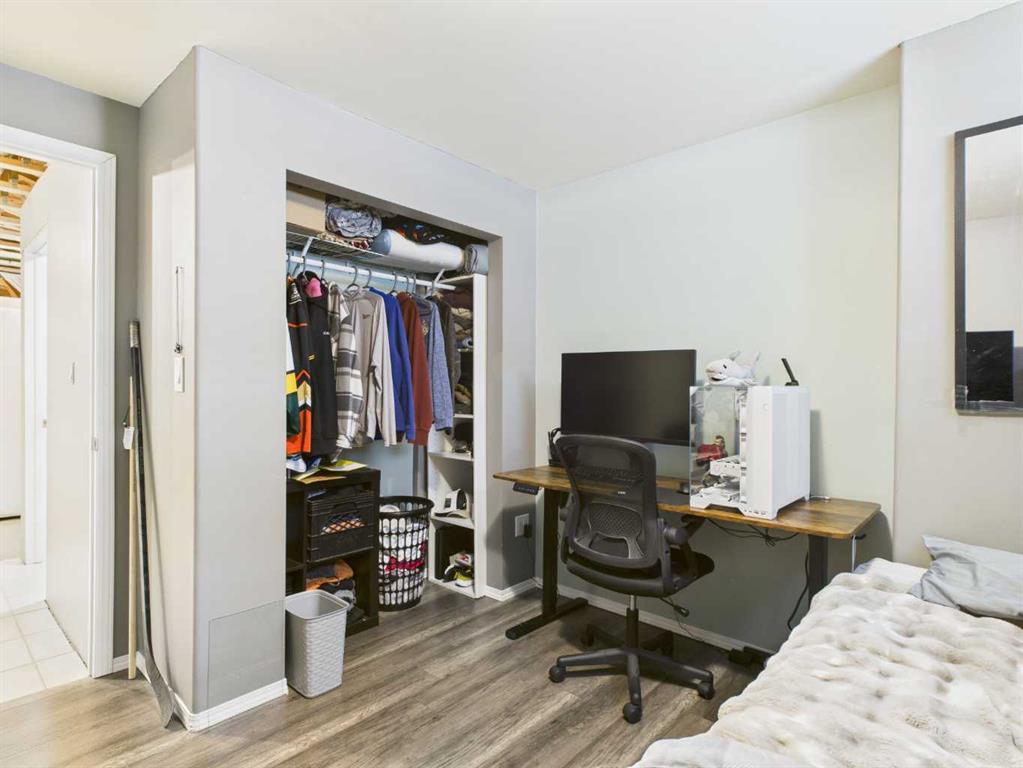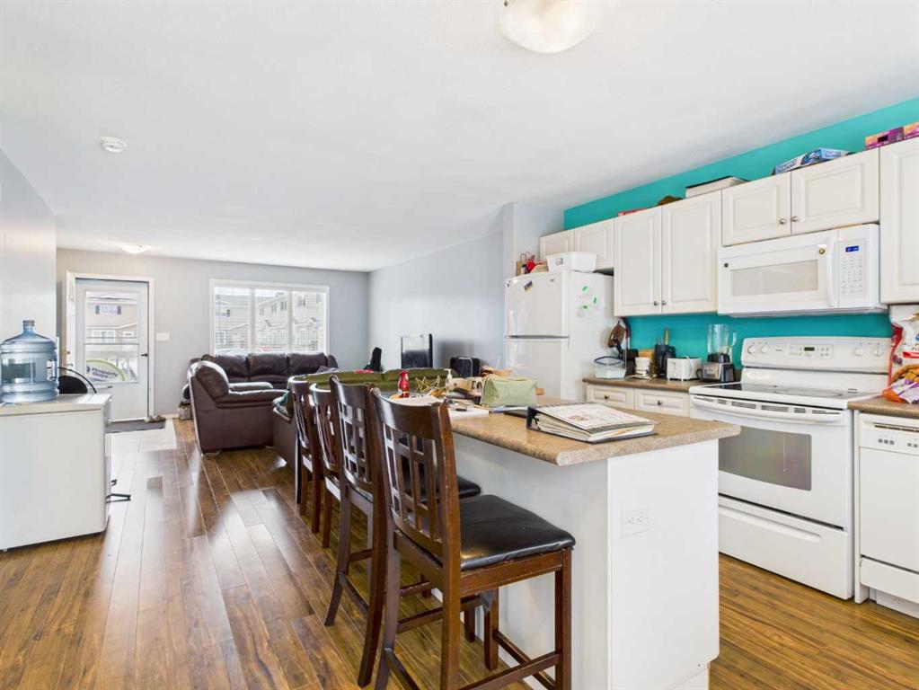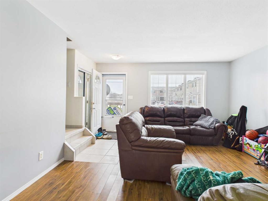 Visit REALTOR® website for additional information End-unit condo townhouse with a functional layout, updates on multiple levels, and a partially finished basement. The main level features an open-concept living room, kitchen, and dining area with updated laminate flooring throughout the living room, kitchen, and upstairs hallway, along with updated tile at entry points and an updated main-floor bathroom. The upper level includes three bedrooms and an updated bathroom, providing a practical separation between living and sleeping areas. The basement is partially finished and includes a recently added bedroom and bathroom, with additional space suitable for a family room, office, or further development. Condo fees include common area maintenance, garbage removal, snow removal, water, parking, and yard and exterior maintenance. Additional features include a central vacuum system and end-unit positioning, offering added privacy and natural light.