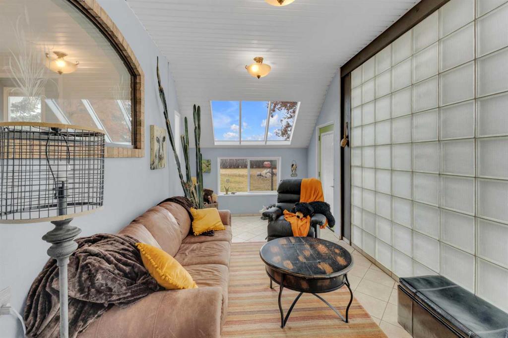 LISTED OVER 150K UNDER APPRAISED VALUE! MINT condition and minutes from Red Deer! This exceptional partial WALKOUT home blends craftsmanship, comfort, and privacy surrounded by mature trees and stunning views. Thoughtfully renovated and 2x6 constructed, it features a durable METAL ROOF, in-floor heat plus forced air, skylights, glass block accents, and large windows that fill the home with natural light. The open-concept kitchen with built-in appliances flows to multiple decks—perfect for relaxing or entertaining while taking in the serene TREED setting. With four bedrooms total, one being a flexible lower-level office/bedroom, every detail shines with pride of ownership. The detached structure matches the home’s quality with in-floor heating and can serve as a professional office or easily converted GUEST SUITE. Beautifully landscaped with a firepit, large carport, double garage, and upper deck—plus just minutes to the ski hill and city amenities. Truly one of a kind.
