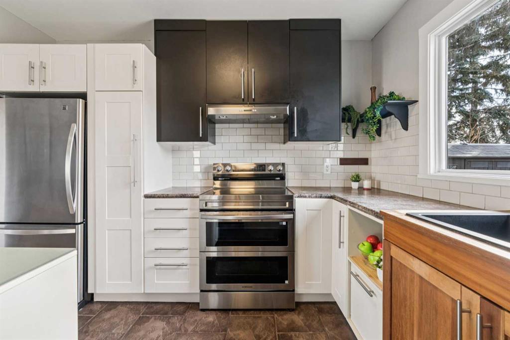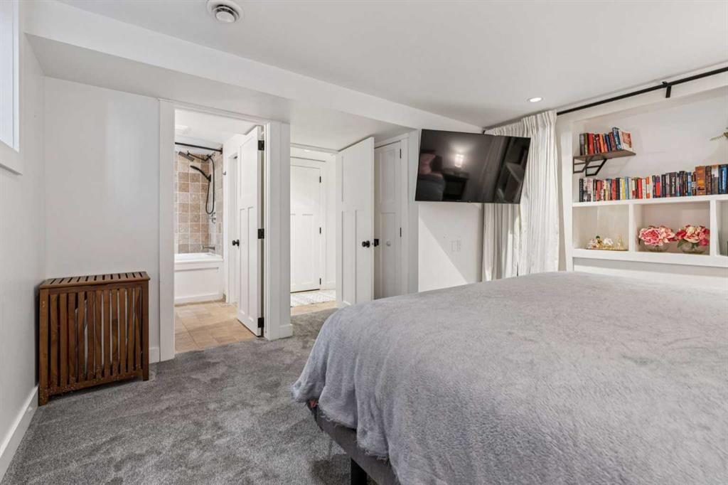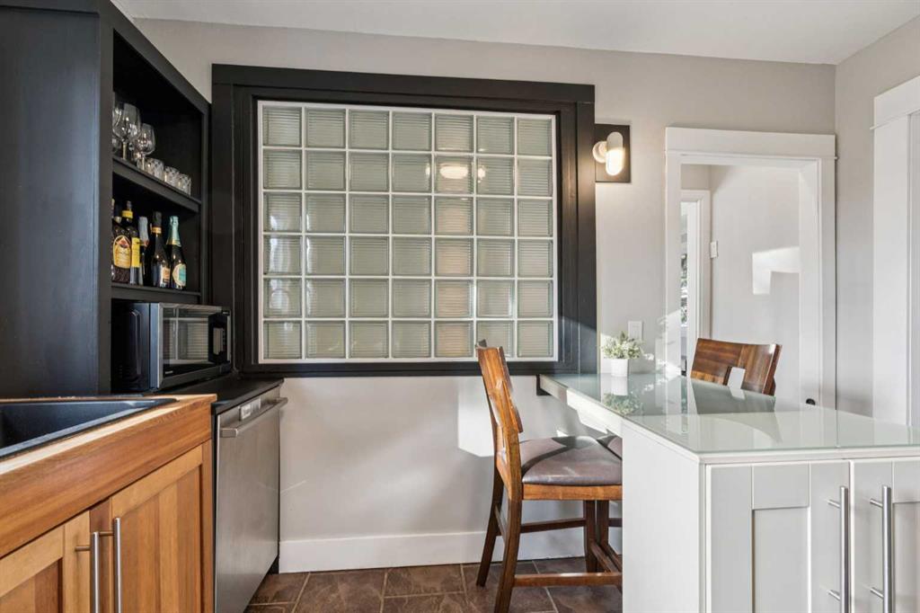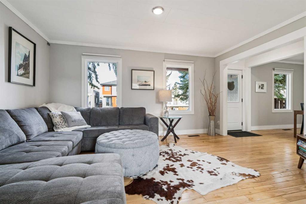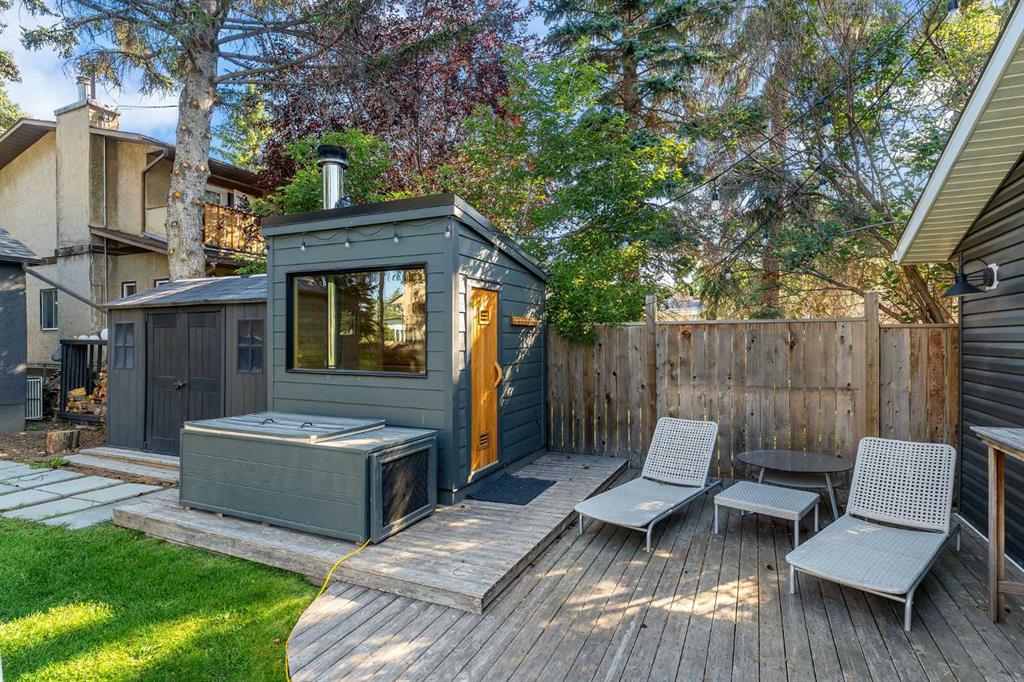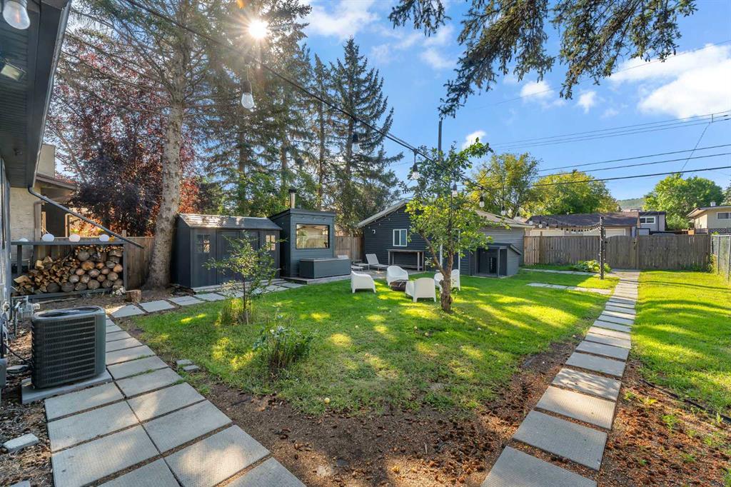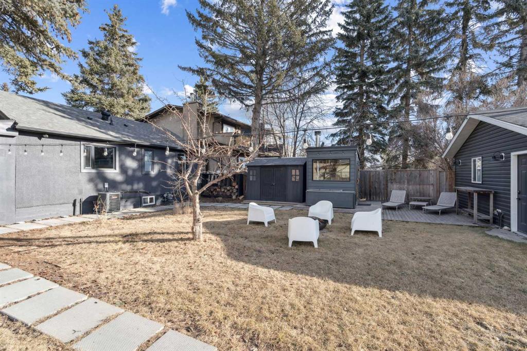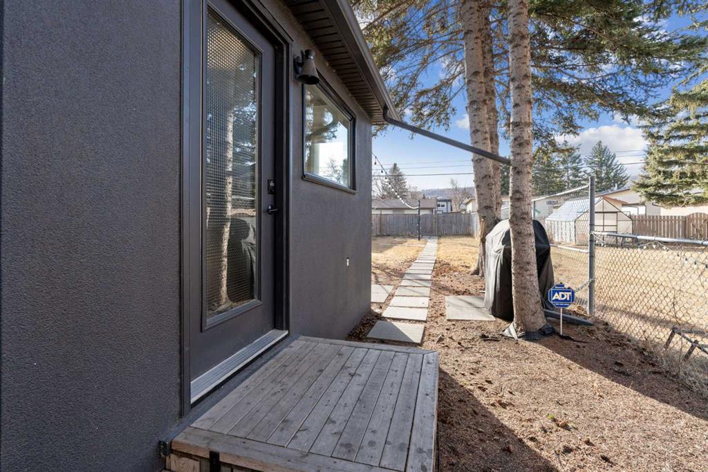 Two love stories have already begun here - in fact, the past two owners chose this very backyard as the setting for their weddings. That alone tells you how special this property truly is. Set on a highly sought-after 50’ x 122’ lot, this charming bungalow in Bowness is framed by mature trees and has been lovingly maintained and upgraded over the years. Inside, you’re welcomed by a functional, well-designed layout. The kitchen features a built-in island with seating, perfect for casual dining or entertaining. Beyond it, you’ll find a spacious mudroom with its own side entrance with access to the basement. The kitchen flows into the sun-filled living and dining areas, where large triple pane windows and hardwood floors create a warm, inviting space. A generously-sized bedroom and a modern 4-piece bathroom complete the main level. Downstairs, the fully developed basement expands your living space with a cozy family room with built-in shelving, a dedicated workspace, and a laundry area. The large primary bedroom is complete with a custom built-in closet and has convenient access to the cheater ensuite 4-piece bath with a jetted tub. Step outside to the south-facing backyard - truly a dream for entertainers and outdoor lovers. Thoughtfully designed with ambient lighting, a large patio area, fire pit with a custom wood stack, huge storage shed, privacy from the many mature trees & perennials, and access to the oversized double garage. It’s easy to see why it has hosted such meaningful celebrations! Situated on a quiet street in this historical community, this home is close to parks, just a short stroll to the Bow River, around the corner from two public schools, and has quick access to the mountains. A rare opportunity to own a property where lasting memories are made, and where your next chapter is ready to begin!