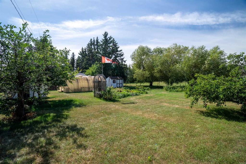 Discover the epitome of tranquil, spacious living with this stunning acreage in the charming town of Olds, Alberta. This beautifully maintained property offers the perfect retreat, blending serene rural living with convenient proximity to all the amenities Olds has to offer. The home is thoughtfully updated and well-appointed, featuring a new roof installed in 2012, new windows and doors added in 2014, and a brand-new hot water tank just this year. A modern dishwasher, installed in 2018, complements the well-designed kitchen, while efficient hot water heating ensures comfort throughout the year. The main floor laundry adds practical convenience, making daily tasks a breeze. Step inside to find a living space characterized by warmth and elegance. The living room showcases stunning brick masonry, providing a striking focal point and a cozy atmosphere. Two fireplaces add charm, though they have not been used by the current owners for some time (sold as-is). The expansive primary bedroom is a private sanctuary, complete with his and hers closets and a luxurious ensuite bathroom. The home offers three additional bedrooms on the upper level and two more in the basement, providing ample space for family and guests. The basement is also a standout feature, boasting a massive recreation room where you can enjoy leisure activities with an included pool table and accessories. Storage is plentiful throughout the home, ensuring all your belongings have a place. Outside, the property truly shines with its generous piece of land. There's ample space for outdoor activities, from running and playing to hosting large family reunions and gatherings. The yard is adorned with huge, mature trees in both the front and back, enhancing privacy and adding to the property's natural beauty. Included in the sale are three sheds, a delightful playhouse, and a greenhouse, providing endless possibilities for hobbies and storage. Experience peaceful living with incredible neighbors in a location that remains close to everything you need. With numerous extras included to help you settle into your new home, this acreage is more than just a property—it's a lifestyle. Don't miss this exceptional opportunity to make this your new home. This is truly a must-see!