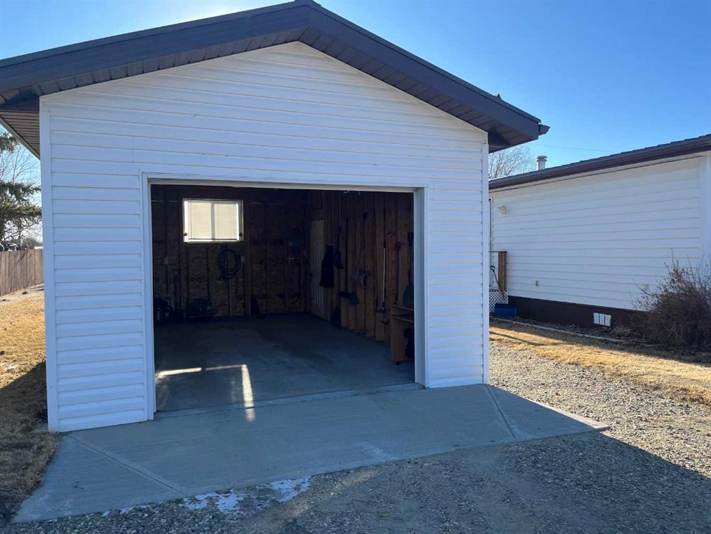 Here is an excellent opportunity to step into the housing market with AFFORDABLE MOVE-IN READY HOME OWNERSHIP without the burden of monthly Lot/Pad fees or water bills! This well-maintained manufactured home is set onto a generous, beautifully landscaped 13000 sq ft DOUBLE lot in the peaceful Hamlet of Cluny. Offering 1053 sq. ft. of comfortable living space, this homes layout features two spacious bedrooms featuring double closets, one full bathroom, a large sunlit living area, bright dining area off the U-shaped Kitchen, a dedicated front entry, and side entry Mudroom with Laundry and additional cabinetry and closet space to keep you organized. Step outside onto your deck to enjoy your massive yard and the quietness only small Town and Country living can offer. Steps away from the deck is the 14 x 28.5 detached single garage with additional off-street parking on the gravel drive leading up to it. Keep in mind the opportunity in future to add additional parking or RV parking on this massive double lot. The beautifully kept yard is perfect for enjoying Alberta's sunny days, with space for future garden, and kids or pets to play. The yard is already partially fenced and includes 2 garden sheds. Priced at $185,000 this property is a RARE FIND, combining affordability and small Town-living all within a short Highway commute to several larger Towns or City (Strathmore 35 minutes, Bassano 25 minutes, Brooks 53 minutes, Vulcan 52 minutes, Calgary 1 hr. 20 minutes). Drive a little and save a lot!!