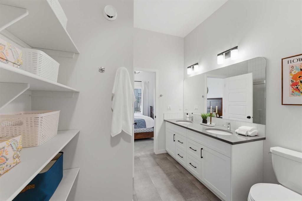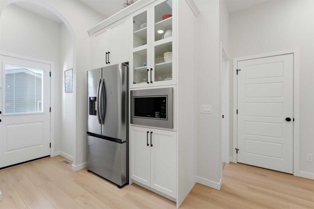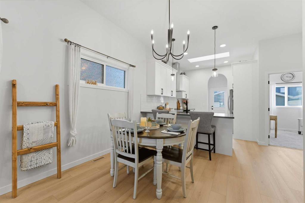 Welcome to an exceptional laned bungalow tucked into the award-winning community of Coopers Crossing in Airdrie where timeless design meets modern comfort in all the right ways. From the moment you arrive, this home makes a statement. Its charming laned configuration allows for a clean, welcoming front façade, while the rear double garage keeps the streetscape elegant and uncluttered. The low-maintenance landscaping frames the property beautifully, offering year-round curb appeal without demanding your weekends. Thoughtfully designed pathways and tidy greenery create a polished first impression that only gets better once you step inside. Open the front door and you’re greeted by soaring 10-foot ceilings on the main floor—an architectural feature that instantly enhances the sense of space and light. The expansive height amplifies every detail, from the modern lighting fixtures to the oversized windows that bathe the home in natural sunshine. The result is an airy, uplifting atmosphere that feels both luxurious and inviting. A Kitchen Designed to Impress. At the heart of the home lies a custom kitchen crafted for both everyday living and memorable entertaining. Beautiful cabinetry, sleek countertops, and thoughtful storage solutions combine style with functionality. A full set of appliances ensures you’re ready to host everything from intimate dinners to holiday gatherings. Whether you’re preparing a quiet morning coffee or a gourmet feast, this kitchen is as inspiring as it is practical. Above, a skylight draws in streams of natural light, adding warmth and brightness throughout the day. It’s the kind of detail that subtly transforms the mood of the entire living space—sunshine by day, soft stargazing ambiance by night. Comfortable & Cozy Living Spaces The living area is anchored by a striking electric fireplace, offering both visual charm and effortless warmth. It’s the perfect focal point—ideal for cozy winter evenings or simply adding a touch of elegance to the room year-round. To ensure comfort in every season, the home is equipped with a central AC unit, keeping the interior refreshingly cool during Alberta’s warm summer months. Combined with the home’s thoughtful design, this creates an environment that feels just right, no matter the weather outside. Thoughtful Bedroom & Bathroom Layout This bungalow features 2 spacious bedrooms and 2 full bathrooms, all conveniently located on the main level for easy living. The primary suite is a private retreat—generous in size and designed for relaxation. Large windows provide natural light, while the adjoining full ensuite offers a spa-like experience with quality finishes and ample space to unwind. The second bedroom is perfect for guests, family, or even a stylish home office. A second full bathroom ensures comfort and privacy for everyone. Outdoor Living at Its Finest Step outside to discover a large rear deck—an extension of your living space that’s ideal for summer barbecues, morning coffee rituals, or quiet evenings