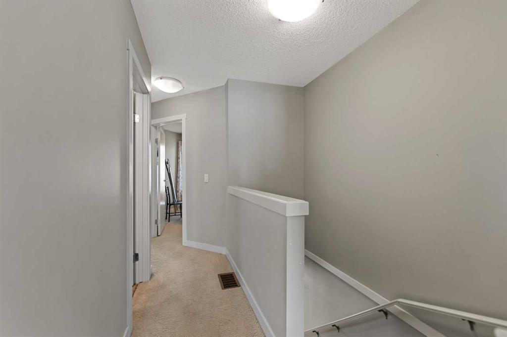 Welcome to this beautifully maintained end-unit townhome in the sought-after community of Kings Heights. Offering 3 bedrooms, 2.5 bathrooms, and two dedicated parking stalls, this bright and modern home combines comfort, functionality, and an unbeatable location. The open-concept main floor is filled with natural light thanks to its desirable end-unit placement and additional side windows. The spacious kitchen features ample counter space, contemporary finishes, and a large walk-in pantry—perfect for everyday living and entertaining alike. The inviting living and dining areas flow seamlessly together, creating a warm and welcoming atmosphere. A convenient 2-piece bathroom and access to the private fenced yard complete the main level. Upstairs, you’ll find three generously sized bedrooms—an exceptional feature, as many units in the complex offer only two. The primary bedroom includes a private full ensuite, while two additional bedrooms and another full bathroom provide flexible space for family, guests, or a home office. The basement level offers an open layout ready for future development and includes a storage area. Enjoy your own fenced backyard—ideal for morning coffee, summer BBQs, or relaxing evenings outdoors. The home includes two assigned parking stalls, plus visitor parking conveniently located near the front entrance.Situated in a vibrant, family-friendly neighborhood with scenic walking paths, ponds, and green space, you’re just steps from local shops, restaurants, and everyday amenities. With quick access to the route, commuting to Calgary, the airport, CrossIron Mills, or Costco is easy and efficient. This is more than just a home—it’s a lifestyle. Book your showing today and discover everything this exceptional property has to offer.