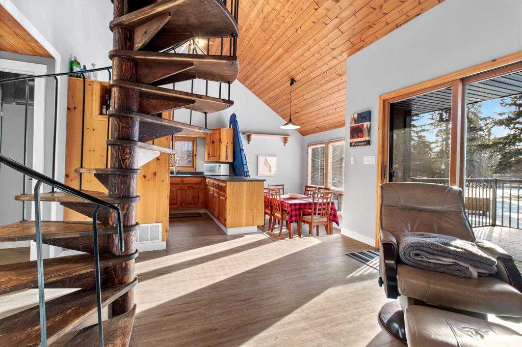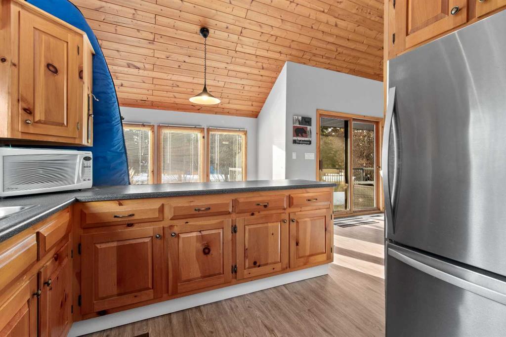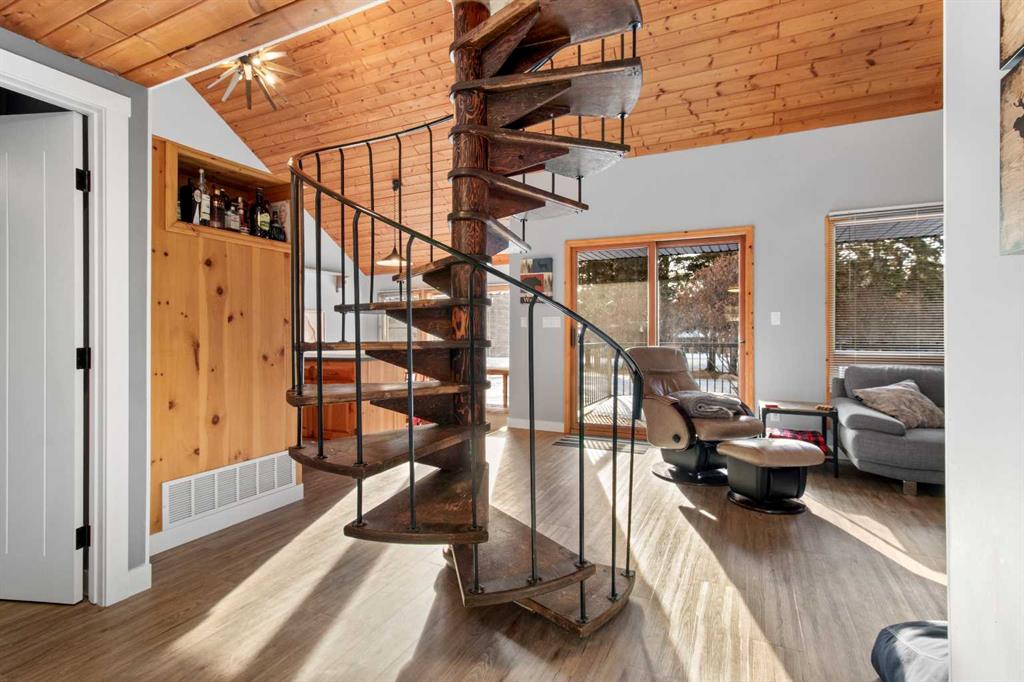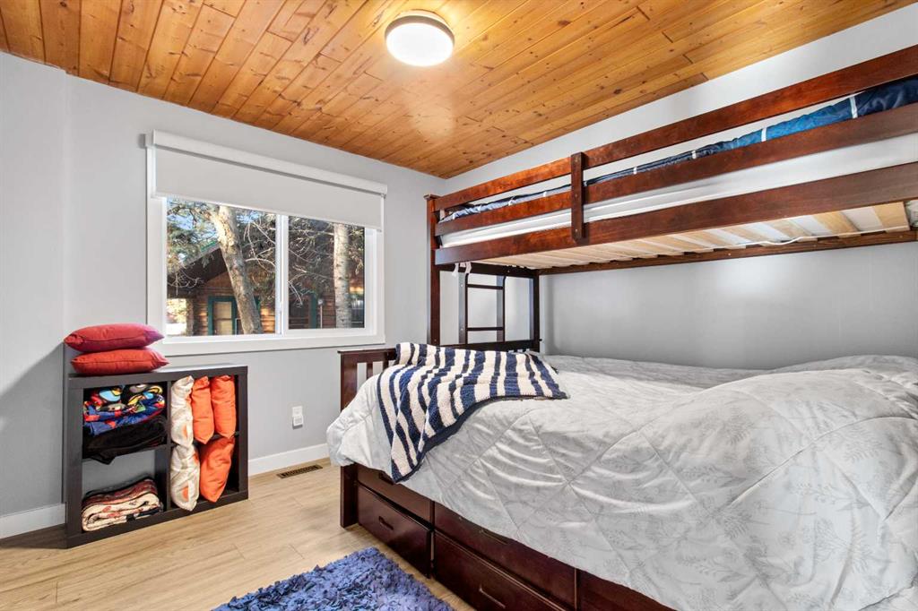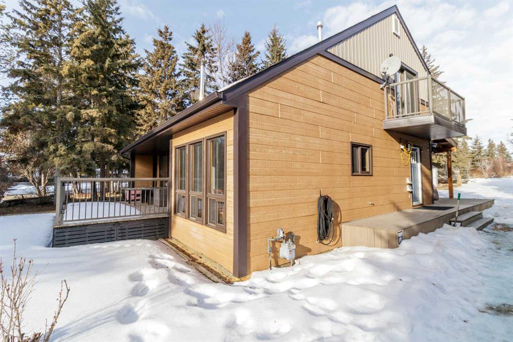 Discover the perfect lakeside retreat in the sought-after Birch Bay community on the northwest shores of Gull Lake, a premier recreational destination in Central Alberta. Nestled midway between Edmonton and Calgary, this peaceful, family-friendly subdivision offers private beach access, scenic parks, walking trails, a community boat launch, and a welcoming atmosphere ideal for seasonal cabin living or year-round enjoyment. This charming, turn-key 4 season cottage has been thoughtfully renovated and upgraded since 2018, blending rustic charm with modern comforts (full details available in supplements). The open-concept main floor features soaring beamed ceilings, abundant natural light from skylights, a spacious living/dining area, and a fully equipped kitchen ready for family gatherings and entertaining. Accommodations include a cozy main-floor bedroom with a queen-sized bottom bunk and single top bunk, plus a convenient 3-piece bathroom. A central spiral staircase leads to the upper level, where you’ll find a generous loft area perfect for additional guest sleeping or relaxation, and a primary bedroom complete with a 4-piece ensuite and private deck access. Step outside to enjoy not one, but two expansive decks: the front deck offers sunny southern exposure for basking in the warmth, while the covered back deck provides shaded comfort and enhanced privacy within the secluded, treed yard. Just a short stroll along quiet roads or scenic paths leads to the private community beach, boat launch, and park—your gateway to endless lake activities including boating, swimming, fishing, and more. Nearby amenities feature a 9-hole golf course, with winter recreation options such as ice fishing, curling, hockey, and snowmobiling adding year-round appeal. Escape the city hustle and embrace quality family time—whether playing games, reading by the fire, or simply soaking in the natural beauty and tranquility of lakeside living. This meticulously updated cottage is ready for immediate enjoyment. Don’t miss your opportunity to own a piece of Birch Bay paradise! First right of refusal for boat slip given to the buyer.