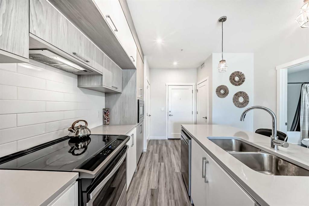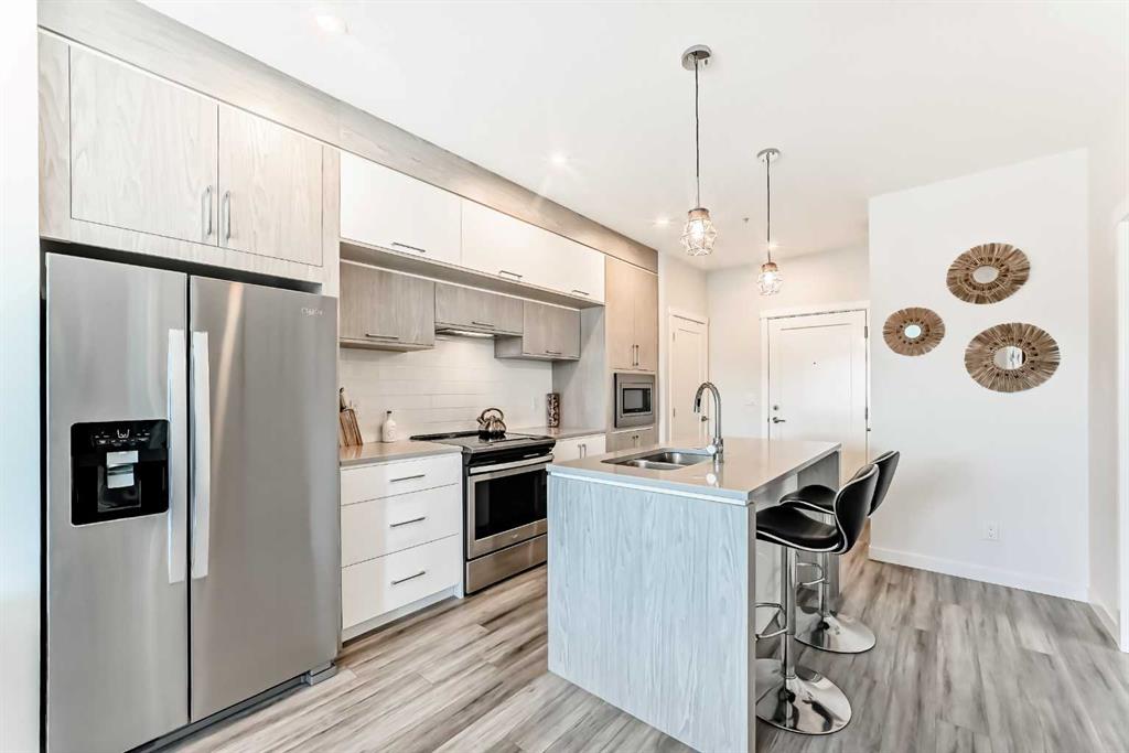 Welcome to your new home at 411, 138 Sage valley common NW. This exceptionally designed and well-maintained condo unit shows pride of ownership at all angles and is in one of Calgary’s finest and well-sought-after community of Sage Hill. This unit offers a sanctuary of light and space that will surely pick your interest when you step in through the door. It boasts of 520 square feet of developed space that includes an open concept layout with a seamless flow from the beautiful kitchen to a living room that overlooks a good size balcony. This unit comes with a large primary bedroom with two windows allowing for lots of natural lighting, a walk-in-closet, an in-suite laundry, a large 4-piece bath, and with Luxury vinyl planks flooring. The good size kitchen is equipped with stainless steel appliances, upgraded high end cabinetry, and a central island with quartz countertops. This unit is conveniently located close to playgrounds, shopping (Walmart Supercentre, Costco, Co-op Grocery, shoppers etc.), restaurants, and major roadways (Stoney Trail, Sarcee Trail, Shaganappi Trail, Symons Valley, 144 Ave etc.), walking & biking paths. Additional credits include a storage locker and heated underground parking which will keep your vehicle clean and warm during those cold winter days and for the hot summers you are covered because the unit is equipped with an AC unit. Weather you are looking for a home as a first-time home buyer, or downsizing, this property might just be the right fit so don't miss out on this opportunity to make this beautiful unit yours. Book your viewing today with your favourite realtor.