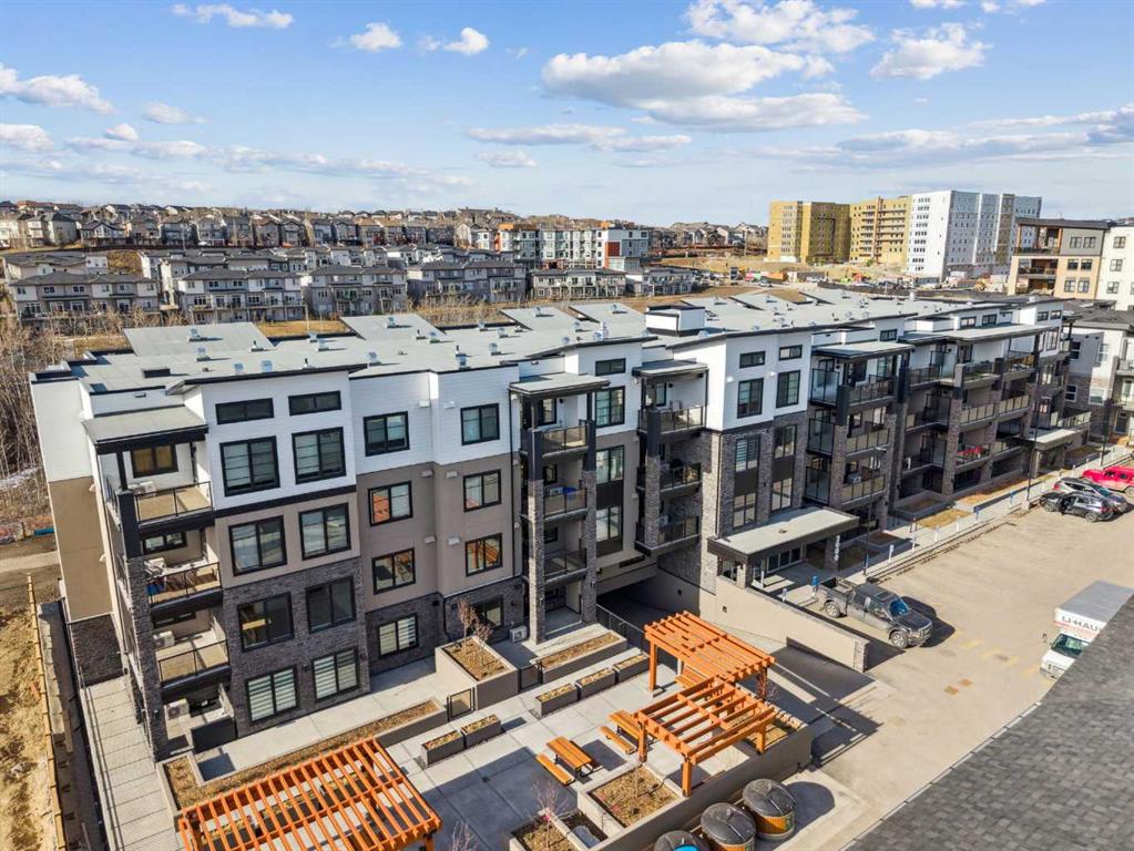 The Whitney welcomes you to Springbank Hill, where modern design and amenities meet natural beauty. This stunning 3rd level suite is ideal for anyone looking for an abundance of space in this oversized 1 bedroom, 1.5 bathroom, plus den upgraded suite in a premium location. Highly sought after Springbank Hill offers luxury living at a great price. Step into your brand-new home thoughtfully designed with elevated finishings throughout. Work from home with your own private den and separate guest bathroom. Some of the upgrades include: shaker-style cabinets in the kitchen and bathrooms, full height upper cabinets with filler to the ceiling, quartz counters with quartz backsplash throughout, upgraded tile flooring in the ensuite, Luxury Vinyl Plank flooring, upgraded stainless steel Samsung appliances complete with an upgraded stainless steel hoodfan, in this fully air-conditioned unit. California Closets custom shelving in the laundry room and pantry add the custom touch you have been looking for. The stunning kitchen with its open layout feels bright and effortless -perfect for gourmet cooking or entertaining. The spacious bedroom offers a true retreat, complete with an extensive walk-through closet that provides exceptional storage and flows into the 4-piece ensuite bathroom. The generous balcony adds outdoor living space - ideal for your morning coffee, evening dinners or simply relaxing. Enjoy the comfort of in-suite laundry and air conditioning. Titled underground parking, storage, and premium sound attenuation for added peace and quiet. Outside your door, an exceptional lifestyle awaits. You’re just a 5-minute walk to Aspen Landing, with more than 50 shops and services-Safeway, Starbucks, Shoppers Drug Mart, restaurants, banks, and more. The C-Train, public transit, and major routes like 17th Ave SW are moments away, making it an easy 10-minute commute to downtown. Also a quick exit west to out Mountain Parks. The perfect blend of style, comfort, and walkability in this urban-meets-nature home. Come see for yourself!