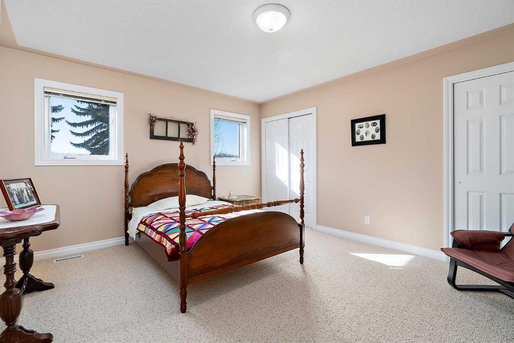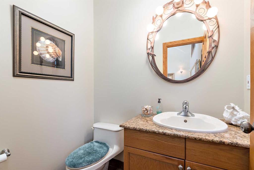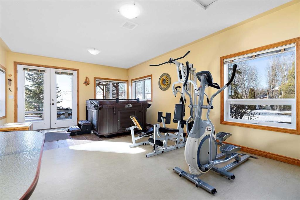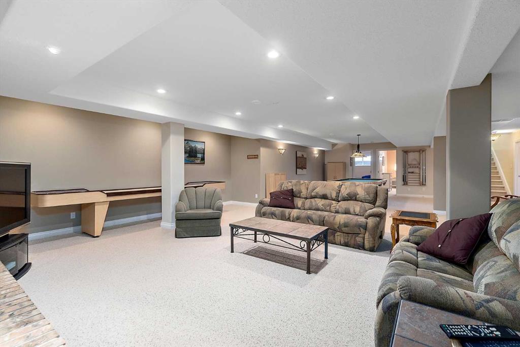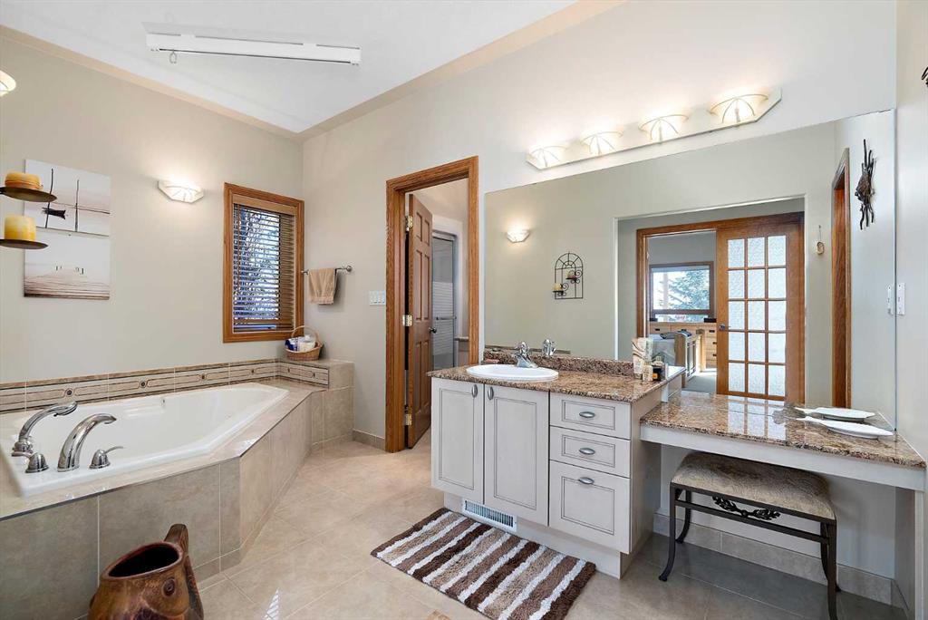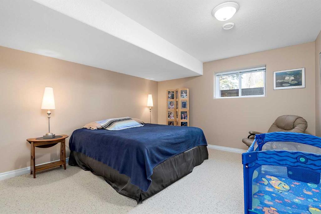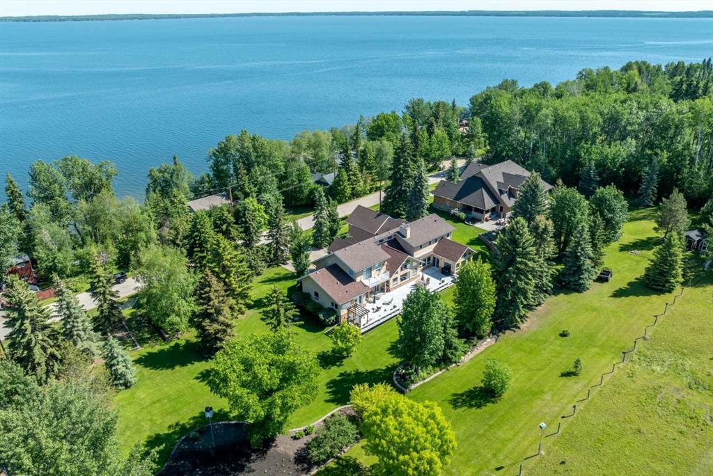 Welcome to a piece of paradise where land and lake come together! Just steps away, the lake calls to waterfront fun, pier and boat mooring. Beautiful backyard and deck exposure to the south of this home is where you’ll enjoy open space for those peaceful family days of game playing and nature watching experiences. Both worlds come together for a lakeside lifestyle you won’t want to miss! Inside, the living room has vaulted ceilings, and a full height two sided stone fireplace. The Primary bedroom has a 5 pc ensuite, walk-in closet, electric fireplace, and a patio door to the back composite deck. The exercise room has an indoor hot tub, and built in sauna. Another bedroom, 4 pc bath, 2 pc bath, and laundry room conclude the main level. The upper level hosts two bedrooms, 5 pc bath, den with a wet bar, and patio overlooking the landscaped yard. The basement has two bedrooms and a large family room with a gas fireplace. The finished garage has in-floor heat! This property must be appreciated in person!