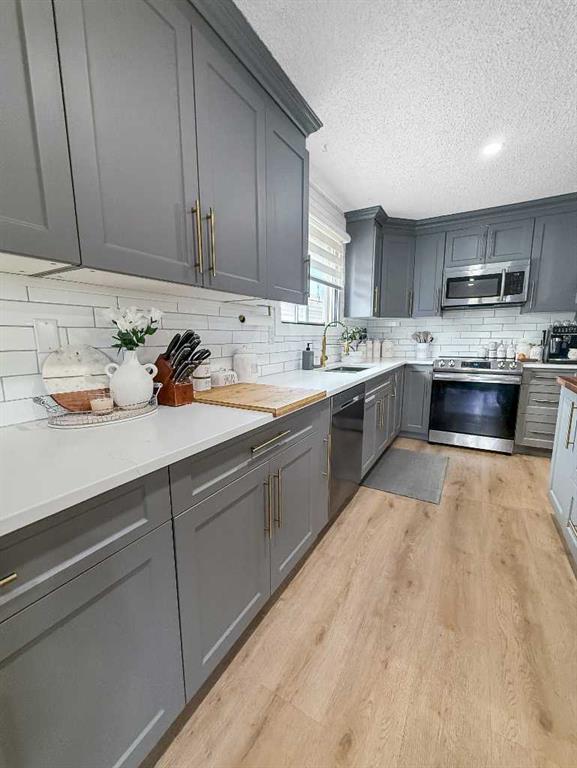 Welcome to this beautifully renovated bi-level in Whitecourt! This stunning property features a bright open concept layout designed for comfortable living, and endless entertaining. The dream kitchen steals the spotlight, showcasing cabinets galore, sleek modern countertops and a gorgeous butcher block island. The pull-out pantry shelving is a nice touch for maximum organization and the stainless appliances complete the look. Throughout the home you will find thoughtfully updated bathrooms, modern paint, new flooring, baseboards, doors, and refreshed closets. The basement offers an updated living space or playroom, plumbed for an additional bathroom if needed and the ability to add bedrooms if needed. The roof was replaced in 2019 on house and garage, brand new electrical panel in February 2026,! Outside, enjoy a fully fenced yard with a 22X24 garage and convenient alley use. If you're looking for a stylish, updated home, in an affordable price range, this one is a must-see!