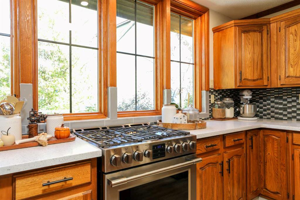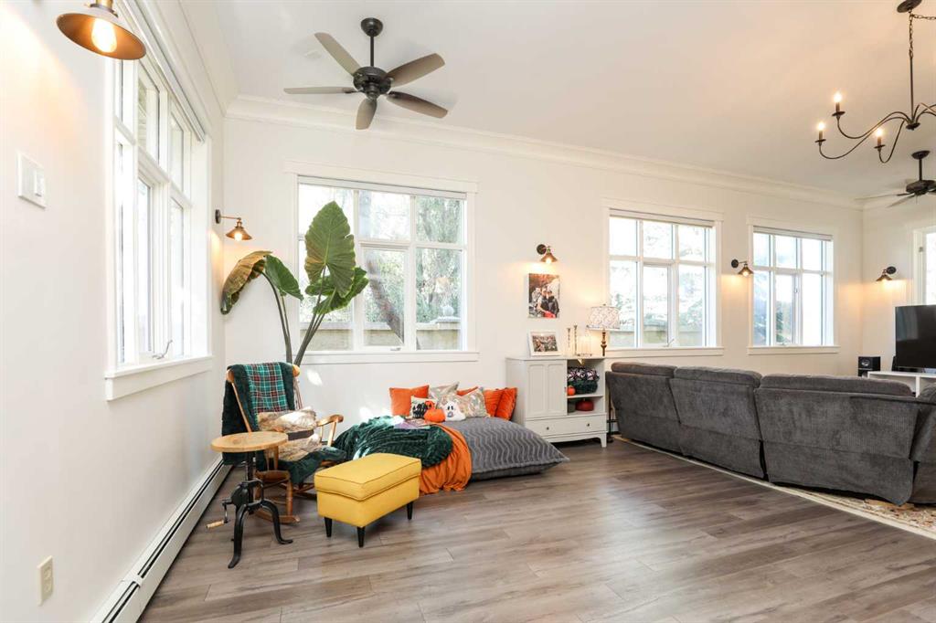 Discover a truly exceptional property offering the perfect blend of privacy, expansive living space, and an unparalleled location. Rarely does a home hit the market where the "invisible" details have been as cared for as the aesthetics. This nearly 3,000 sq ft residence has undergone a comprehensive structural and cosmetic overhaul, including a newer roof truss system, reinforced joists, improved insulation, and a complete electrical update. The heating system has been modernized with a high-efficiency radiant hot water setup featuring individual touchscreen zone controls, complemented by Split/Mini AC units for year-round climate perfection. Step inside the stunning 2-Storey foyer where where bespoke reclaimed fir accents set a tone of rustic elegance and high-end craftsmanship. The main level is designed for both grand entertaining and cozy family life. The massive updated kitchen is a chef's dream, boasting abundant cabinetry, sleek Corian countertops, modern appliances, and a central island. Four newly installed windows are perfectly situated to capture year-round morning sunrises, flooding the space with warm, natural light. The expansive dining room provides ample space for hosting large gatherings, and the adjacent sitting room is a cozy haven with a charming wood-burning fireplace. The true showstopper is the immense TV room, featuring dramatic 12-foot ceilings and oversized windows that flood the space with natural light and offer picturesque views of the park. This versatile room is ideal for a home theater, studio, or a vibrant playroom. Upstairs, the well-designed layout offers three spacious bedrooms, including a master suite with a 3pc ensuite. All bathrooms have been modernized with new fixtures, finishes, and improved ventilation. Outside, the property is secured by an attractive 7-foot stucco perimeter wall, ensuring your over 9,000 sq ft lot remains a silent sanctuary. For the buyer who demands both architectural beauty and mechanical excellence, this park-backing estate is unparalleled. Schedule your private showing today!