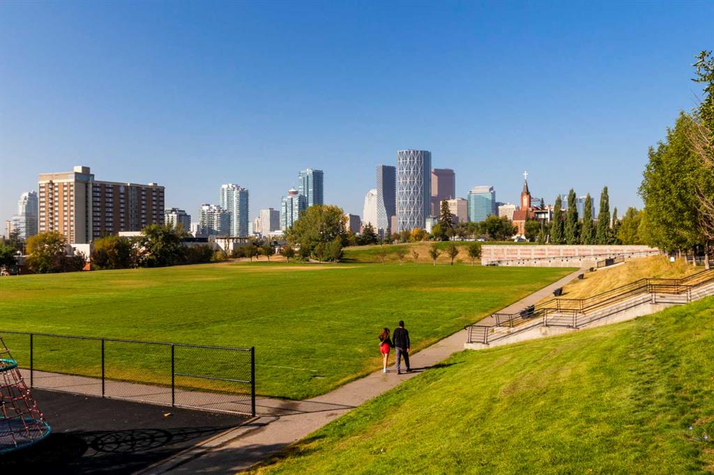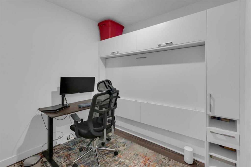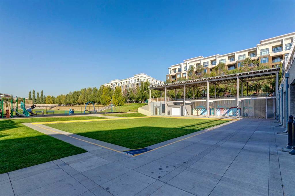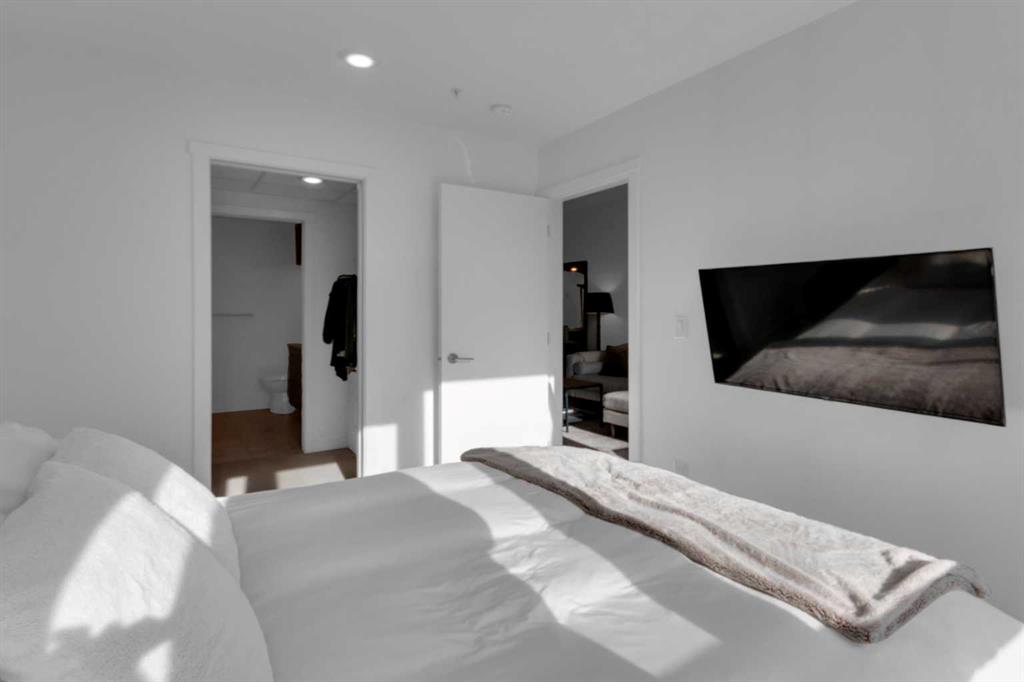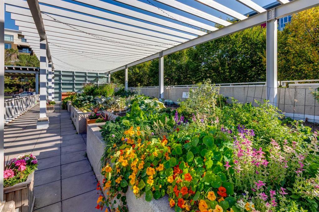 Experience refined inner-city living in this beautifully designed 2 bedroom, 2 bath condo in the heart of Bridgeland. Featuring a south-facing exposure overlooking green space, this home is filled with natural light while offering a peaceful outlook rarely found in urban settings. The contemporary kitchen is both stylish and functional, showcasing quartz countertops, and a full suite of Bosch appliances, complemented by a premium Fisher & Paykel refrigerator. Designed for both everyday living and entertaining, the open-concept layout seamlessly connects the kitchen, dining, and living areas, creating a bright and welcoming space. The primary bedroom features a spacious walk-through wardrobe leading to a private ensuite, along with thoughtfully designed built-in storage that enhances both functionality and organization. The versatile second bedroom includes a built-in Murphy bed, allowing the space to easily transition between a guest room and a dedicated home office. A generously sized in-suite storage and laundry room adds exceptional convenience, a rare and valuable feature in condo living. This well-managed, pet-friendly building provides an impressive array of amenities, including concierge services, a fully equipped fitness centre, spin studio, yoga and movement room, rooftop terrace with panoramic city views, pet-washing station, secure bike storage, car wash bay, visitor parking in the secure underground parkade, and inviting community gathering spaces. Ideally located in vibrant Bridgeland, you are steps from cafés, dining, fitness studios, boutique shopping, local markets, parks, and the Bow River pathway system. With quick access to downtown and the C-Train nearby, commuting is effortless while enjoying one of Calgary’s most walkable and character-filled neighbourhoods. An exceptional opportunity to enjoy stylish urban living paired with premium amenities and a sought-after location.
