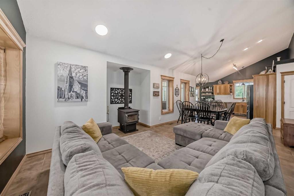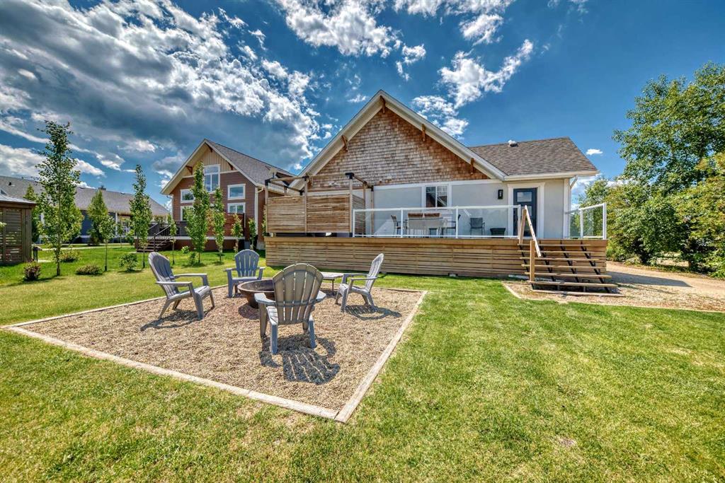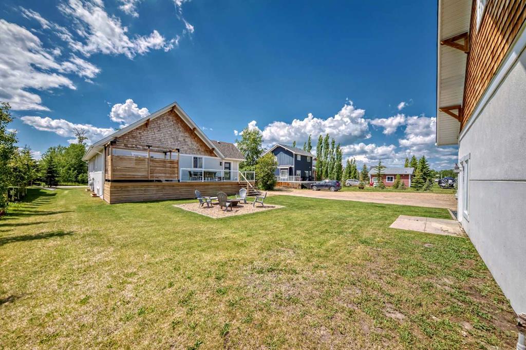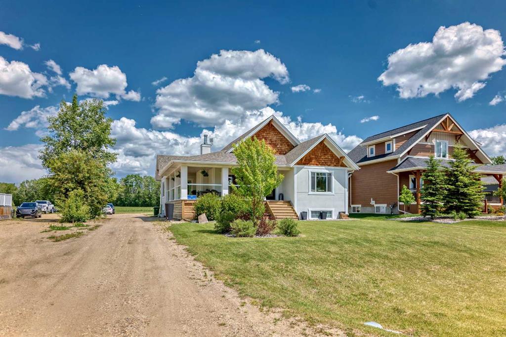 Welcome to lake life in Meridian Beach where comfort, quality, and community come together in this beautifully maintained 1,473 sq. ft. bungalow. From the moment you arrive, the expansive wrap-around covered deck sets the tone. Whether you're enjoying your morning coffee, hosting friends around a fire table, or unwinding after a day on the water, this outdoor space invites you to slow down and soak in the fresh lake air. Inside, the bright and open concept main living area is warm and inviting. A charming wood-burning stove anchors the living room, creating the perfect atmosphere for cozy evenings. The space flows seamlessly into the dining area and a thoughtfully designed kitchen featuring quartz countertops, stainless steel appliances (including a gas range), ample cabinetry, and a walk-in pantry. A convenient rear door leads directly to a private back deck which is ideal for summer BBQs and easy indoor-outdoor living. The main floor offers three bedrooms, including a spacious primary retreat complete with a 4-piece ensuite, along with an additional full bathroom for family or guests. Downstairs, the fully finished lower level expands your living space with three additional bedrooms, a full modern bathroom, a large recreation room perfect for movie nights or games, and a well-appointed laundry room with counters, sink, and storage. In-floor heating ensures year-round comfort throughout the basement. This home was built with quality and efficiency in mind, featuring an ICF foundation, tankless hot water system, soundproofing, and a gemstone exterior lighting system. An assigned boat slip is included, making lake access effortless. Situated on a generous 0.32-acre lot backing onto greenspace, the setting offers added privacy and tranquility. The long driveway leads to a detached double garage tucked neatly behind the home. The spacious backyard is ready for entertaining, complete with a fire pit and plenty of room for family fun. Meridian Beach is one of Central Alberta’s most desirable lake communities, offering two sandy beaches, parks, tennis courts, and Canal Street Eatery — all just steps away. Whether you're searching for a year-round residence or the ultimate recreational escape, this property delivers the full lake lifestyle experience.