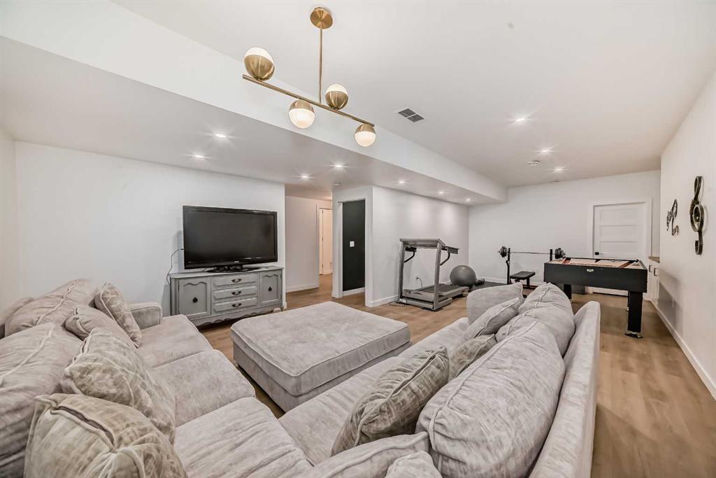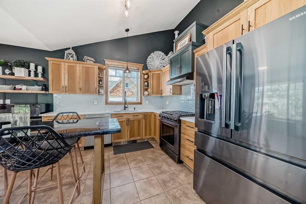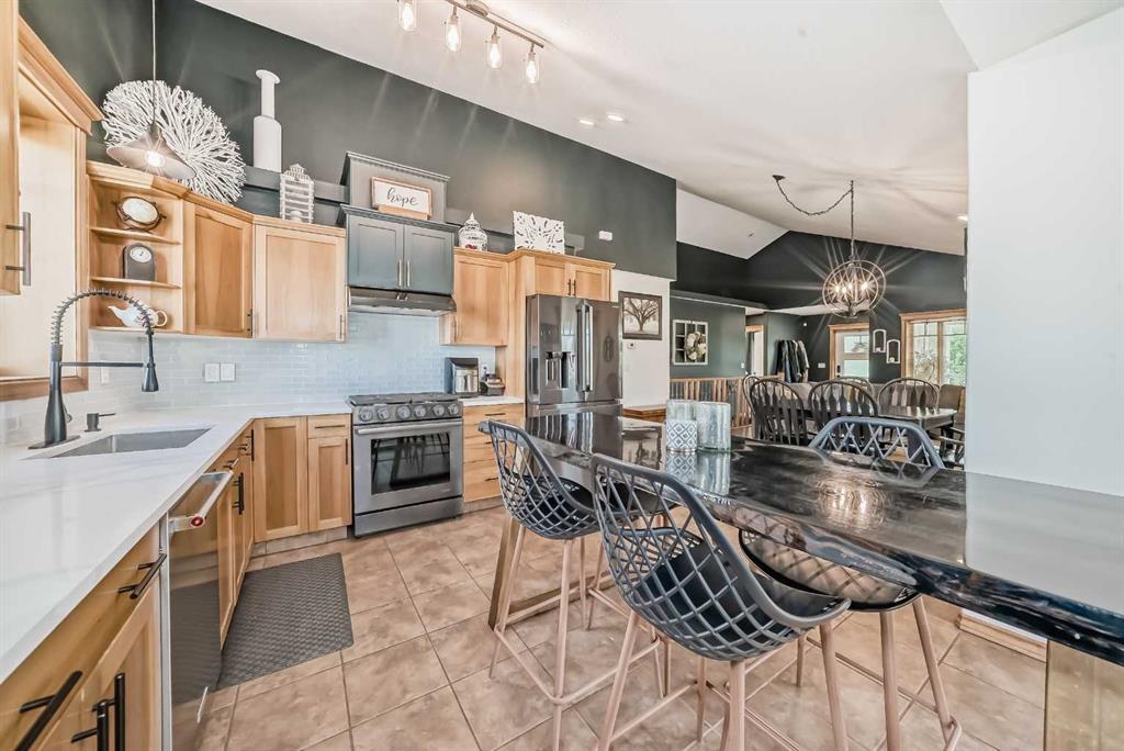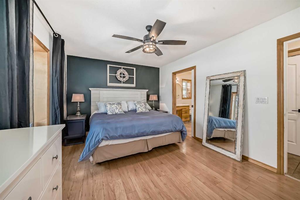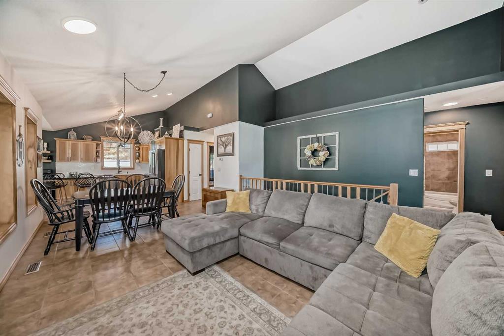 Welcome to lake life in Meridian Beach where comfort, quality, and community come together in this beautifully maintained 1,473 sq. ft. bungalow. From the moment you arrive, the expansive wrap-around covered deck sets the tone. Whether you're enjoying your morning coffee, hosting friends around a fire table, or unwinding after a day on the water, this outdoor space invites you to slow down and soak in the fresh lake air. Inside, the bright and open concept main living area is warm and inviting. A charming wood-burning stove anchors the living room, creating the perfect atmosphere for cozy evenings. The space flows seamlessly into the dining area and a thoughtfully designed kitchen featuring quartz countertops, stainless steel appliances (including a gas range), ample cabinetry, and a walk-in pantry. A convenient rear door leads directly to a private back deck which is ideal for summer BBQs and easy indoor-outdoor living. The main floor offers three bedrooms, including a spacious primary retreat complete with a 4-piece ensuite, along with an additional full bathroom for family or guests. Downstairs, the fully finished lower level expands your living space with three additional bedrooms, a full modern bathroom, a large recreation room perfect for movie nights or games, and a well-appointed laundry room with counters, sink, and storage. In-floor heating ensures year-round comfort throughout the basement. This home was built with quality and efficiency in mind, featuring an ICF foundation, tankless hot water system, soundproofing, and a gemstone exterior lighting system. An assigned boat slip is included, making lake access effortless. Situated on a generous 0.32-acre lot backing onto greenspace, the setting offers added privacy and tranquility. The long driveway leads to a detached double garage tucked neatly behind the home. The spacious backyard is ready for entertaining, complete with a fire pit and plenty of room for family fun. Meridian Beach is one of Central Alberta’s most desirable lake communities, offering two sandy beaches, parks, tennis courts, and Canal Street Eatery — all just steps away. Whether you're searching for a year-round residence or the ultimate recreational escape, this property delivers the full lake lifestyle experience.