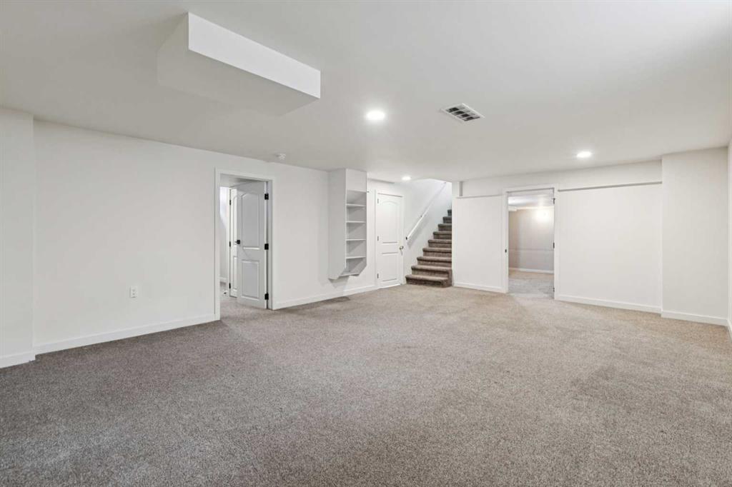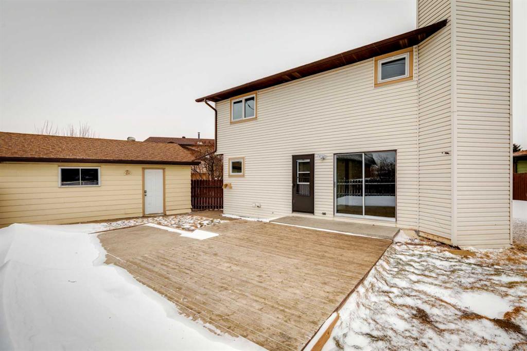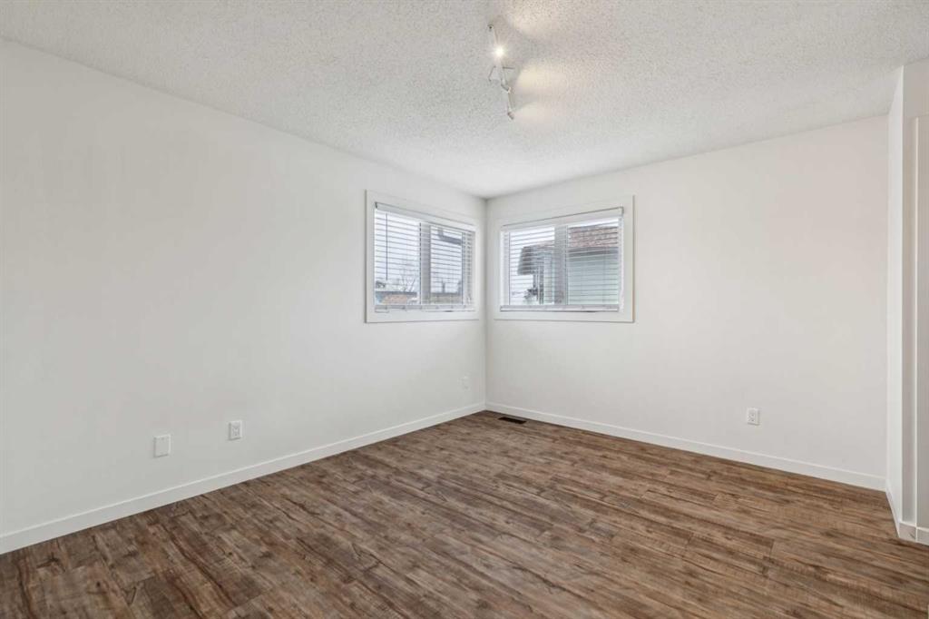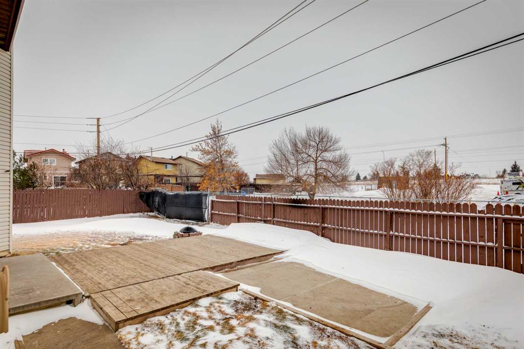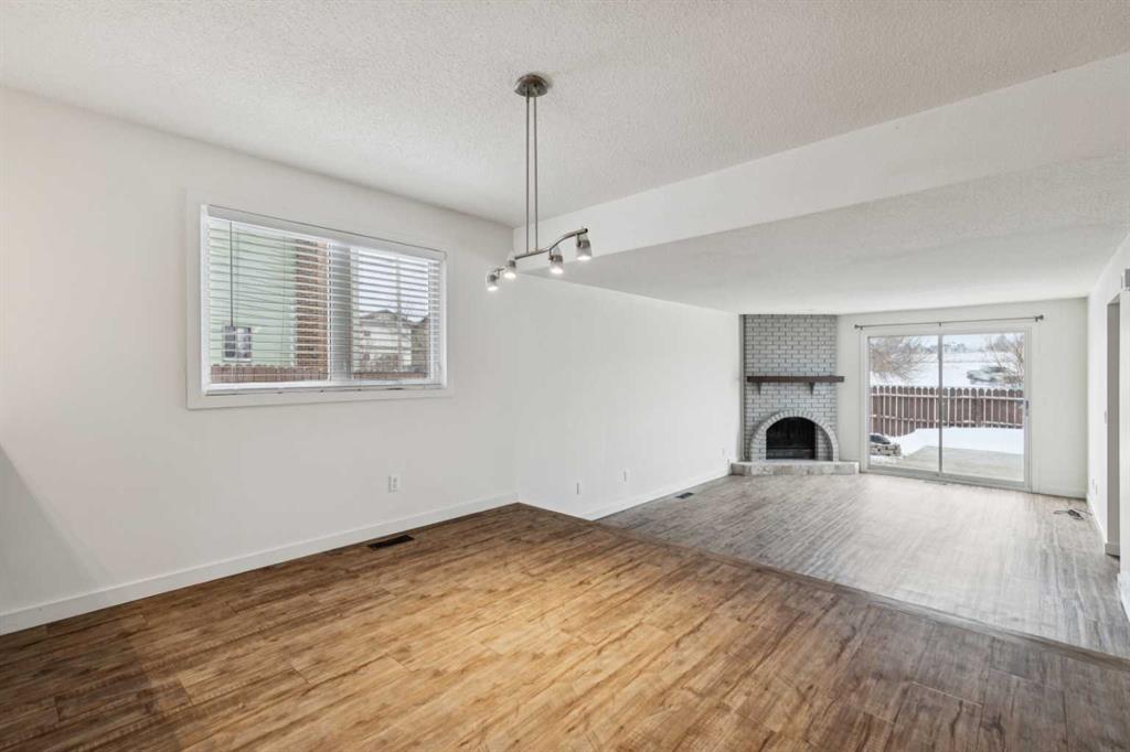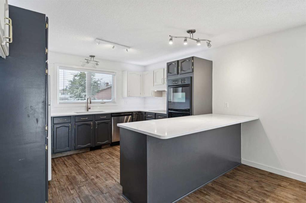 As you step into the home, you are greeted by a functional front entryway featuring a convenient closet for easy jacket and shoe storage. The foyer opens immediately into an expansive living room, where a large bay window floods the space with an abundance of natural light. The main floor transitions seamlessly into the open-concept dining area and kitchen, tied together by durable, vinyl-plank flooring. The modernized kitchen is a chef’s delight, showcasing a stylish two-toned cabinet design—crisp white uppers paired with deep blue lowers. This space is fully equipped with an electric cooktop, built-in double oven, and a sleek white refrigerator, all framed by elegant white quartz countertops and a subway tile backsplash. A unique multi-level design leads down to an additional living space, anchored by a classic brick-surround fireplace and sliding glass doors that provide direct access to the rear deck. Moving to the upper level, a classic white spindle staircase leads to the private bedrooms. The primary suite is notably spacious, easily accommodating a king-sized bed and complimented by a 3 pc ensuite, while the additional bedrooms feature large windows and updated closet doors, making them perfect for children’s rooms or a home office. These rooms share a clean, modern 4-piece bathroom with updated fixtures. The lower level offers even more versatility with a finished basement featuring plush carpeting, perfect for a media room or home gym. You'll also find a secondary room offering great flexibility for a home office or guest space. Outside, the property features a fully fenced backyard with a spacious deck, ideal for summer gatherings, leading to the detached garage for secure parking and extra storage. Benefits continue with a back gated fence perfect for RV storage! Located in the heart of the established community of Temple, this home is just minutes away from everything a family needs. You are within walking distance to multiple schools, including Annie Foote and Father Scollen, as well as local parks and the Temple Community Association. With quick access to Stoney Trail and McKnight Blvd, plus the nearby Village Square Leisure Centre and Sunridge Mall, this location perfectly balances quiet residential living with city convenience.