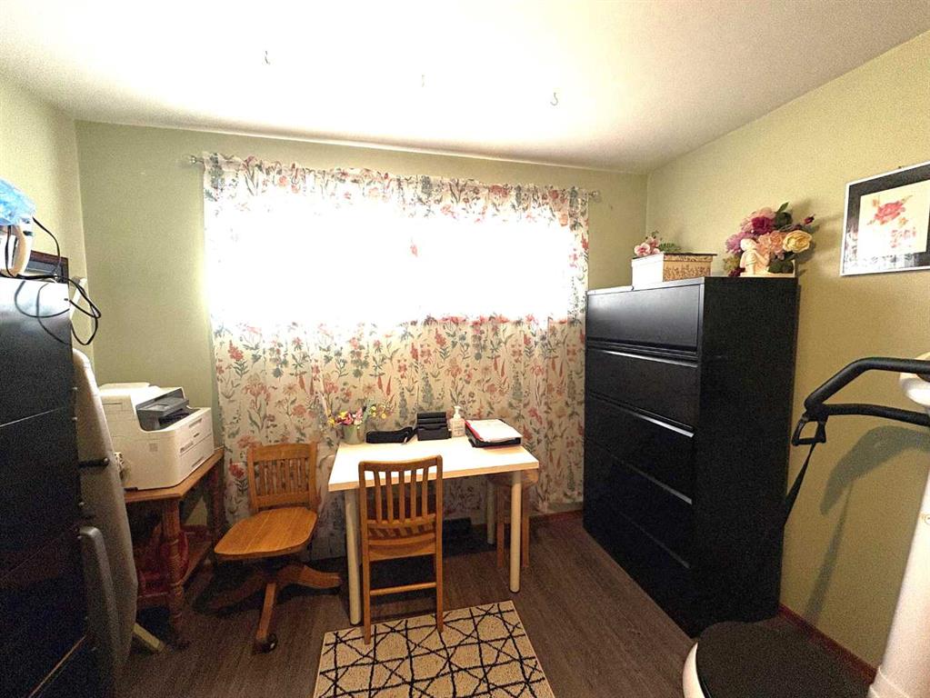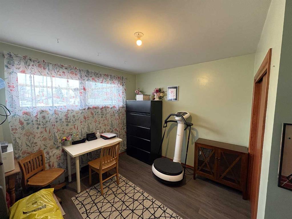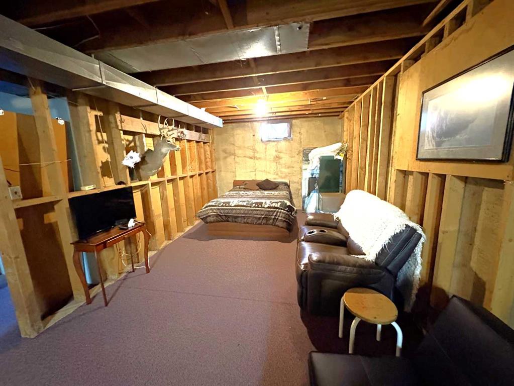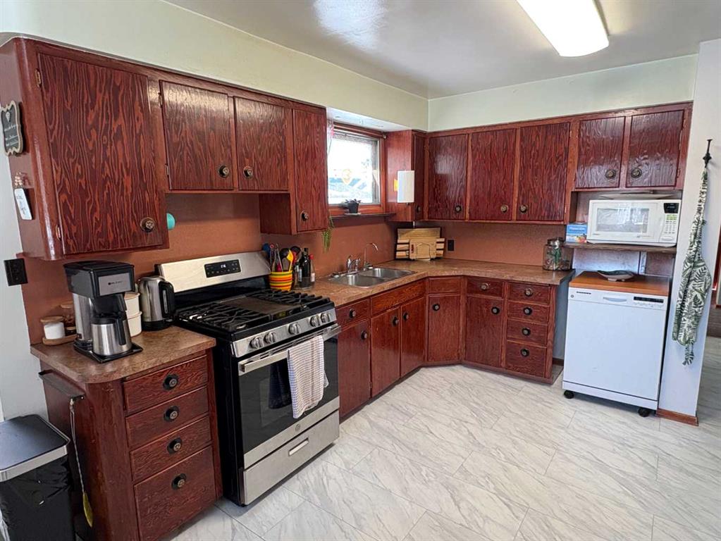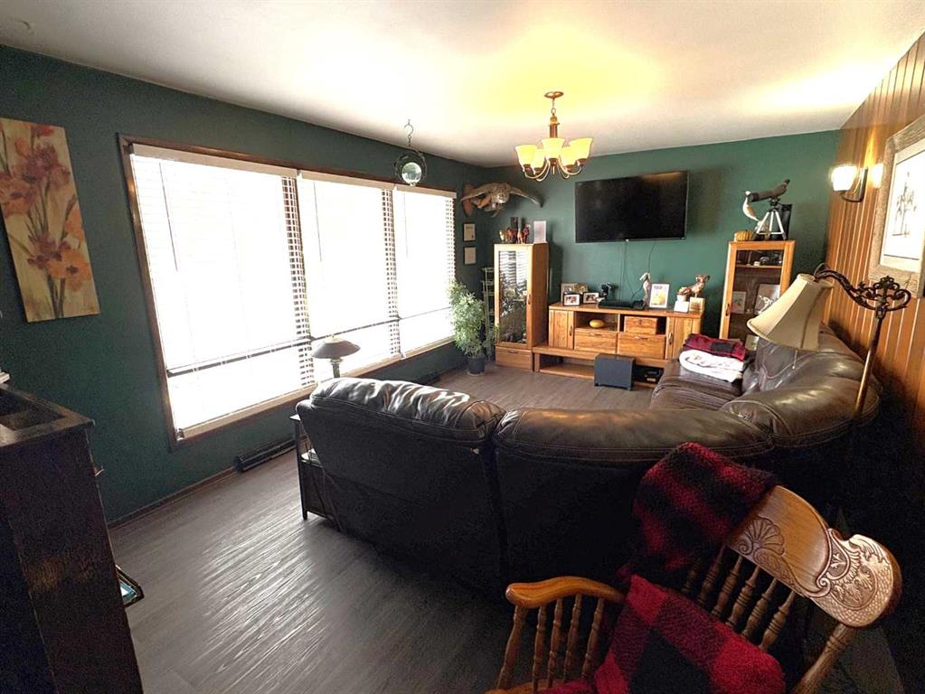 TAKE A LOOK AT THIS AFFORDABLE FAMILY HOME. 1002 SQFT. BUNGALOW, THE MAIN FLOOR FEATURES A BRIGHT LIVING ROOM WITH LARGE PICTURE WINDOW TO LET IN ALL THE SUNLIGHT. THE SPACIOUS KITCHEN HAS ROOM FOR AN ISLAND OR COFFEE BAR, NICE EATING AREA, 2 GOOD SIZE BEDROOMS. 4PC BATH WITH NEW RENOS. LARGE BACK ENTRY HAS UTILITY SINK AND PLENTY OF ROOM FOR COATS AND BOOTS. THE PARTIAL FINISHED BASEMENT HAS MANY POSSIBILITIES FOR YOUR PERSONAL TOUCH AND NEW CARPET JUST INSTALLED. LARGE FAMILY ROOM, 1 MORE BEDROOM, 2PC BATH, ONE MORE LARGE ROOM. SPACIOUS LAUNDRY AREA WITH MORE THAN ENOUGH STORAGE SPACE. THERE IS A POSSIBILITY FOR A SECOND BASEMENT BEDROOM. OUTSIDE YOU WILL FIND A NEW DECK TO ENJOY YOUR MORNING COFFEE. FENCED SIDE YARD. NOW LETS TALK ABOUT THAT DREAM TRIPLE GARAGE. 28'X49,' HEATED, 220 V. TWO REGULAR OVERHEAD DOORS AND ONE OVER SIZED DOOR WITH A 2 POST 9000lb. HOIST AND VAULTED CEILING. PERFECT FOR WORKING ON YOUR VEHICLE OR STACKING TWO FOR ADDITIONAL INSIDE PARKING. MORE THAN ENOUGH ROOM TO PARK AND STORE ALL YOUR TOYS WITH THE ADDED BONUS OF A HUGE DRIVEWAY. THERE IS ALSO EXTRA SPACE FOR RV PARKING WITH SIDE AND BACK LANE ACCESS. ALL OF THIS IS WAITING FOR YOU IN THE FRIENDLY COMMUNITY OF FORESTBURG, K-12 SCHOOL, ARENA, POOL, GOLF COURSE AND GREAT RESTAURANTS AND STORES