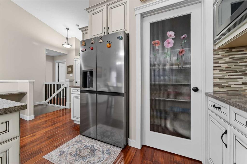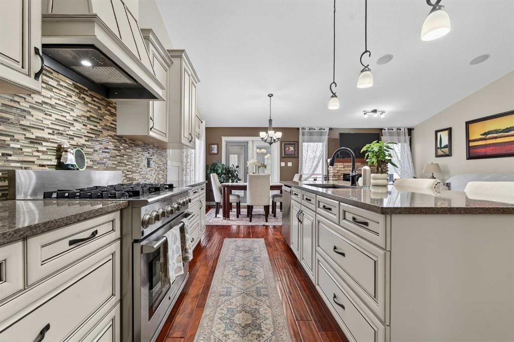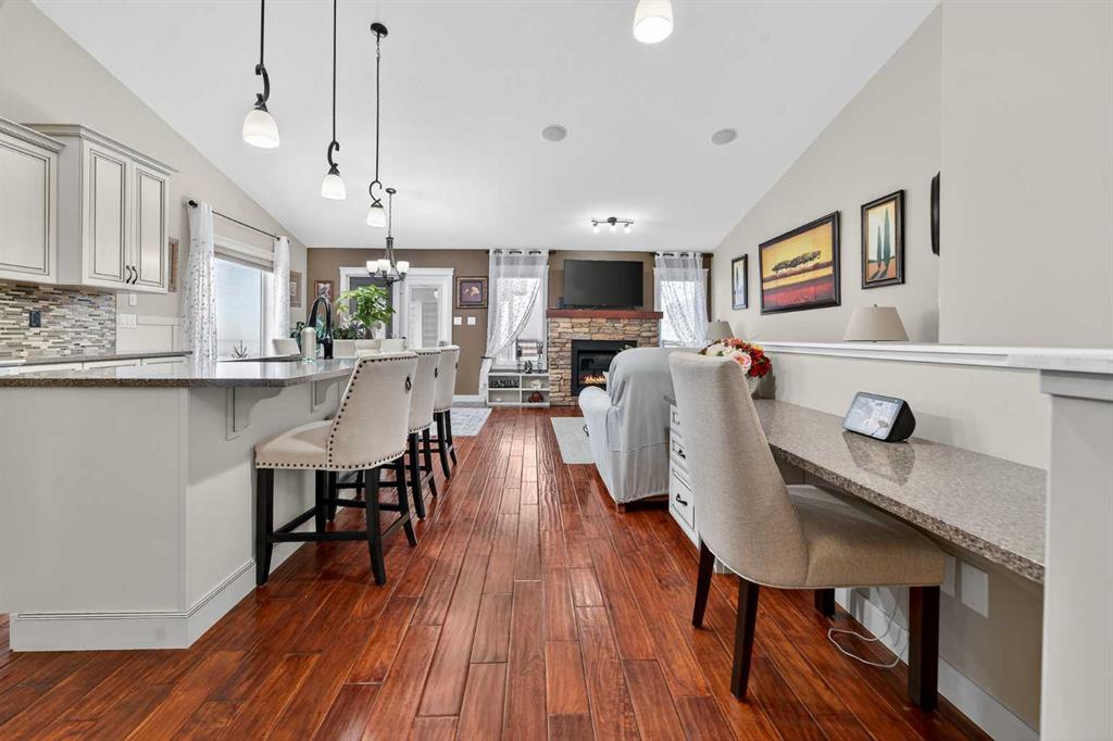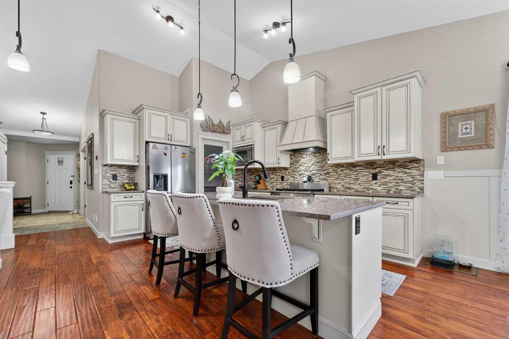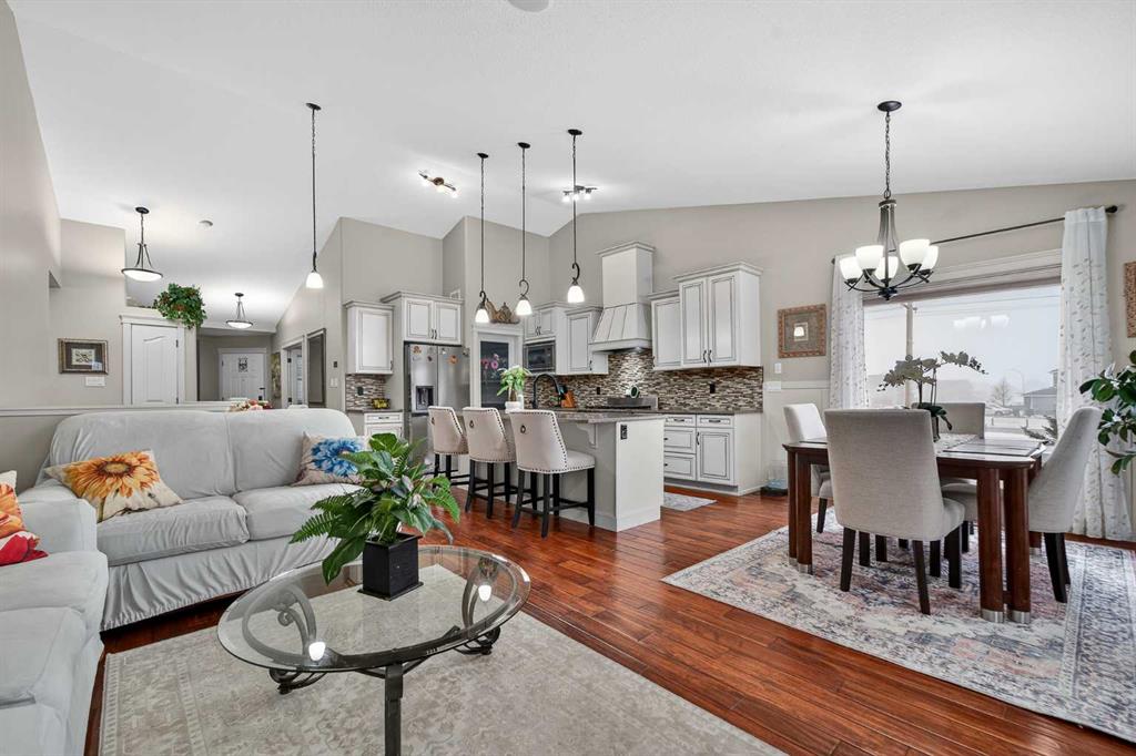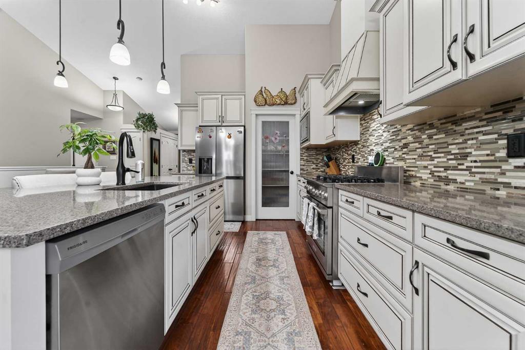 Set along green space with direct access to the coulee trail system leading to Alexander Wilderness Park, this custom built bungalow offers a rare combination of open views and intentional design in Legacy Ridge. Built in 2012, this 1,475 square foot home was designed to embrace its setting. Soaring vaulted ceilings and expansive windows immediately draw your eye toward the coulees, filling the main living area with light and views. A gas fireplace with stone surround and wood mantle anchors the space, while the open concept layout flows naturally into the kitchen and dining area for everyday comfort and easy entertaining. The kitchen features rich cabinetry, granite countertops, a walk in pantry, and high end stainless steel appliances including a six burner gas range. The dining area opens onto a large partially enclosed rear deck, offering added privacy and protection from the elements while still enjoying the view. The primary bedroom is spacious and well appointed, complete with a five piece ensuite featuring dual vanities, a jet bathtub, standing shower, and water closet. The layout continues through the walk in closet to the main floor laundry area and connects directly to the main floor four piece bathroom for added convenience. Near the front entry, a dedicated office or additional bedroom with French doors offers flexibility for work or guests. The fully developed walk out basement expands the living space with a large family room, second gas fireplace, full wet bar with full size fridge, three additional bedrooms, another four piece bathroom, and a second laundry area, making it ideal for larger families or multi generational living. With green space along the west side and behind the home, there are no neighbors to the west or rear, creating a rare sense of openness. Legacy Ridge offers close proximity to schools, parks, and trails including Pavan Park and Peenaquim Park, along with convenient access to everyday amenities. With a double attached garage, quality finishes, and an unbeatable setting, this home offers space, views, and direct access to nature while remaining close to everything North Lethbridge has to offer.
