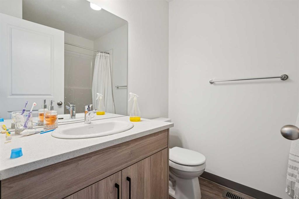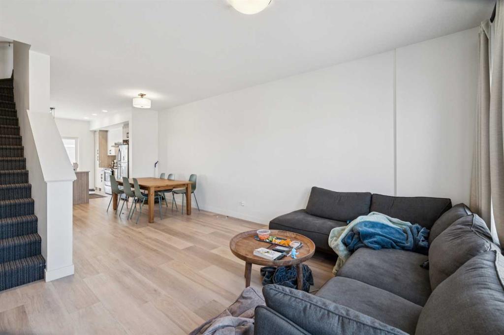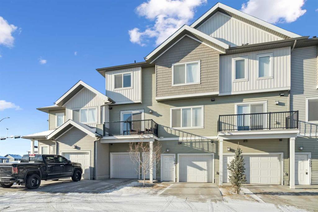 Discover the charm of contemporary living in this thoughtfully designed townhome. Filled with natural light from ample windows, the open-concept layout spans three inviting levels and offers beautiful mountain views. The stylish kitchen includes sophisticated fawn and white cabinetry, quartz counters, a generous island, and stainless steel appliances. Offering 2 bedrooms, 2.5 baths, and a cheerful, versatile den, this home provides flexible living spaces. The primary bedroom boasts ample storage and direct access to the ensuite. A convenient half bath on the main level enhances functionality. Features include vinyl plank floors, upper-level laundry, complete blinds, a single garage, and driveway plus street parking. Enjoy nearby pathways, local shopping, and convenient access to both Calgary and mountain adventures.