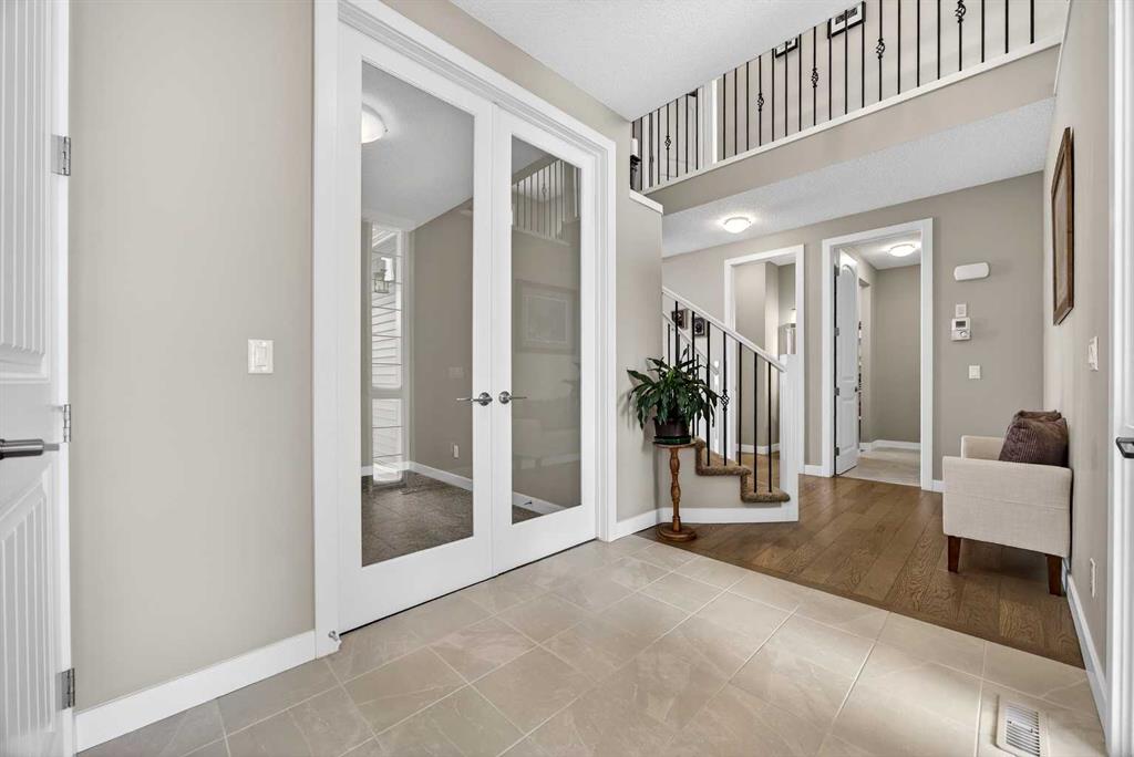 **COME JOIN US AT OUR OPEN HOUSE THIS SATURDAY FEBRUARY 21ST FROM 12-3PM**Welcome to the best value in Sunset Ridge! As you step into this beautiful home, you’re welcomed by gleaming hardwood floors and an abundance of natural light. The open-concept floor plan is perfect for entertaining and extends seamlessly to an east-facing balcony and a fenced, irrigated backyard that backs onto expansive green space—offering the privacy of no rear neighbours. The main floor features a private den with glass French doors, ideal for working from home. The chef-inspired kitchen showcases a large island with quartz countertops and bar seating, a stainless steel French-door refrigerator, and built-in microwave and oven. Extended cabinetry into the dining area provides exceptional storage, while the convenient walkthrough pantry connects the mudroom directly to the kitchen. The inviting living room features a cozy gas-burning fireplace, and a two-piece powder room completes the main level. Up the elegant curved staircase with wrought-iron spindles, is the primary bedroom This retreat offers a luxurious five-piece ensuite with dual sinks and a stand-alone soaker tub, along with a walk-through closet that leads directly to the laundry room for ultimate convenience. Two additional bedrooms, a generous bonus room and a four-piece bathroom complete the upper floor. The fully finished walkout basement is designed for entertaining, featuring two additional bedrooms, a four-piece bathroom, and beautiful views of the backyard and surrounding green space. Additional highlights include a double attached garage and central air conditioning. Ideally situated close to schools, parks, scenic walking trails, and shopping, this exceptional home combines comfort, style, and an unbeatable location.