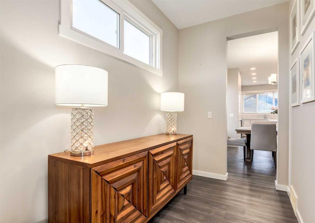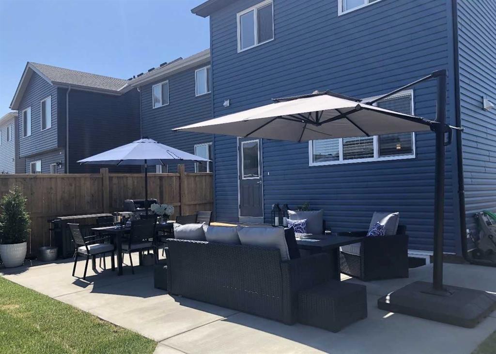 Welcome to this beautifully maintained 1,700 sq ft two-storey home offering 3 bedrooms and 2 ½ bathrooms, ideally situated on a large pie-shaped lot in the family-friendly community of Legacy. The open-concept main floor is thoughtfully designed for everyday living and entertaining, featuring a chef-inspired kitchen with a large center island topped with stone countertops, seating for several bar stools, stainless steel appliances, 42" upper cabinets, and generous counter space, all flowing seamlessly into a spacious dining area that easily accommodates a full-size table for hosting family and friends. The inviting living room is anchored by a stylish electric fireplace, while a versatile flex space offers the perfect setup for a home office, study nook, or craft room. A convenient 2-piece powder room & large mud room completes the level. Upstairs, you’ll find three well-sized bedrooms including a primary retreat with a walk-in closet and luxurious 5-piece ensuite, along with a 4-piece main bath and upper-level laundry with stacked washer and dryer. The unfinished basement provides excellent potential for future development with two large windows and a bathroom rough-in already in place, and central air conditioning ensures maximum comfort throughout the summer months. Outside, enjoy the expansive backyard with a concrete patio, a double detached garage, and an oversized parking pad ideal for extra vehicles or RV storage, all just steps from schools, parks, pathways, and the growing selection of shops and restaurants that make this community such a sought-after place to call home.