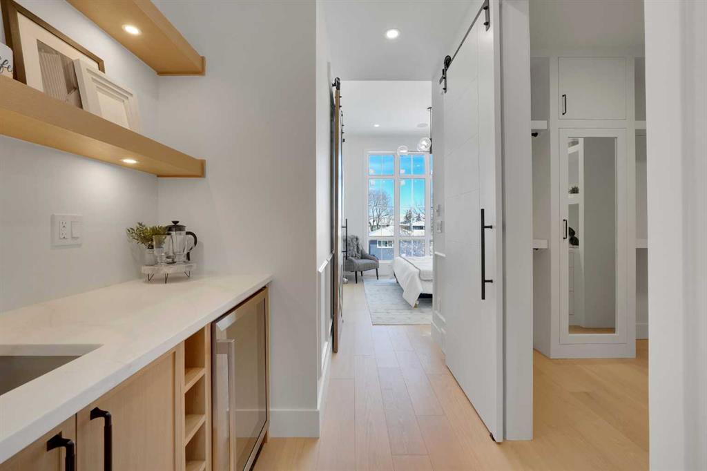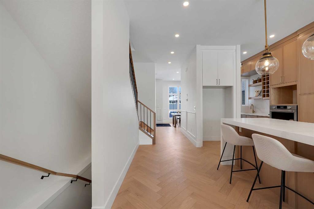 Introducing an exceptional modern infill in the highly sought-after community of Banff Trail, perfectly located on a quiet street just minutes from SAIT, McMahon Stadium, the University of Calgary, Confederation Park, and vibrant local amenities. This thoughtfully designed home offers outstanding craftsmanship, high-end finishes, double detached garage and a legal basement suite—ideal for multi-generational living or added income potential. The upper level, featuring 9ft ceilings, contains three spacious bedrooms, each complete with its own walk-in closet & private en-suite, providing comfort and privacy for the whole family. The luxurious primary retreat is truly impressive, showcasing a spa-inspired 5 pc en-suite, a large walk-in closet, and even a convenient wet bar - a rare and elegant touch. The laundry room is also located upstairs for ultimate convenience. The main floor is designed for both daily living and entertaining, highlighted by a massive chef's kitchen equipped with premium finishes, an oversized island, and a full butler's pantry. A bright living room with cozy gas fireplace, stylish dining area, and a versatile main floor den create the perfect balance of function and flow. Enjoy the 10 foot ceilings throughout this level! The fully developed basement offers a LEGAL SUITE with a separate side entry, complete with two bedrooms, a full bathroom, a comfortable living room, and a fully equipped kitchen all under 9 ft ceilings—ideal for rental income or extended family use. With exceptional design, unmatched convenience, and a prime inner-city location, this stunning home offers everything today’s buyers are looking for. A must-see opportunity!