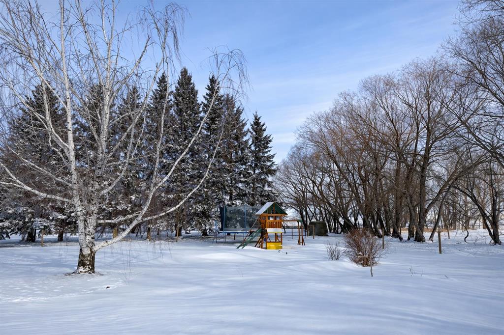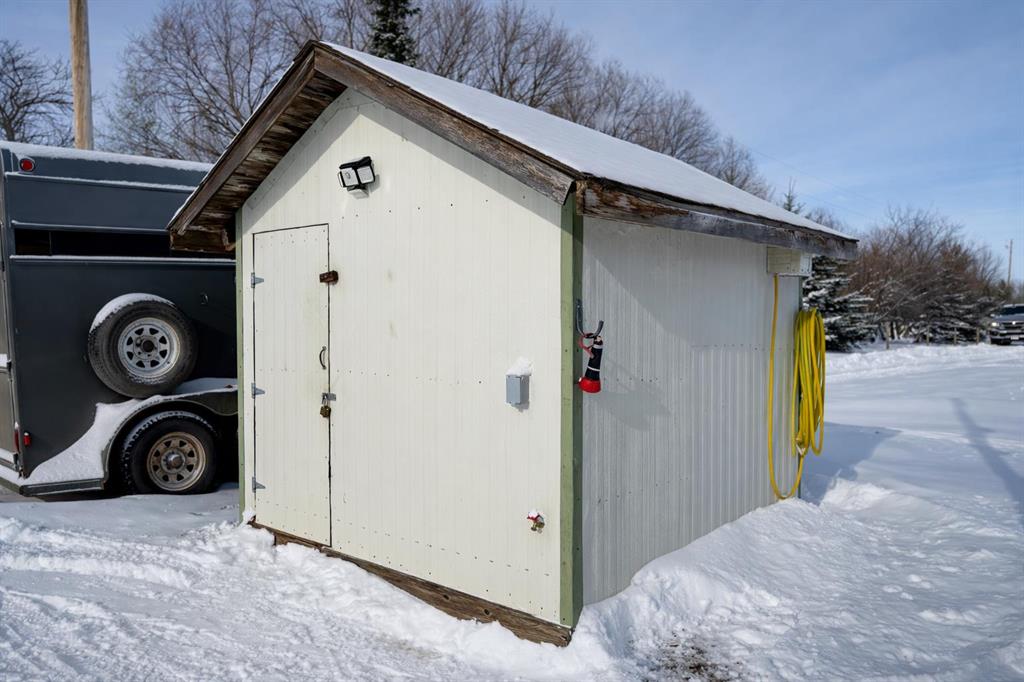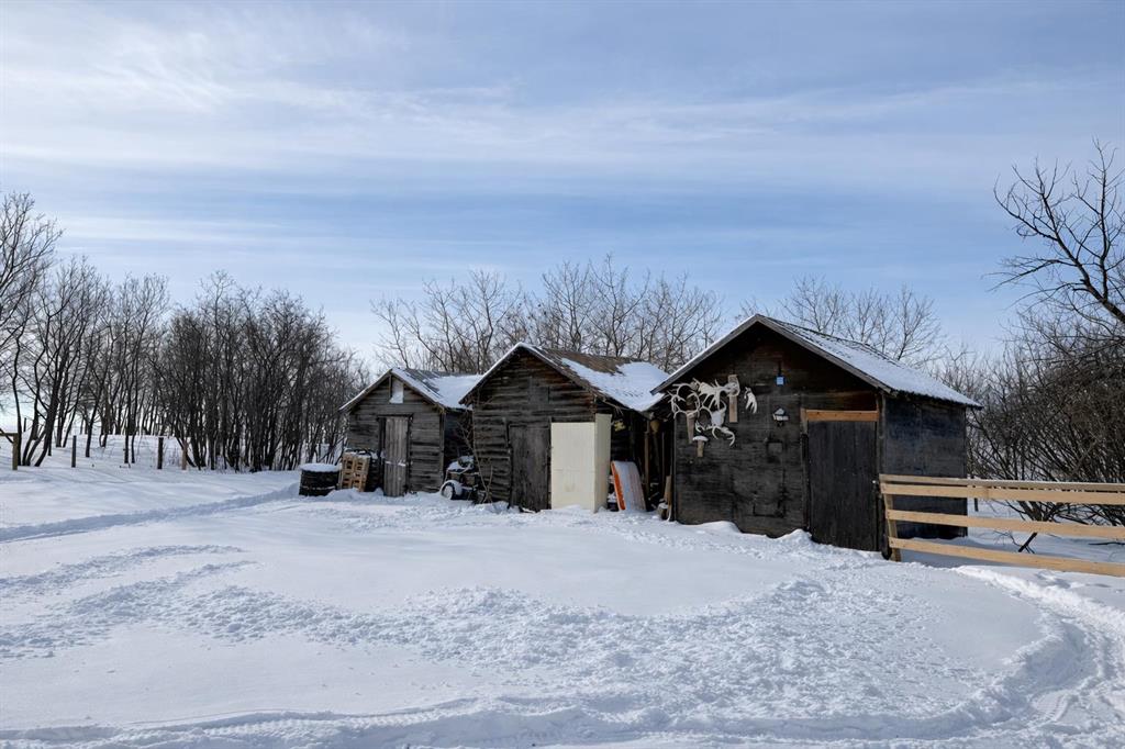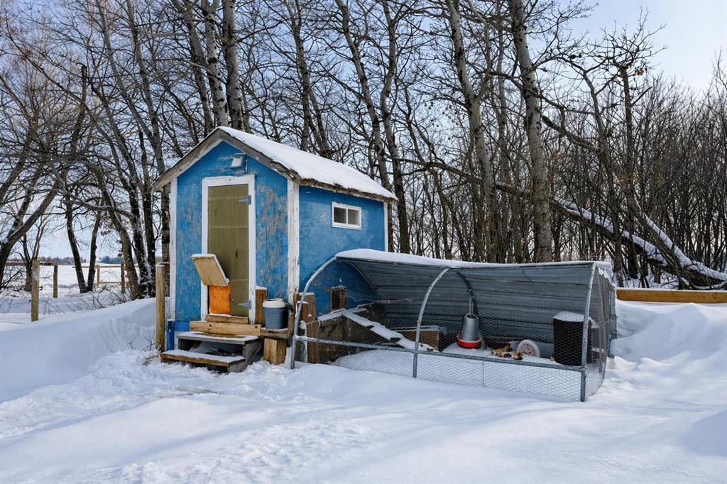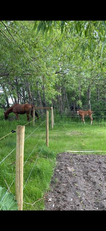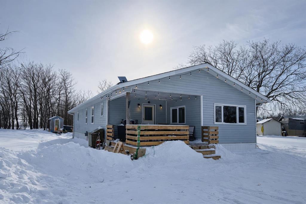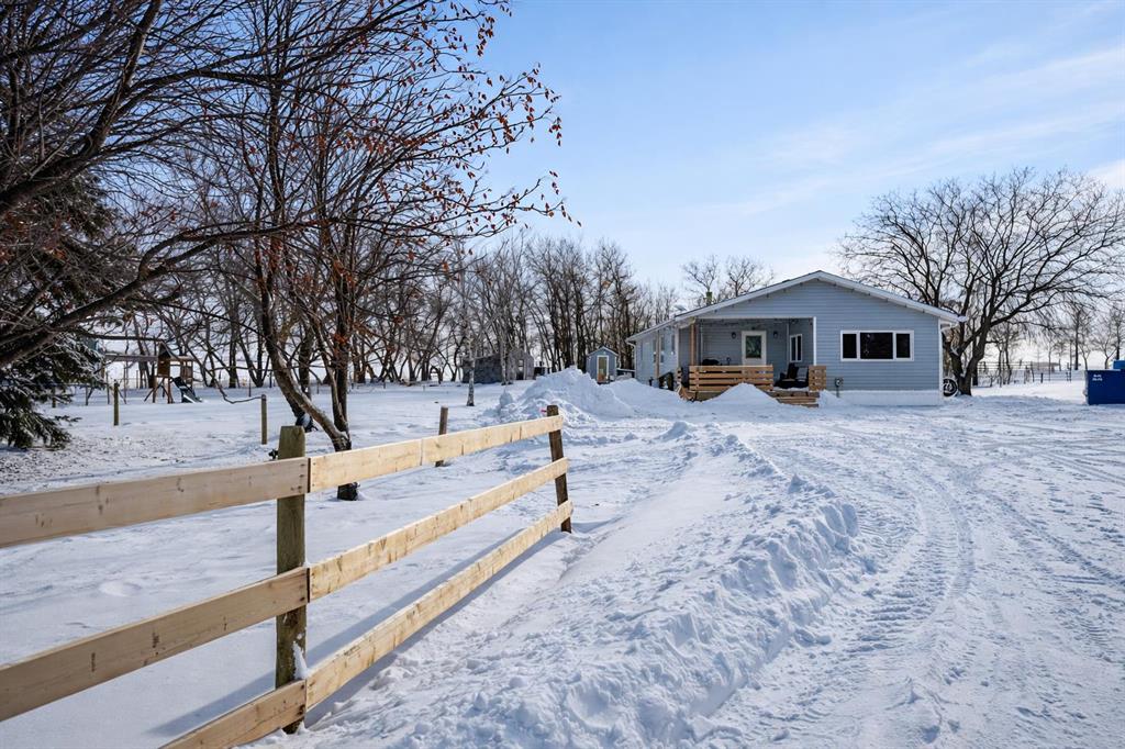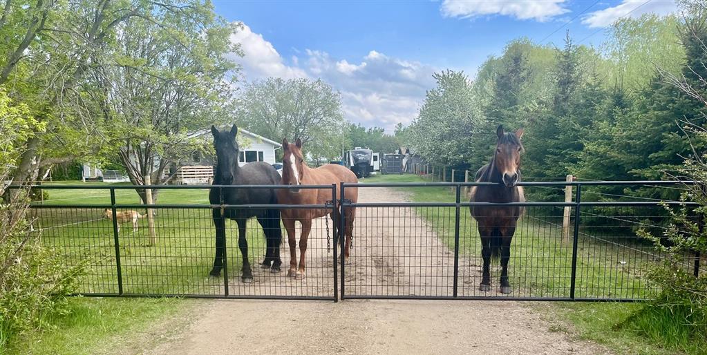 Escape to the country with this well-established acreage situated on 1.84 acres, offering privacy, functionality, and space to enjoy rural living. The home welcomes you with a large front porch accessible from the covered deck entry — the perfect spot to relax and take in the peaceful surroundings. Inside, you’ll find a bright open-concept family and dining area, centered around a cozy wood fireplace that provides additional warmth during colder months. The kitchen is designed for both everyday living and entertaining, featuring a large island with sit-up seating, butcher block countertops, and several newer appliances including the stove, dishwasher, washer, and dryer. Just off the kitchen is a convenient pantry and laundry area. A separate bonus living room with two large windows fills the space with natural light and includes a three-piece entertainment unit that will remain with the home. Down the hallway are three bedrooms, including two smaller rooms ideal for children, guests, or a home office, plus a third bedroom with built-in storage and bunk bed setup. The spacious primary bedroom offers excellent storage along with a renovated ensuite, while the main 4-piece bathroom was also updated in the summer of 2025. Additional updates include a high-efficiency furnace and hot water tank replaced in 2025. Outside, this property truly shines. The fully fenced perimeter with electric fencing is ready for animals and includes three paddocks and a small round pen. The yard has been thoughtfully developed with a garden area, greenhouse, fire pit space, chicken coop and run, plus three powered granaries for storage or hobby use. A heated pump house with backup generator provides added peace of mind. Mature trees surround the yard site, creating excellent shelter, privacy, and a welcoming farmstead feel. This is a rare opportunity to own a turn-key acreage with established infrastructure — perfect for hobby farming, animals, or simply enjoying country living close to town.