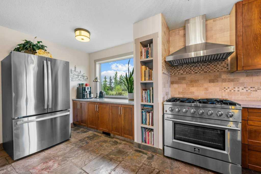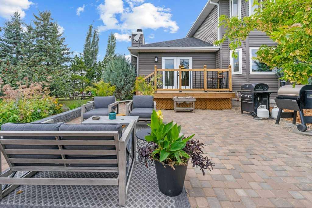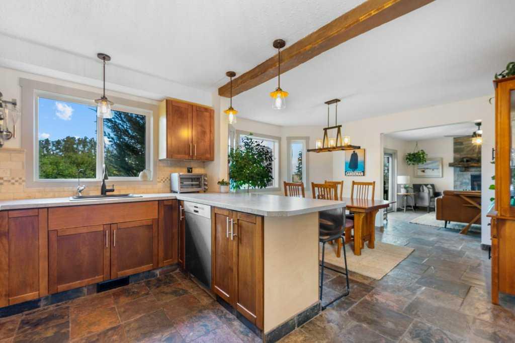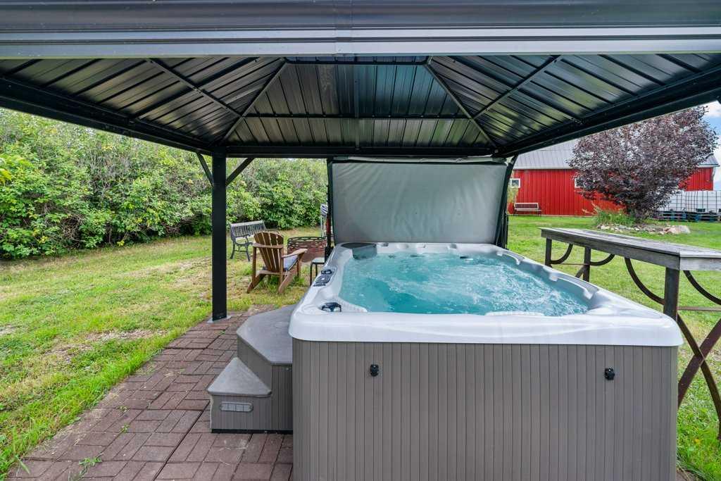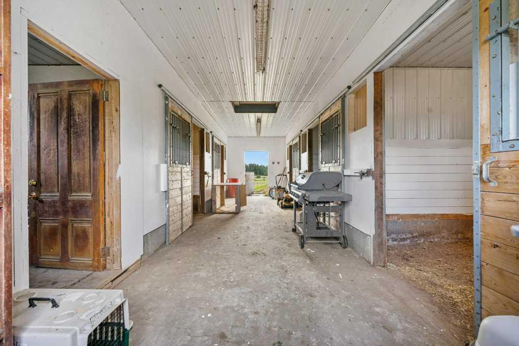 Welcome to this remarkable 24-acre hobby farm tucked away on a private road along the WID Canal, perfectly blending country living with modern comfort and ideal for horse enthusiasts, hobby farmers, or anyone seeking a lifestyle defined by space, privacy, and connection to the land. Horse lovers will appreciate the impressive 38’ x 30’ barn complete with power, five stalls, a tack and feed room with water hydrant, and a spacious loft, plus a large equipment storage shed, while the land is thoughtfully divided into multiple paddocks with auto water and barbless wire for safe and efficient livestock management. The extensively renovated home is filled with natural light and designed for both comfort and style, featuring a spacious living room with fireplace, a large dining area, and a chef-inspired kitchen equipped with a six-burner gas stove, stainless steel appliances, eating bar, and pantry, along with a convenient mudroom/laundry combination and two-piece bath on the main level. Upstairs offers a retreat-like primary suite with ensuite bath, two additional bedrooms, a sitting area, and a fully renovated main bathroom, while the lower level provides added flexibility with a large recreation room, office, and generous storage. Updates include slate flooring on the main level, luxury vinyl plank throughout the upper and lower levels, new siding and shingles (2017), and an attached double garage. Outside, enjoy your own private paradise on 1.5 landscaped acres where mature trees frame a stone patio, hot tub, and pergolas—an ideal setting for relaxing or entertaining—and don’t miss the insulated “chicken palace” that adds charm and character to this truly special property offering the tranquility, space, and lifestyle of country living at its finest.