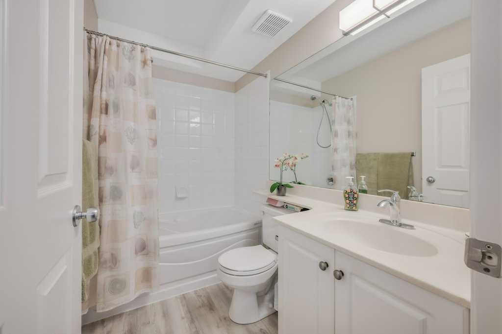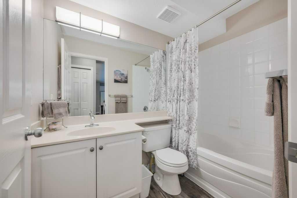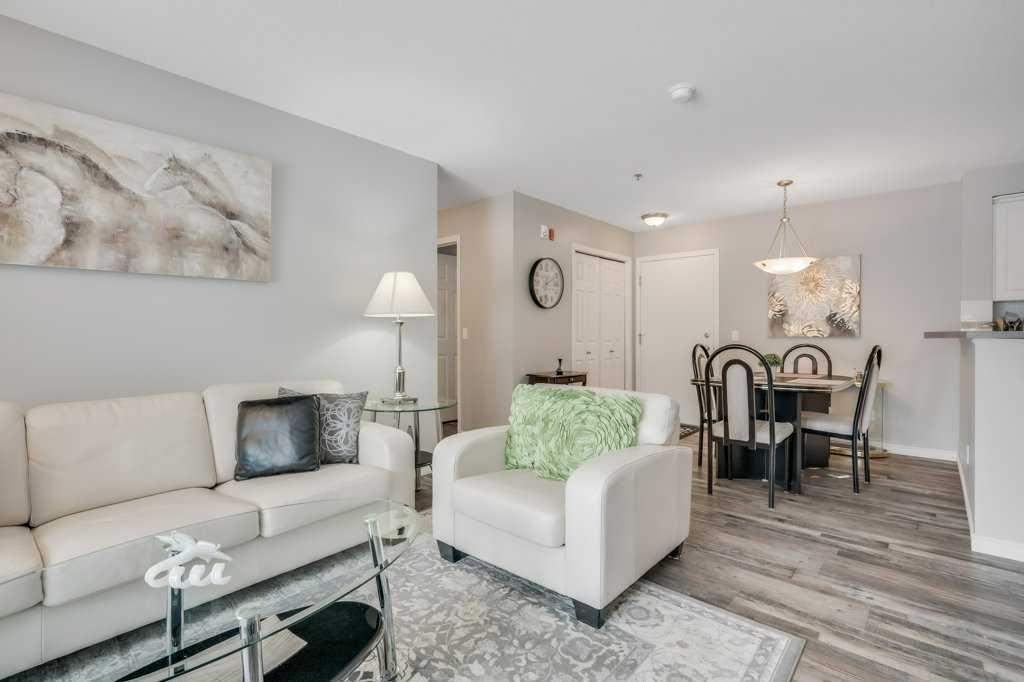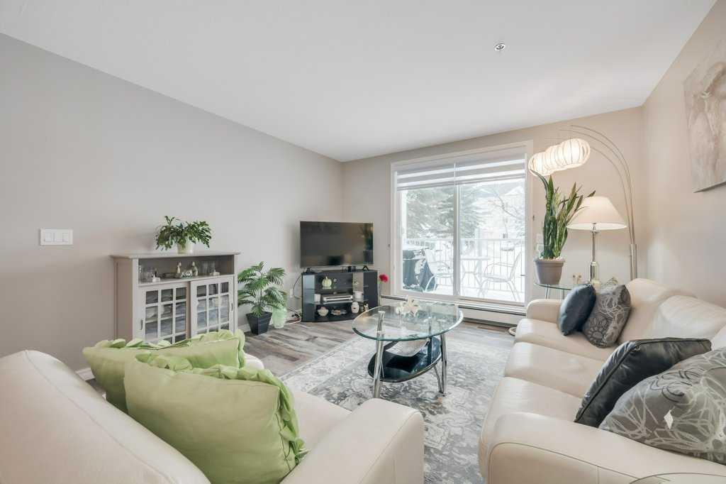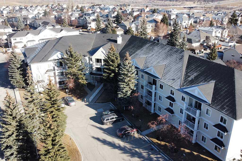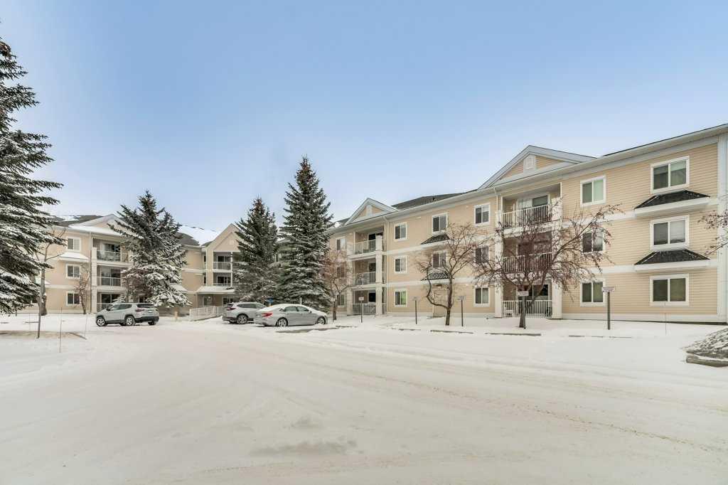 Welcome to this meticulously maintained 2 bedroom, 2 bathroom ground floor condo in the desirable community of Chaparral. Offering over 900 sq ft of functional living space, this well-designed unit features two spacious bedrooms including a primary bedroom with walk-in closet and private 4-piece ensuite. The open concept layout showcases upgraded luxury vinyl plank flooring, a functional kitchen with peninsula and breakfast bar, and spacious living and dining areas filled with natural light from the west-facing exposure, with direct access to the west-facing patio. A generously sized laundry room with additional storage adds everyday convenience. Located just a short walk from the main entrance, this unit includes titled underground heated parking ideally positioned across from the parkade door for easy access, along with a party room and ample visitor parking in this well-managed building. Enjoy quick access to Stoney Trail and Deerfoot Trail, close proximity to Fish Creek Provincial Park, ravines and pathway systems, plus nearby shopping, schools and transit.