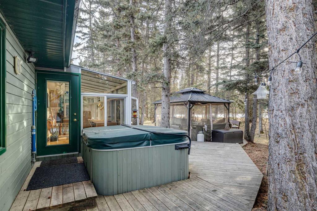 This inviting bungalow with a versatile loft sits on a spacious 0.5+ acre lot in a quiet cul de sac, offering privacy, outdoor enjoyment, and exceptional functionality. Backing directly onto the Redwood Meadows golf course, the setting feels open, peaceful, and connected to nature. Inside, the home features a bright, generous living room with a wood burning fireplace and a four season sunroom warmed by a gas fireplace, perfect for relaxing year round. The well designed layout includes 3 bedrooms and 2.5 bathrooms, an additional main floor office can be used as as a 4th bedroom providing comfortable space for families, guests, or downsizers who still want room to breathe. The loft adds tremendous flexibility and can serve as a home office, kids’ zone, TV lounge, or creative studio. The large lot also includes a hot tub, teepee, gazebo, a shed, gardens and sprinkler system; everything you need for easy, enjoyable outdoor living and entertaining. Convenient attached double garage and shop, large enough to accommodate a 40’+ motorhome, trailer, or recreational toys. With a full interior sani dump and 2 30 Amp hook-ups, it’s a dream setup for RV owners. Alternatively, the space can be transformed into an indoor sports court or an incredible multi use area, making it ideal for hobbyists or anyone needing extra workspace. This property blends comfort, practicality, and lifestyle in a way that’s hard to find. A rare opportunity in a prime cul de sac location.