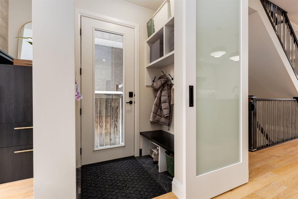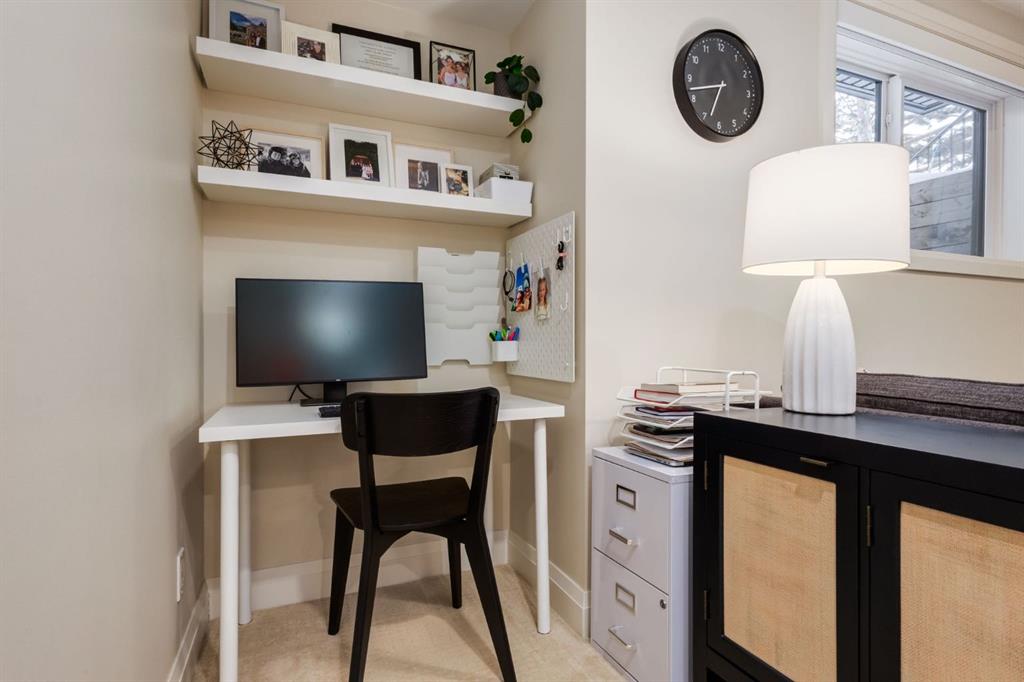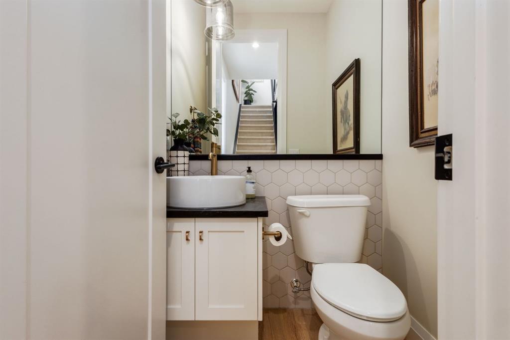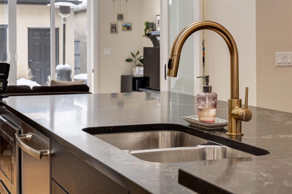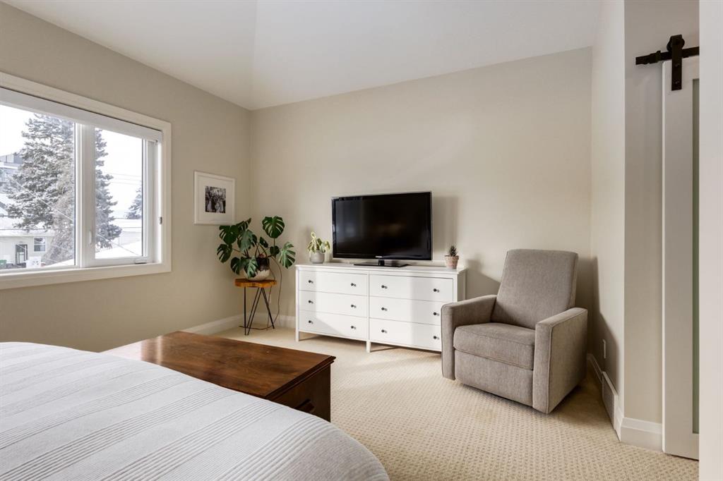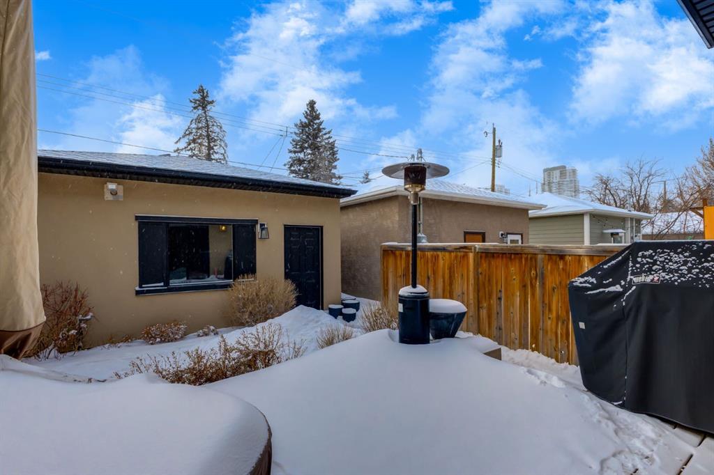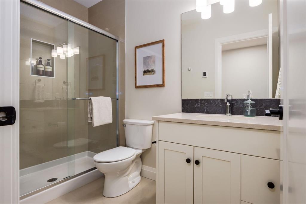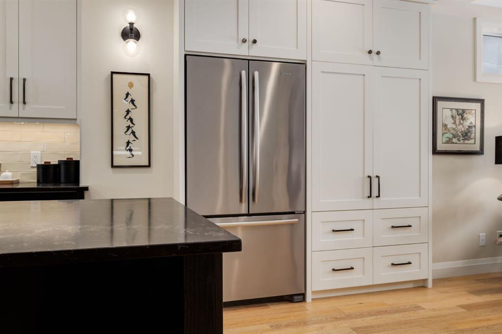 Located in highly coveted Shaganappi, this detached home was expertly built with quality in mind, no expense sparred, and a timeless elegance that will never go out of style. This stunning 4-bedroom, 3.5 bath home affords you a luxurious lifestyle and a quick walk to two LRT stations and endless amenities. Ditch the cheap materials used in most modern infills and upgrade to high end supplies including solid wood cabinetry and millwork as well as custom window coverings, central AC, a heated garage, and manicured landscaping including composite decking, mature perennials, and garden beds. As you walk up the front steps, the stunning curb appeal of this home stands out with classic white brick complimented by stone and metal accents. You’re greeted through the entryway into the barely lived in, open concept main floor which boasts engineered wood floors, soaring ceilings, designer lighting, and spectacular natural light through many expansive windows. The massive kitchen is fit for a large family with solid wood cabinetry, a custom range hood, gas stove, enormous kitchen island with bar seating, wine storage, and a pull-out pantry, all of which is accented by designer pendant lighting, ambient wall sconces, and an ageless backsplash. Enjoy family gatherings in your spacious dining room under a spectacular chandelier with mature trees lending privacy outside of the bright front windows. The large living room is flooded with natural light through floor to ceiling glass sliding doors and additional transom windows and is warmed by a striking gas fireplace with subway tile surround, adorned by a crafted mantle. Step outside onto the west facing composite deck to relax and enjoy the sunshine in your private, west facing backyard with landscaping including mature perennials and garden beds. Enjoy a moody mud room with a hexagonal tile accent wall and gold hardware. Rear entry from the garage is possible through your side mud room with built in storage including a bench with hooks, perfect for a bustling family. Enjoy elegant open railings as you ascend to the upper level which includes 3 beautiful skylights and large windows. The primary retreat has vaulted ceilings, west facing windows, and a large walk-in-closet with built-ins. The newly remodelled, luxurious spa-like ensuite showcases a free-standing tub that’s flooded in natural light, dual sinks with tons of extra storage, and a beautifully tiled stand-up shower with bench seating. Upstairs features two generously sized kid’s bedrooms allowing room for larger furniture and space to play. The kids’ bedrooms share a stunning 4-piece bathroom. Enjoy an upstairs laundry room with custom millwork, quartz countertops and tiled backsplash, endless storage, and a must-have sink. Downstairs boast a huge media space with a bespoke wet bar and wine fridge, office space, playroom, and room for guests with an additional large bedroom and a 3 -piece bathroom matching the finishes you’ve come to expect.