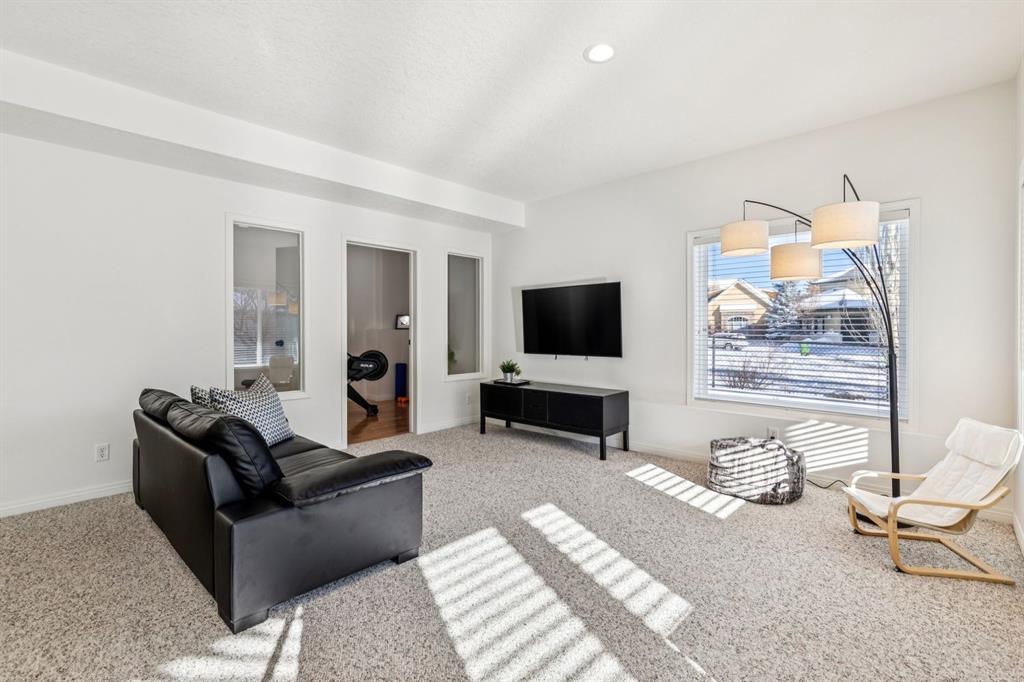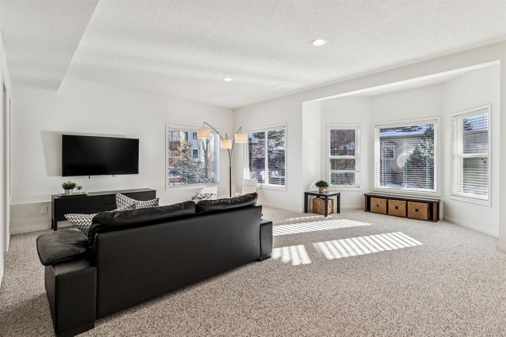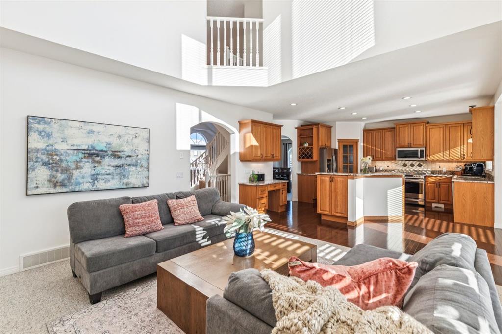 Prepare to be captivated by this stunning home that blends timeless elegance with quality craftsmanship in the sought-after Evercreek Bluffs community. Arriving here feels like a true escape from the city while still being minutes from the natural beauty of Fish Creek Provincial Park. This prestigious location offers the perfect balance of peaceful surroundings and convenient city living. Meticulously maintained, this home offers over 2,270 sqft above grade plus a fully developed walkout basement, totalling 4 bedrooms and 3.5 bathrooms. Thoughtful updates and functional design elevate the traditional floor plan into a modern family home. Expansive south-facing windows (majority recently upgraded to triple-pane) and soaring vaulted ceilings fill the home with abundant natural light. The formal living room sits to the left of the front entrance and flows seamlessly into the formal dining area, ideal for entertaining. At the back of the home lies the true heart of the space: warm and inviting family room featuring a cozy gas fireplace, bright dining nook, and well-appointed kitchen complete with an oversized island, granite countertops, quality oak cabinetry, and stainless steel appliances. Step outside to the south-facing deck, perfect for hosting family and friends or enjoying quiet evenings beneath the pergola. The main floor is completed by a versatile den/office, powder room and functional mudroom. Upstairs, the spacious primary retreat includes a cozy sitting area - perfect for relaxing with a favourite book - along with a spa-inspired ensuite featuring dual sinks, soaker tub, separate shower, and private water closet. The walk-in closet includes extensive built-in organizers. Two additional bedrooms are located on the opposite side of the upper level with 4-piece bathroom between the rooms. The walkout basement features in-floor heating within the concrete slab and offers an oversized rec room ideal for movie nights and games, an additional bedroom, gym/hobby room, and a beautifully designed laundry space. Car enthusiasts and families alike will appreciate the oversized triple garage (accommodates larger vehicles too), complete with epoxy flooring, abundant storage cabinetry, and gas heater (2024). Recent mechanical and exterior upgrades include: rebuilt composite deck, acrylic stucco paint, triple-pane windows. Situated on a large corner lot without the burden of extra sidewalks, the property offers ample outdoor space for family enjoyment. Located in desirable Evergreen Estates with nature just steps away, enjoy year-round outdoor activities including cycling, walking trails, wildlife sightings, and even the occasional northern lights display. An exceptional opportunity to move into a truly family-focused community and a place you’ll be proud to call home.