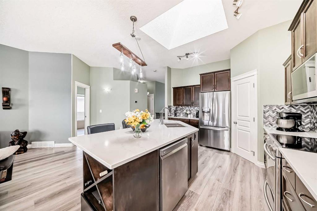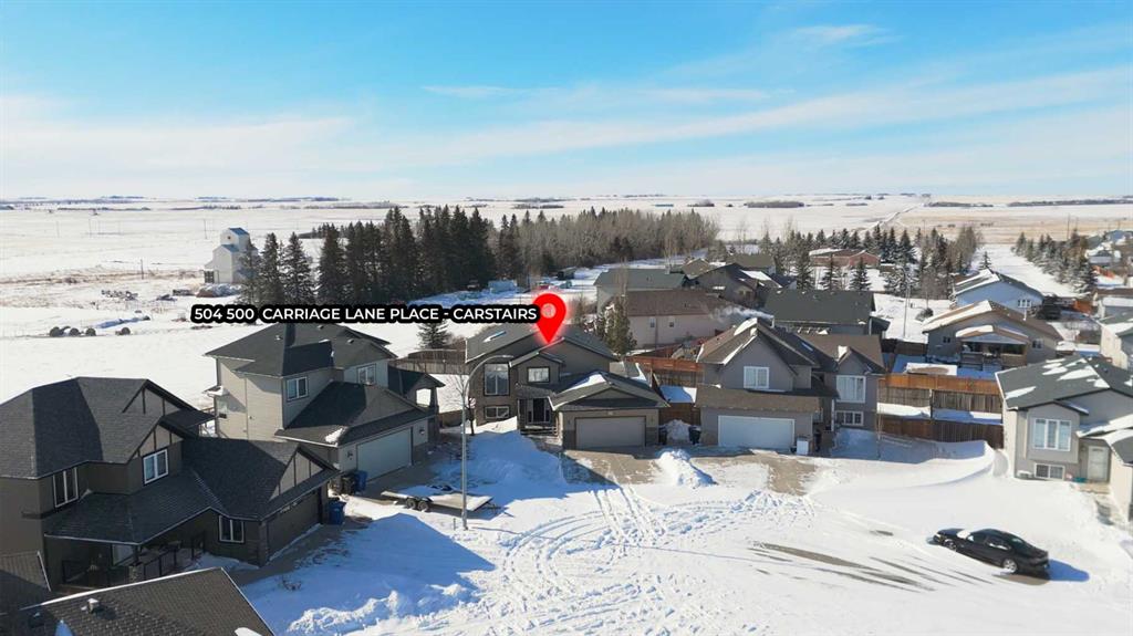 Open House! Sunday, February 22nd, 2026, from 1:00 PM to 4:30 PM! Trade city congestion for wide-open views - Welcome home to 504, 500 Carriage Lane Place! This 5 bedroom 3 bathroom bi-level home showcases over 2500 square feet of living space on an expansive 9,000 square foot pie-shaped lot with prime cul-de-sac location. The main level is bright & open with 10 foot ceilings and massive windows. This level holds three of the five bedrooms, including a primary suite built for relaxation, complete with a deep soaker tub, full size walk-in shower, & walk-in closet. The contemporary gourmet kitchen features sleek wood-grain cabinetry, premium stainless steel appliances, corner pantry and spacious island with seating - perfect for everyday living & entertaining. This space flows effortlessly into a formal dining area and out onto the private back deck—the ultimate spot to unwind while overlooking the peaceful farmland. Complete with gas hookup for your BBQ and steps down the backyard oasis. The walk-out basement is recently renovated to be a comfortable, versatile space with 9-foot ceilings, luxurious in-floor heating, and large windows that bring in as much light as the main floor. This level includes the final two bedrooms, a third full bathroom, and a large family room. Step outside to find the covered patio with hot tub, positioned perfectly to take in the sunset over the firepit and the open land behind the property. For those with hobbies or extra equipment, the 36x10 detached workshop is a major standout. The property has been mechanically updated for comfort and efficiency, featuring central A/C, a high-efficiency furnace, a combi-boiler system for tankless hot water, central vacuum system, and CAT5 wiring throughout. This prime Carstairs location is just steps from walking paths, schools, and local rodeo grounds to enjoy everything this small town has to offer! It’s more than a house; it’s a lifestyle upgrade. Book your viewing today!
