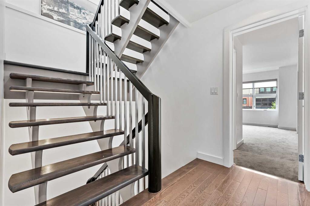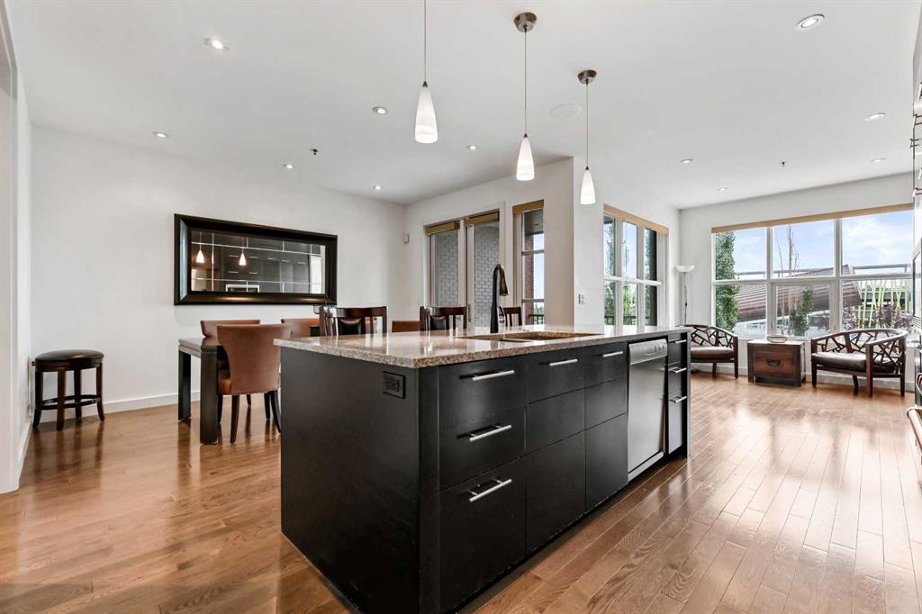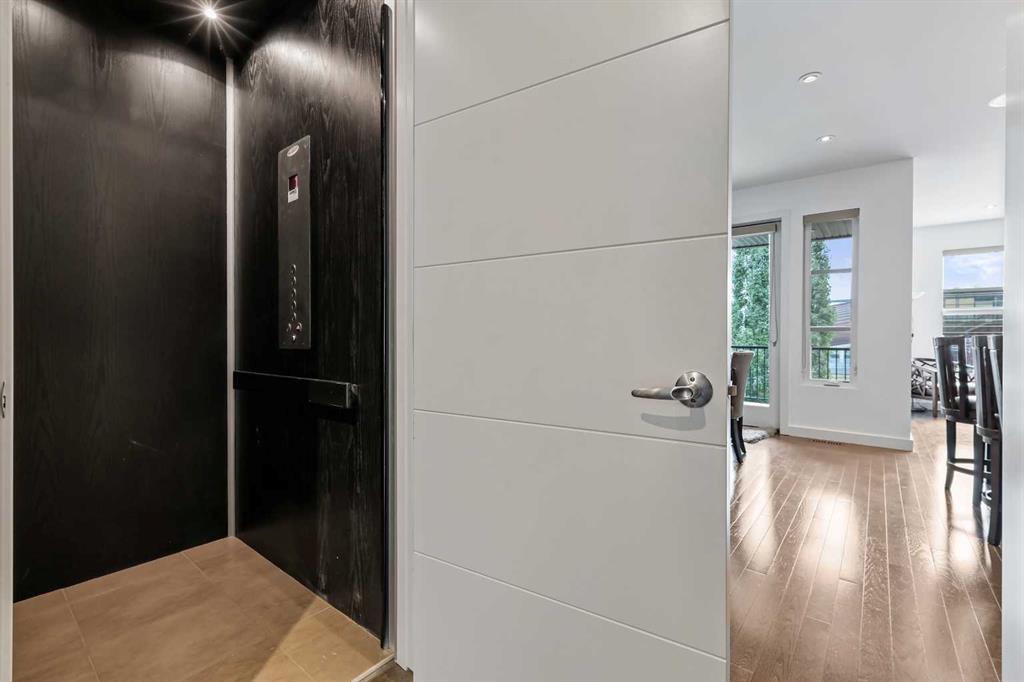 Experience elevated townhome living at 606 Aspen Meadows Hill SW – a luxurious 3-bedroom, 4-bathroom residence in the prestigious community of Aspen Woods. Built in 2020, this executive home is thoughtfully designed with a private in-suite elevator, upscale finishes, and a highly functional layout that suits both relaxed living and stylish entertaining. The main floor is bright and airy, featuring 9’ ceilings, engineered hardwood flooring, and elegant built-ins. The kitchen is a chef’s dream with granite countertops, a center island, gas cooktop, wall oven, and a stainless steel French-door refrigerator. A bright dining area opens through French doors to a sun-drenched west-facing patio, ideal for relaxing or hosting. The living room offers a cozy yet refined feel with its fireplace and custom built-ins overlooking the fenced backyard. Also on the main floor is a powder room and a spacious third bedroom with a walk-in closet and private 3-piece ensuite — perfect for guests, aging parents, or a home office. Upstairs, a generous loft space includes a wet bar, bar fridge, and custom cabinetry. The primary suite provides a peaceful retreat with a private balcony, walk-in closet, and a luxurious 4-piece ensuite with double vanity and oversized shower. The second upper bedroom also includes a walk-in closet and its own full ensuite bath. A convenient upper-floor laundry room makes everyday living easy. Additional features include central A/C, a double tandem attached garage, and a huge private storage room. Located close to Aspen Landing, LRT, top schools, and parks, this home offers upscale, maintenance-free living in one of Calgary’s most desirable west-end communities.