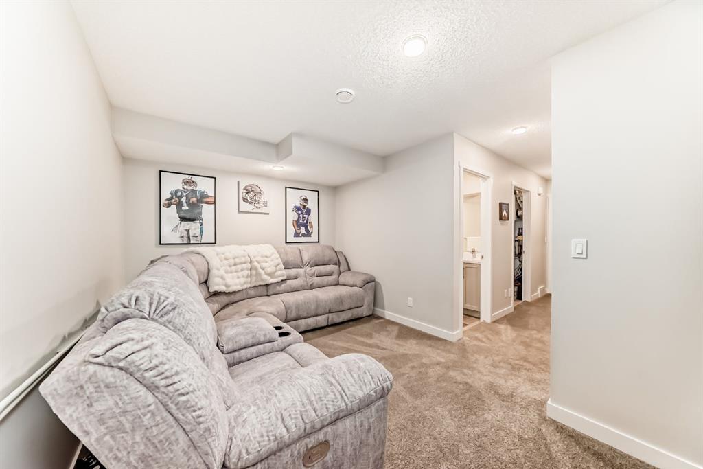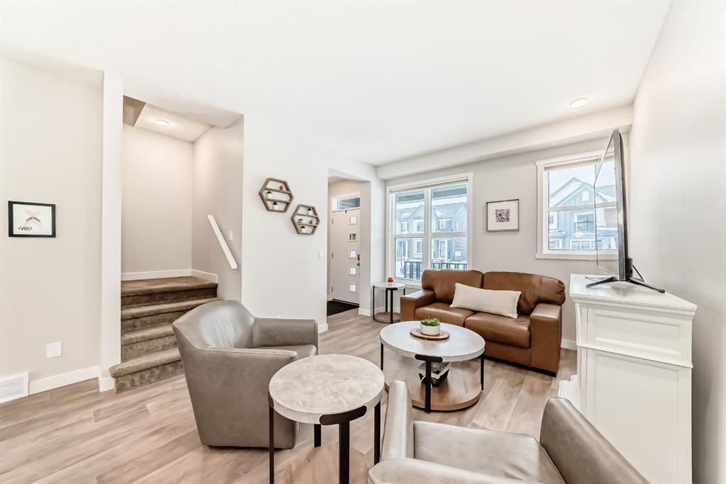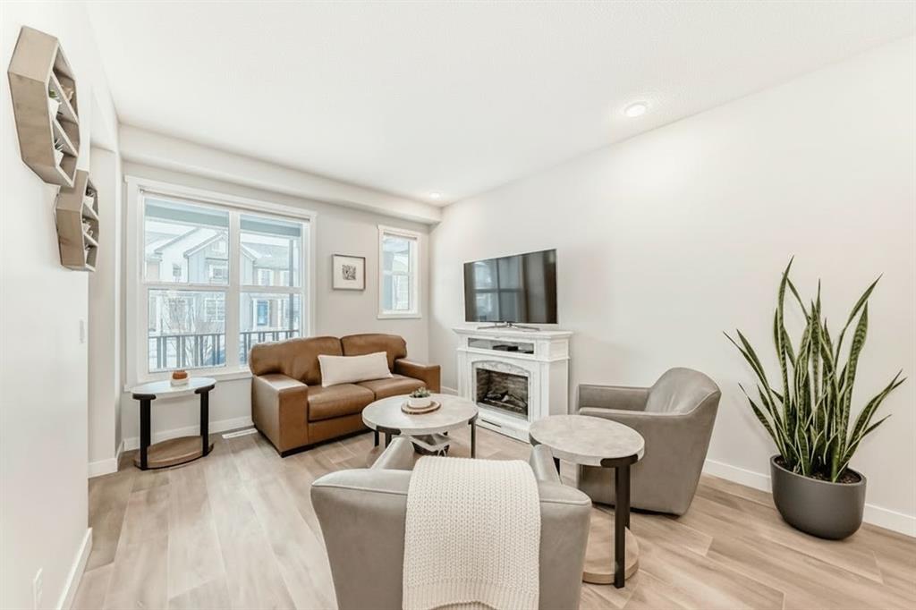 CHARMING TOWNHOME | PROFESSIONALLY FINISHED BASEMENT | GREAT LOCATION | NO CONDO FEES | Welcome to this charming 4 bedroom townhome…well maintained, featuring an open-concept floorplan, vinyl plank flooring throughout the main level and is bright with an abundance of natural light! The foyer offers a walk-in closet…ideal for keeping your personal & seasonal items organized. The living room blends perfectly into the spacious dining area, creating a wonderful space for entertaining with family & friends! The open kitchen, large enough for a moveable island, showcases designer cabinetry in a modern neutral shade, elegant white quartz countertop & stainless steel appliances…including a brand new stove! The rear foyer has additional storage, a pantry closet, & access to the private fenced yard. Completing this main level is a 2pc powder room. Upstairs you will find a Master bedroom, spacious enough for a king size bed and offers a walk-in closet and 3pc ensuite with oversized shower. There are 2 additional bedrooms, a main bathroom with linen storage…plus convenient upper laundry! Professionally finished by the builder, the lower level is fantastic…enjoy game day or your favourite movie on a big screen in the family room; there is also a generous sized 4th bedroom, full bathroom, plus additional storage! This home is nicely located on a quiet street with a private backyard…fully fenced and landscaped with patio & BBQ gas-line! There is back alley access with a parking pad for 2 vehicles, plus the roof is new (replaced in 2025). Ideally located with quick & easy access, just a short walk to nearby shops, services & walking around the pond!