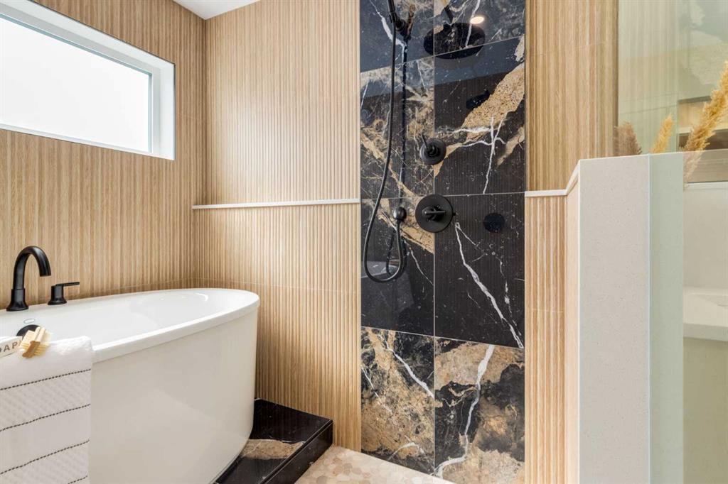 Blending functionality and charm, the Sutton is a welcoming home designed for real life—equally perfect for entertaining friends or settling in for a cozy night at home. The open-concept main floor feels bright and spacious, featuring luxury vinyl plank flooring throughout, quartz countertops, and a warm electric fireplace that anchors the living space. The classic L-shaped kitchen is as practical as it is polished, with a central island for prep and gatherings, plus a kitchen window overlooking the backyard—ideal for keeping an eye on kids, pets, or the BBQ while you cook. A walk-in butler’s pantry adds the “everything-but-the-butler” convenience: well-lit, organized storage just steps from where you’ll need it most. Daily routines are made easier with a rear mudroom complete with additional storage and built-in lockers—perfect for shoes, backpacks, coats, and all the little essentials that tend to pile up. A modern wood railing and statement slat-wall detail add bold style in all the right places, creating an eye-catching focal point while still keeping safety and function front of mind. Upstairs, the thoughtful layout continues with a central bonus room that creates a comfortable buffer between the primary suite and the secondary bedrooms—giving everyone space to spread out, connect, or unwind. The winged bedroom configuration enhances privacy, while second-floor laundry keeps day-to-day living efficient. The primary bedroom feels like a true retreat with a vestibule-style entrance and a spacious ensuite offering a dual vanity and a wet room option—bringing spa-worthy comfort to your everyday. A 9’ foundation adds valuable lower-level height and flexibility, and the home is solar ready with 200-amp service, a 64-panel breaker, and conduit roughed-in to the roof—built with the future in mind. Enjoy outdoor living with a deck already in place, ready for summer dinners and relaxed evenings. Set in Calgary’s “new west,” Alpine Park is designed around New Urbanist principles—meaning walkability, people-first streetscapes, and a community layout built to encourage connection. At the heart of it all is the planned Village Centre, envisioned as an amenity core with everyday conveniences (think grocery/pharmacy and more) plus places to linger like restaurants and coffee spots—intentionally planned so many daily needs are within an easy walk. The community also highlights design touches like couplet roads that help diffuse traffic and support a more comfortable, walkable feel, along with parks and green connections such as Midway Park that link the Village Centre through the neighbourhood. And when you do want to get out and explore, Alpine Park’s location pairs quick access to Calgary via Stoney Trail with easy escapes toward nature—plus Fish Creek Provincial Park is close by for walks, rides, and weekend resets. **Photos are from the show home/previous builds to demonstrate quality of construction & finishes and may not be an exact representation of this home**
