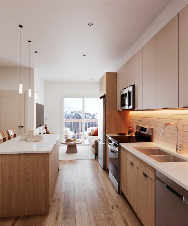 This 2-bedroom, 2-bath residence offers something incredibly hard to find in Banff National Park – pristine interior selections, brand-new stainless steel appliances, a 10-year new home warranty, and an unbeatable location! Located on a quiet street just minutes from downtown Banff’s cafés, restaurants, and everyday amenities, McHardy Residences presents a rare opportunity to own a newly built home designed for full-time mountain living. The open-concept layout provides practical, comfortable living for those who call Banff home year-round including in-suite laundry, a spacious quartz island, and luxury vinyl plank flooring. Set in a peaceful neighborhood yet just moments from the energy of downtown, this unique property delivers the lifestyle locals are looking for: space, serenity, and a true connection to the mountains. Additional storage lockers provide valuable room for all your mountain gear.