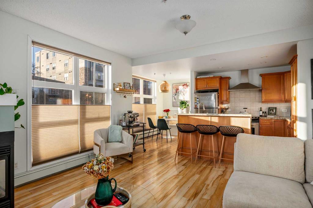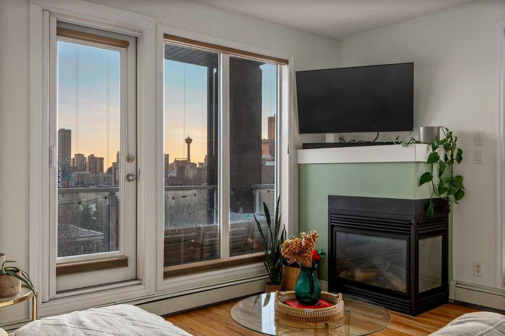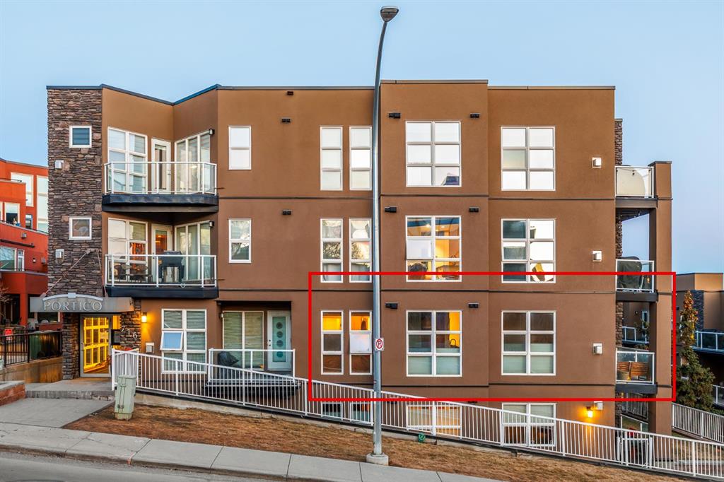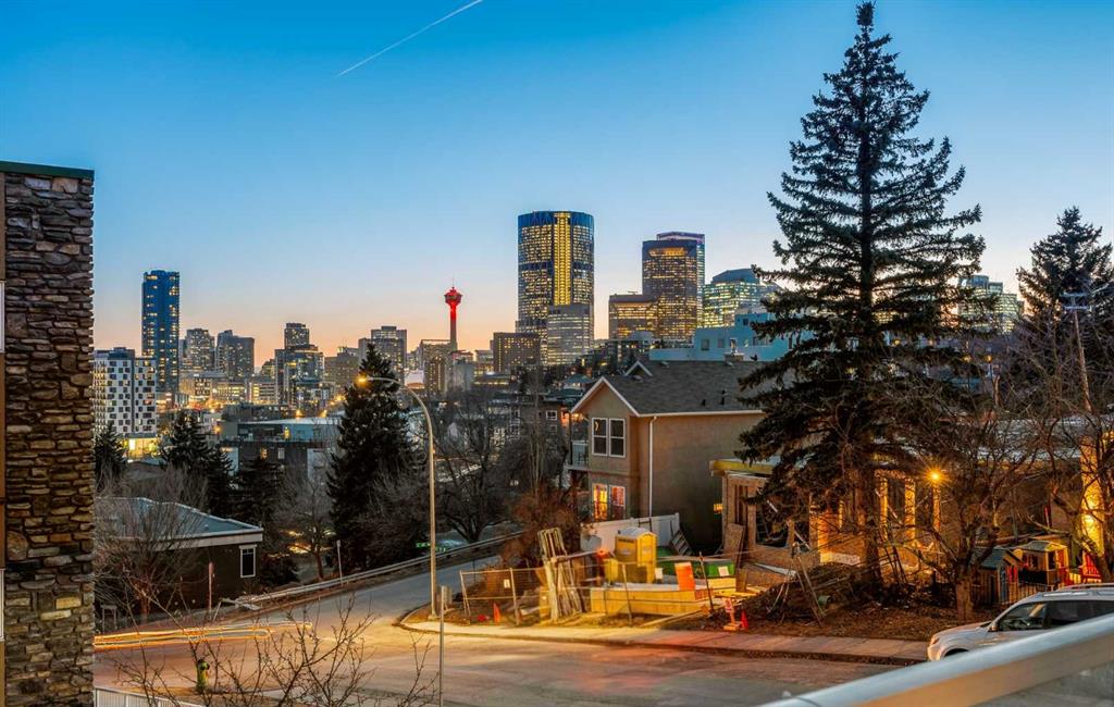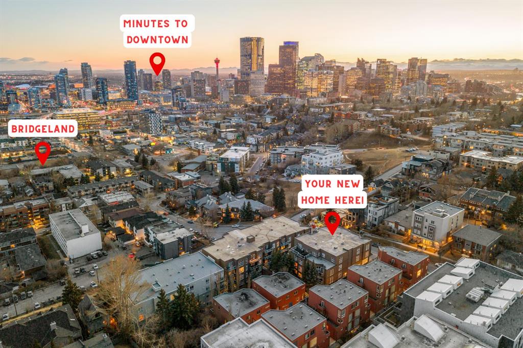 2 BED 2 BATH | CORNER UNIT | STUNNING DOWNTOWN VIEWS | PET LOVERS DREAM | Welcome to the Portico, located in the desirable neighbourhood of Renfrew and right on the border of Bridgeland - two of Calgary’s most vibrant inner-city communities and just minutes from Calgary's downtown core. This gorgeous 2 bedroom, 2 bathroom corner unit offers nearly 900 sq ft of thoughtfully designed space, wrapped in floor-to-ceiling windows that flood this open-concept home with beautiful natural light. With S/SW exposure, you’ll enjoy the sunshine as well as stunning views of downtown and the iconic Calgary Tower - the sunsets are especially breathtaking! Inside, the kitchen features plenty of cabinetry, granite countertops, stainless steel appliances, and a raised bar for casual dining. The dining space has the sweetest custom-built breakfast nook from which you also get to enjoy the city views. The bright and airy living area features a cozy gas fireplace, perfect for Calgary winters. The spacious entryway makes a welcoming first impression, and the dedicated laundry room offers additional storage space to keep everything organized. One titled underground parking stall & a large secure storage locker is included. Step out onto your private balcony overlooking downtown, complete with a gas BBQ line - perfect for summer evenings with friends or quiet mornings soaking in the city views. Pet lovers or those with mobility issues will especially appreciate this unique building design. Entry is from the second level, meaning no elevator or stairs are required for you or your pup, while the unit itself is elevated above ground level for added privacy and security. The Portico is a pet-friendly building with fantastic off-leash parks nearby. Living here means getting to enjoy the cafés, restaurants, shops and river pathway systems that make Renfrew and Bridgeland so sought-after. Calgary favourites like Luke’s Drug Mart, Bridgeland Market, Bar Gigi, and Mari Bakeshop are all minutes away, with easy access to downtown. Step into the heart of Bridgeland and Renfrew living - comfort, convenience and community all in one place. This condo is the perfect opportunity to plant roots in one of Calgary’s best inner-city neighbourhoods.