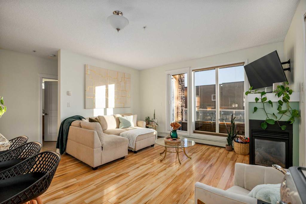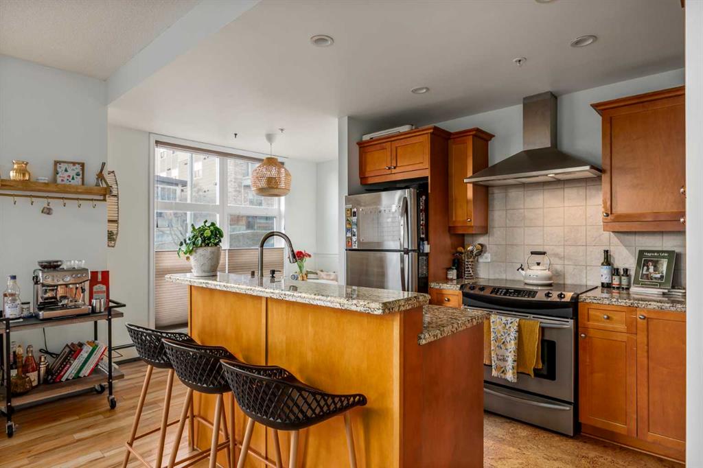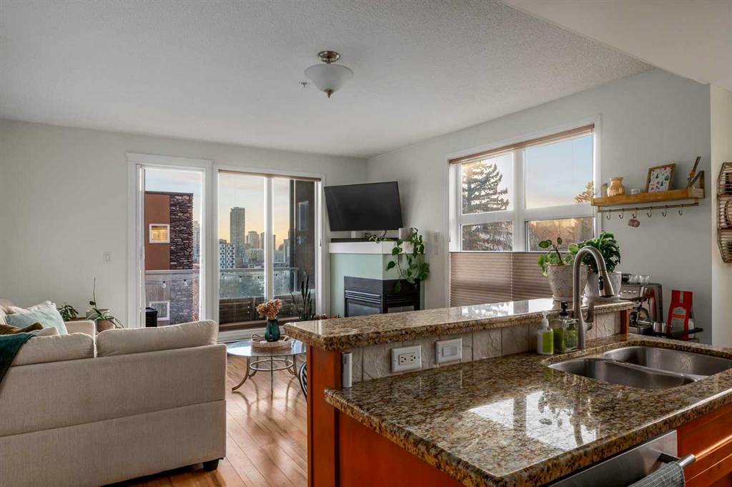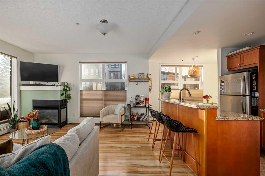 2 BED 2 BATH | CORNER UNIT | STUNNING DOWNTOWN VIEWS | PET LOVERS DREAM | Welcome to the Portico, located in the desirable neighbourhood of Renfrew and right on the border of Bridgeland - two of Calgary’s most vibrant inner-city communities and just minutes from Calgary's downtown core. This gorgeous 2 bedroom, 2 bathroom corner unit offers nearly 900 sq ft of thoughtfully designed space, wrapped in floor-to-ceiling windows that flood this open-concept home with beautiful natural light. With S/SW exposure, you’ll enjoy the sunshine as well as stunning views of downtown and the iconic Calgary Tower - the sunsets are especially breathtaking! Inside, the kitchen features plenty of cabinetry, granite countertops, stainless steel appliances, and a raised bar for casual dining. The dining space has the sweetest custom-built breakfast nook from which you also get to enjoy the city views. The bright and airy living area features a cozy gas fireplace, perfect for Calgary winters. The spacious entryway makes a welcoming first impression, and the dedicated laundry room offers additional storage space to keep everything organized. One titled underground parking stall & a large secure storage locker is included. Step out onto your private balcony overlooking downtown, complete with a gas BBQ line - perfect for summer evenings with friends or quiet mornings soaking in the city views. Pet lovers or those with mobility issues will especially appreciate this unique building design. Entry is from the second level, meaning no elevator or stairs are required for you or your pup, while the unit itself is elevated above ground level for added privacy and security. The Portico is a pet-friendly building with fantastic off-leash parks nearby. Living here means getting to enjoy the cafés, restaurants, shops and river pathway systems that make Renfrew and Bridgeland so sought-after. Calgary favourites like Luke’s Drug Mart, Bridgeland Market, Bar Gigi, and Mari Bakeshop are all minutes away, with easy access to downtown. Step into the heart of Bridgeland and Renfrew living - comfort, convenience and community all in one place. This condo is the perfect opportunity to plant roots in one of Calgary’s best inner-city neighbourhoods.