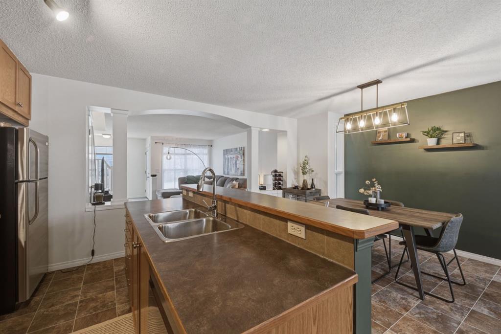 Quiet cul-de-sac living in McKenzie Towne. *OPEN HOUSE Sunday Feb. 22 1-4pm* This meticulously cared-for three-bedroom, two-and-a-half-bathroom home is ideally located just a short walk from the elementary school, multiple parks, and the splash park. It’s also steps away from shops and everyday conveniences along 130th Avenue, making it a perfect location for an active, family-friendly lifestyle The main floor welcomes you with a bright entry that opens into a spacious great room finished with durable laminate flooring. The thoughtfully designed layout offers an open concept feel while still defining each space, creating both comfort and functionality. The kitchen is bright and practical, featuring solid full height oak cabinetry, a large central island with raised eating bar, and a corner pantry for added storage. A convenient two piece bathroom near the rear entrance provides privacy and easy access for busy households or when entertaining. Upstairs, the primary bedroom includes a walk-in closet and a full four piece ensuite. Two additional bedrooms and another full bathroom offer comfortable space for kids, guests, or a home office. The unfinished basement is ready for future development, complete with two large windows, laundry area, and flexible space to customize as your needs evolve. Step outside to a sunny south facing deck with updated railings, overlooking a fully fenced and landscaped yard with mature trees and a large storage shed. There is plenty of room to build a future garage in place of the existing gravel parking pad. Recent updates include a new roof (2021), new dishwasher, new hood fan, new deck railings, and modern light fixtures.