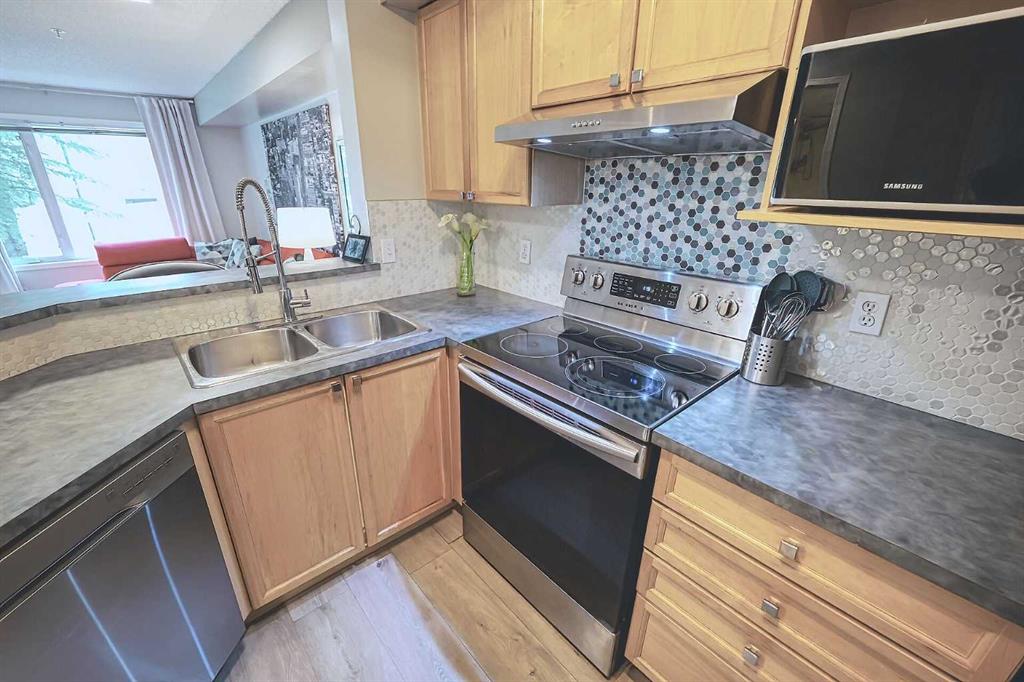 LAKE ACCESS! Live your best lake life year-round in beautiful Arbour Lake---Calgary’s only NW lake community. Whether it’s swimming, boating, or fishing (catch/release rainbow trout) in the summer; skating, skiing, snowshoeing or walking the regional pathways in winter, this is lifestyle living at its best. Your first home just got a major upgrade—how often does it come with private lake access to share with family and friends? This one-bedroom + den / office condo is ideal for first-time buyers or those looking to downsize without compromise. Inside, you’ll love the open-concept layout that maximizes space and functionality. The updated kitchen, with newer appliances and unique tiled backsplash, offers ample counter and cupboard space, plus an eat-up bar that makes entertaining easy. Additional upgrades include wide board white oak laminate flooring throughout, designer lighting and fresh paint. The den is the perfect flex space—set up a home office, guest room, zen yoga or library. Add to that the convenience of in-suite laundry, and you’ve got everything you need. No more ice to scrape from your windshield in winter with heated, underground parking (stall #231) and you've even got a storage locker (#231 in front of the parking stall). You'll love the easy access to Crowfoot C-Train Station and to the mountains via Stoney Trail and Crowchild Trail that connect to the Trans-Canada Highway (Hwy 1). Enjoy golfing at Silver Springs Golf & Country Club, The Hamptons Golf Club or Country Hills Golf Club or enjoy long dog walks at nearby parks like Arbour Ridge Park or Arbour Park 29. Schools nearby; Arbour Lake School, St. Ambrose and Robert Thirsk High School (19min). AND It's just a 12 minute drive to the University of Calgary. There are swimming pools (Melcor YMCA or Shouldice Aquatic Centre), shopping (Market Mall), public libraries like Crowfoot Library and many trendy restaurants. This condo truly checks all the boxes—affordable, practical, and fun. Come see it for yourself and make lake living your reality! Call to view it TODAY!