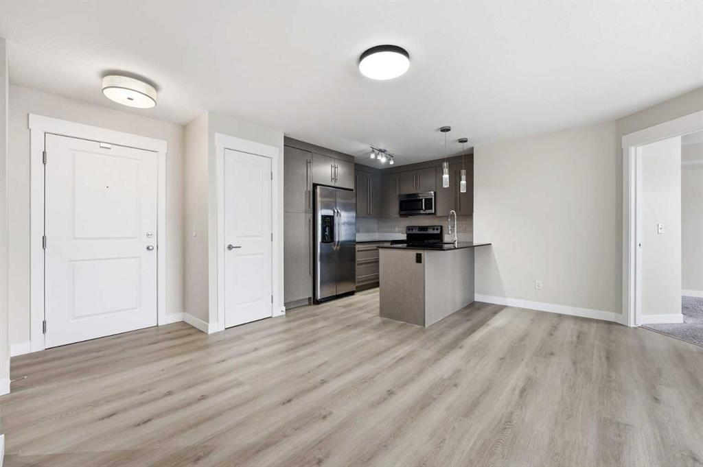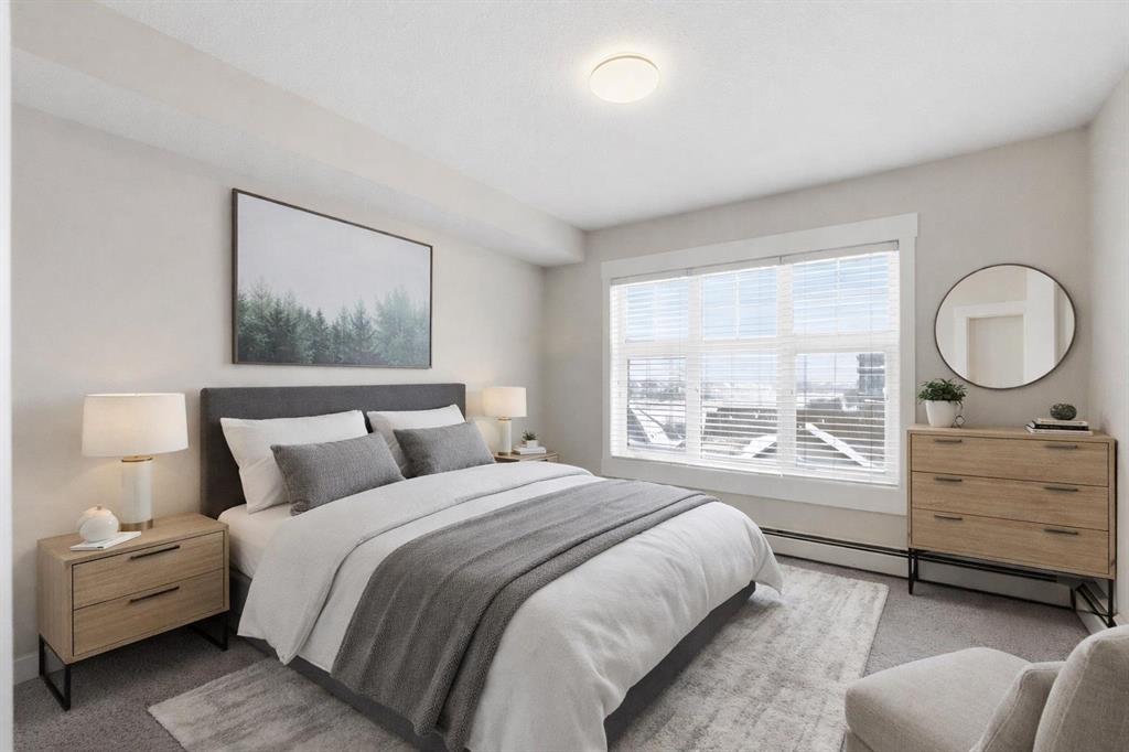 TOP floor / Lake View! Parking & storage just 3 stalls from elevator Elevated living for your next chapter. Rarely available top-floor with lake views in Mahogany, this beautifully updated 2-bedroom, 2-bathroom residence offers the perfect blend of sophistication, privacy, and effortless lifestyle — ideal for those ready to simplify without compromise. Top-floor inventory in this building is limited, and with panoramic views toward the lake, this home offers a quiet, elevated setting that feels both peaceful and refined. Freshly painted and enhanced with new designer flooring, the interior presents a clean, contemporary finish — move-in ready and impeccably maintained. The thoughtfully designed open-concept layout offers comfortable, low-maintenance living with no wasted space. Expansive windows fill the home with natural light while framing calming lake views — a daily reminder that you’ve earned this stage of life. The kitchen is both stylish and practical, featuring stainless steel appliances and generous cabinetry, flowing seamlessly into the dining and living areas — perfect for hosting family or enjoying relaxed evenings at home. The primary suite provides a spacious retreat with dual closets and a private 4-piece ensuite. A second bedroom and full bath offer flexibility for visiting grandchildren, guests, or a dedicated office or hobby space. In-suite laundry adds everyday convenience. Titled underground parking ensures comfort year-round, while secure building access provides peace of mind — perfect for lock-and-leave travel. Living in Mahogany means enjoying private lake access, two beaches, The Beach House, tennis courts, winter skating, boutique shopping, cafés, restaurants, and over 35 km of scenic pathways through the wetlands. With South Health Campus and Seton amenities just minutes away, everything you need is within easy reach. This is more than a condo — it’s a lifestyle upgrade. Low maintenance. Elevated privacy. Lake views. An exceptional opportunity to secure one of Mahogany’s most desirable top-floor residences.