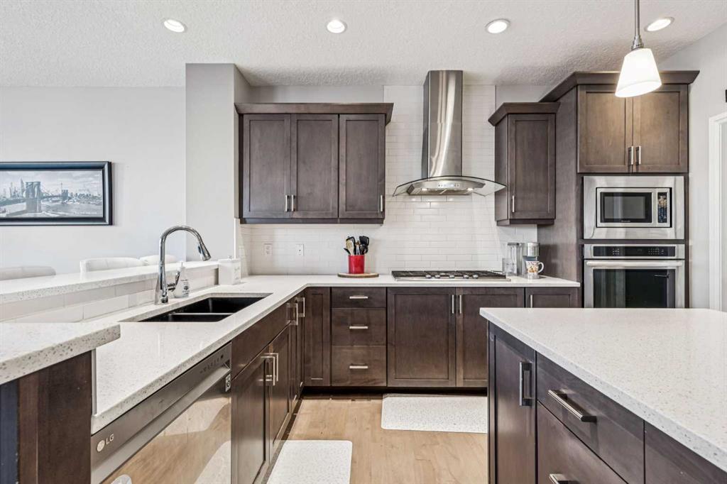 *Open house on Saturday, February 21, 12-2pm* Welcome to Sunset Ridge, where quiet streets, mountain views, and a true sense of community set the stage for everyday living at its finest. This bright and spacious single family home blends warmth, elegance, and functionality in all the right ways. Step inside and be greeted by soaring high ceilings and an abundance of natural light that fills the open-concept main level. Rich hardwood flooring flows seamlessly throughout, creating a warm and cohesive feel. The heart of the home is the stunning kitchen, thoughtfully designed with built-in stainless steel appliances, sleek quartz counters, and a generous island with breakfast bar seating — perfect for morning coffee, casual dinners, or gathering with friends while meals are prepared. The inviting living room is anchored by a cozy gas fireplace, offering the perfect backdrop for relaxed evenings and memorable conversations. Upstairs, a spacious family room creates a flexible retreat for movie nights, a play space, or a quiet reading lounge. This level also features three beautifully sized bedrooms, including a serene primary suite designed to impress. Enjoy the convenience of a Jack and Jill ensuite and not one, but two walk-in closets — delivering both style and practicality. An additional 4-piece bathroom and a dedicated upstairs laundry room add everyday ease to busy family life. Step outside onto the deck and into the expansive garden — an ideal setting for summer barbecues, evening sunsets, or simply unwinding in your own private outdoor space. The double attached garage completes the package, offering convenience and ample storage. This is more than a home — it’s a lifestyle opportunity in one of Cochrane’s most desirable communities. Bright, functional, and beautifully finished, this Sunset Ridge gem is ready to welcome you home.