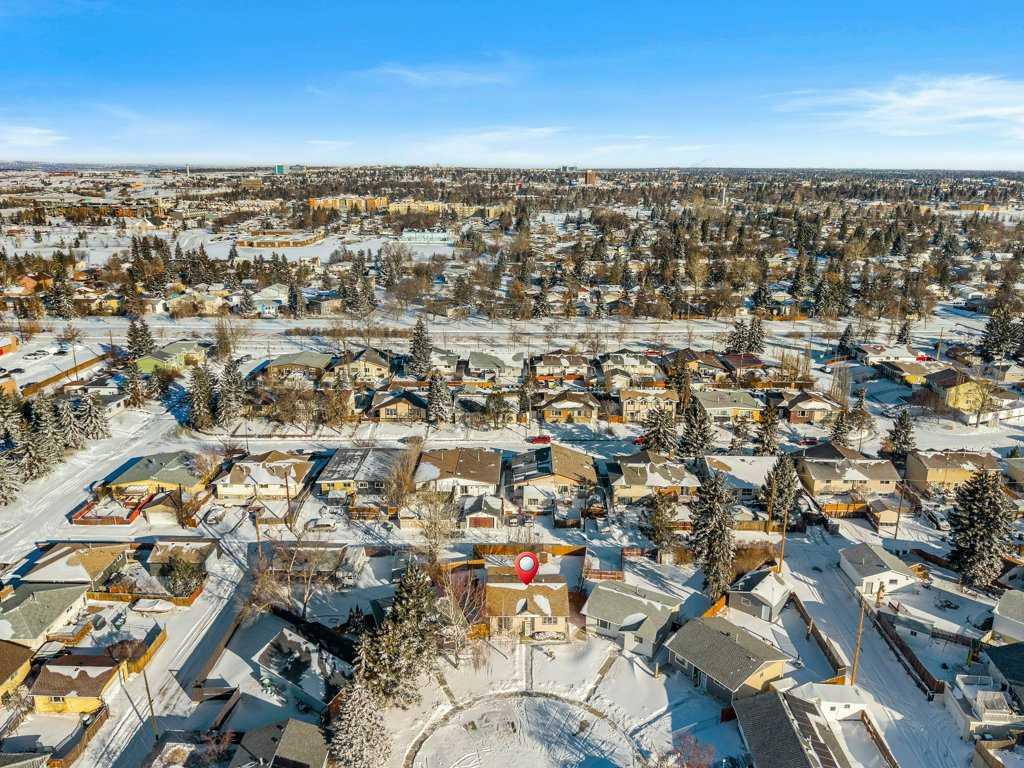 Fantastic turnkey home situated on a huge pie lot in a prime cul-de-sac location. This two-owner family home has been lovingly maintained and updated over the years. Loads of natural light throughout the home. The spacious eat in kitchen is the heartbeat of this home and showcases ample amounts of cabinet and counter space, updated stainless steel appliances and enough space to accommodate a large dining set. Garden door leads out to the large rear deck and backyard. A second door off the kitchen provides access to the 4-season sunroom. Adjacent spacious living room is highlighted by the sunny bay window. Updated main bath features an oak vanity, and deep soaker tub/shower with full tile surround. 2 well sized bedrooms round out the upper level. The fully developed lower level contains the huge family/rec room that offers many flexible uses, 2 more bedrooms and a second, updated full bath. Fully fenced family sized backyard offers mature landscaping, RV parking and room to build your own dream garage. Enjoy the convenience of being minutes to all levels of schools, shopping, C-train, restaurants, parks and splash pad. This is a total package turnkey home. Excellent Value!