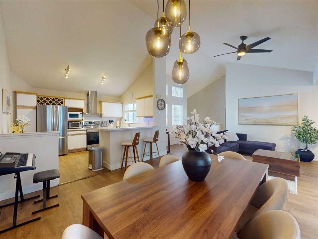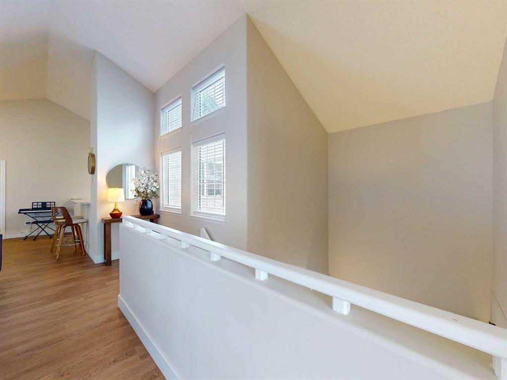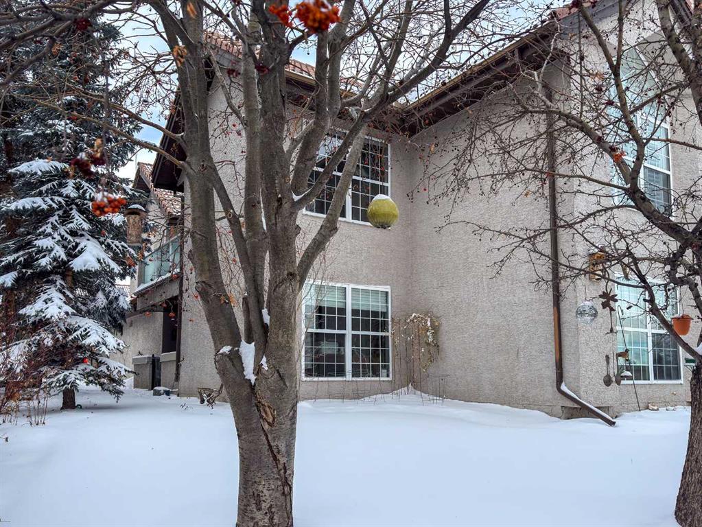 Welcome to Cactus Ridge in Signal Hill, a quiet enclave known for its mature landscaping and walkable west-side convenience. This residence is defined by volume and light. Vaulted ceilings and expansive windows draw the outdoors in, creating an open living space that feels both spacious and relaxed. The living room centers around a classic wood-burning fireplace and looks onto surrounding green space, offering privacy and a calm outlook rarely found in condominium living. The thoughtful layout includes two bedrooms and two full bathrooms with comfortable separation, well suited for guests or a dedicated office. A rear balcony overlooks the seasonal garden and connects to a large private storage room. The building’s timeless stucco exterior and clay tile roof give it enduring character, while the private attached garage with heated floors adds everyday practicality through the winter months. From your door, Sunterra Market and West Market Square are an easy five minute walk. Parks and pathways are throughout the neighbourhood, with quick access to downtown via 17th Avenue and Sarcee Trail. A refined, low-maintenance home in one of Calgary’s most established westside communities, ideal for those who value quiet surroundings, natural light and effortless living.