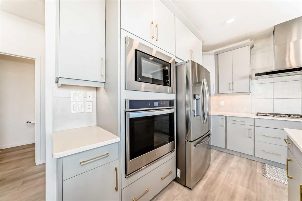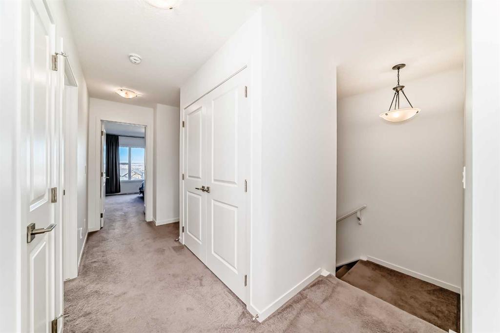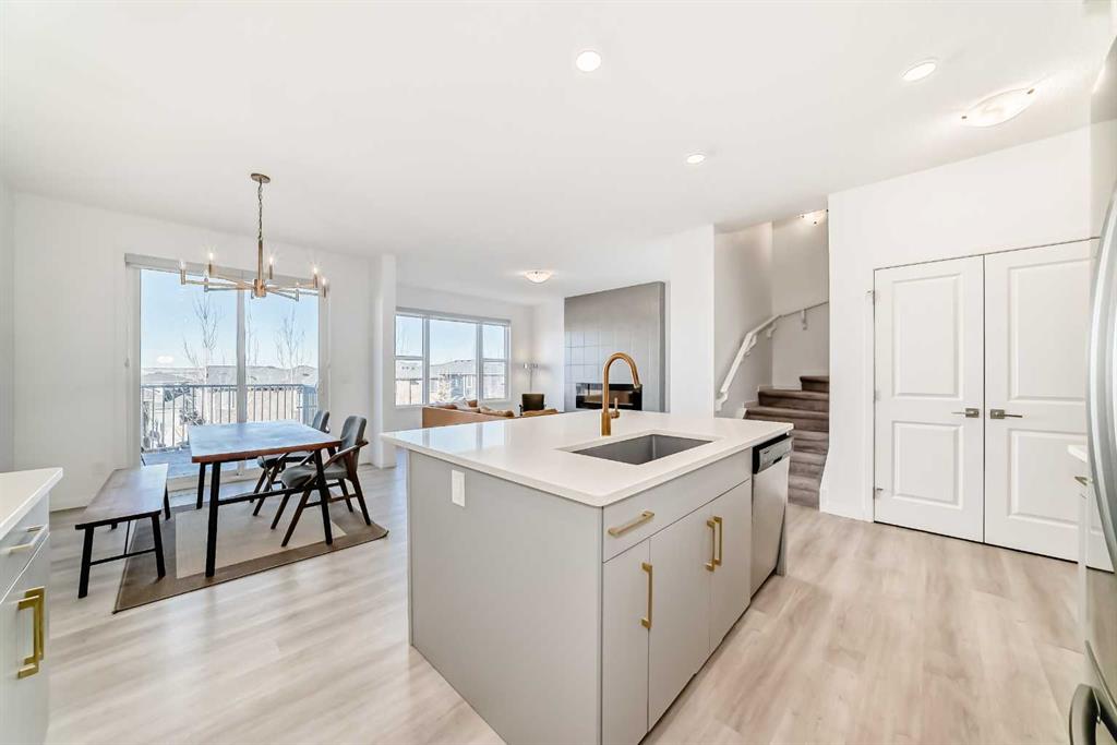 Backing into serene greenspace – Modern walk-out in Crestmont. Experience contemporary living in this stunning 3-bedroom home, perfectly situated on a quiet street backing directly onto a tranquil bike path and green space. The open-concept main floor is flooded with natural light, highlighting a gourmet kitchen designed for entertaining. It features a massive central island, sleek built-in appliances - including a gas cooktop and wall mounted hood fan - and a generous pantry. The adjacent dining area opens through large sliding doors to an elevated deck, ideal for outdoor dining. Across the way, the inviting living room centers around a sleek electric fireplace. The upper level offers a versatile lifestyle with an expansive bonus room and dedicated laundry area. Two sizeable bedrooms share a 4-piece bath, while the primary retreat boasts a luxurious 5-piece ensuite with dual vanities, a deep soaker tub and a glass-enclosed shower. The walk-out basement provides immediate access to the outdoors, leading you towards the nearby park, playground and sports court just a short walk away. This home perfectly balances modern luxury with the natural beauty of Crestmont. Don’t miss out, book your private showing today!