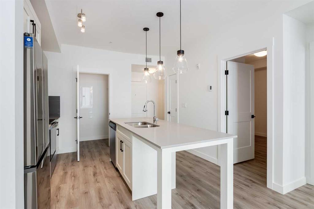 Welcome to this beautifully upgraded 2-bedroom, 1-bathroom main-floor unit in the sought-after community of Seton, located in the Seton West complex. Featuring 9’ ceilings, luxury vinyl plank flooring, and a bright open-concept layout, this home offers modern comfort and effortless living. The contemporary kitchen showcases quartz countertops, stainless steel appliances, and a large island with built-in dining. Oversized patio doors lead to your private, full-width east-facing patio overlooking greenspace — complete with a gas BBQ hookup and convenient ground-floor access. Two well-sized bedrooms, a pristine 4-piece bath, walk-in laundry with custom cabinetry, pantry storage, titled underground parking, and a separate storage locker add everyday functionality. Enjoy unbeatable walkability to shopping, dining, schools, South Health Campus, and the YMCA Calgary - Brookfield Residential YMCA at Seton, with quick access to Deerfoot Trail and Stoney Trail. Perfect for first-time buyers, downsizers, or investors — move-in ready and not to be missed!