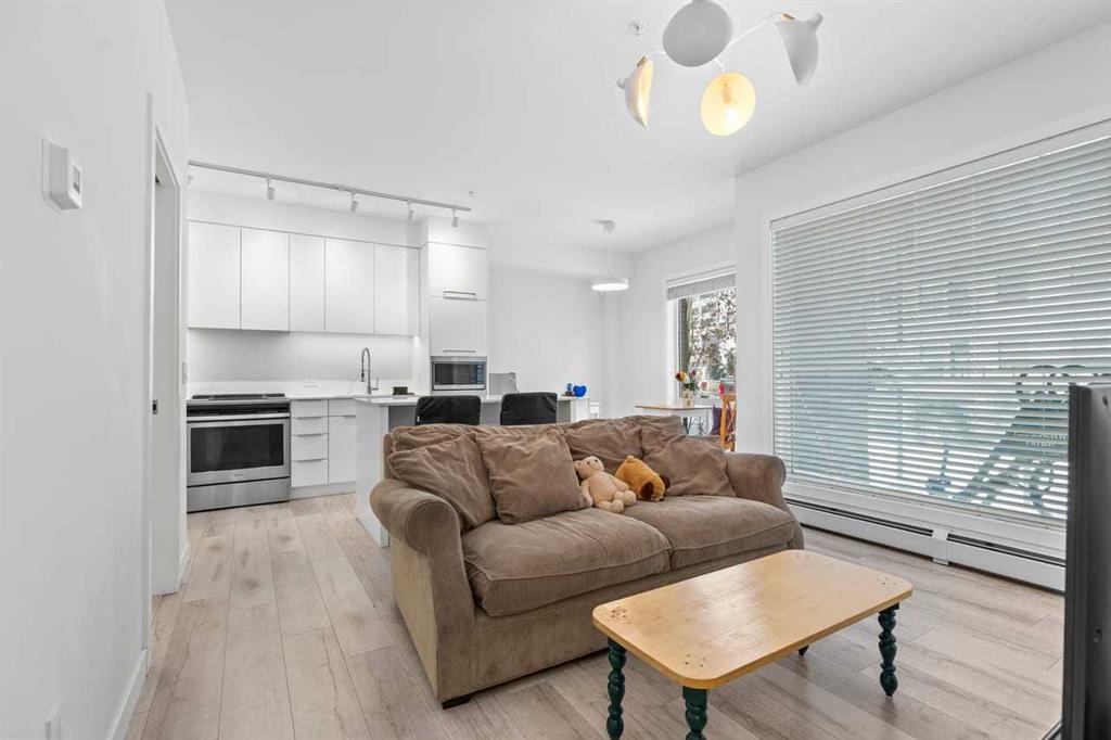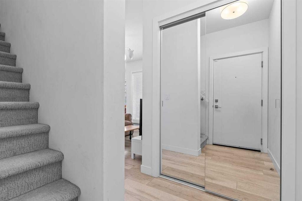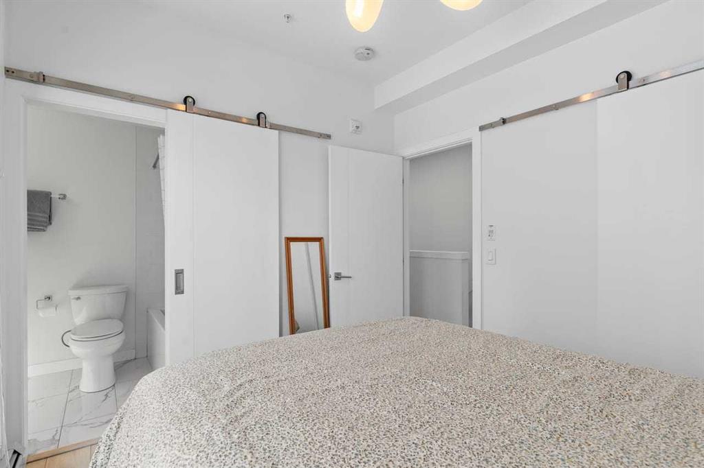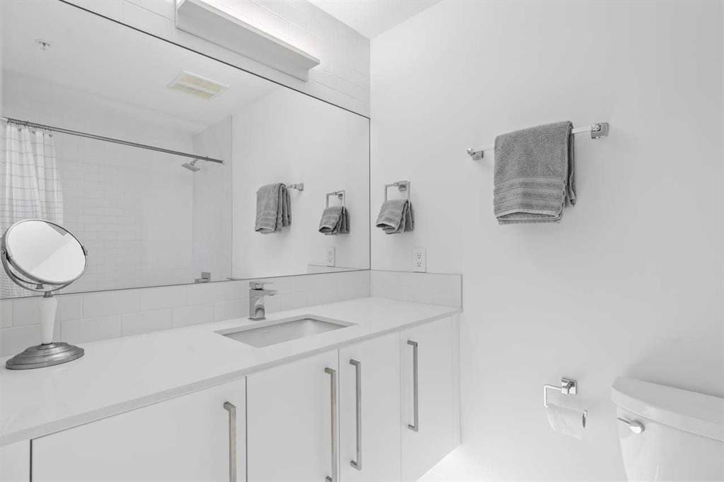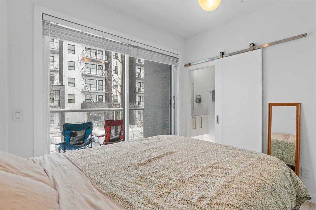 Welcome to Noble by Truman, an exceptional townhome-style residence in the heart of Calgary’s award-winning University District — one of only three communities in Canada where every building meets a minimum Built Green Gold certification. Designed for vibrant urban living with a remarkable Walk Score of 90, everything you need is just steps from your door — parks, cafés, restaurants, shopping, and entertainment. This rare two-level condo with a private exterior entrance offers the feel of a townhome with the convenience of condo living. Inside, you’ll find 2 bedrooms and 2.5 bathrooms thoughtfully laid out across two spacious levels, plus interior access to the building lobby and facilities, and your titled underground parking stall. The main level showcases 9’ ceilings, expansive south-facing windows, and contemporary laminate flooring throughout both floors. The gourmet kitchen is beautifully appointed with quartz counter tops, full-height cabinetry, a designer panel-ready energy-efficient appliance package, LED under-cabinet lighting, and an upgraded island featuring additional drawers and a 12" overhang — perfect for casual seating and entertaining. Upstairs, the bright and airy bedroom level continues with 9’ ceilings, attractive barn doors for closet’s and en-suite bath and premium finishes. Both bedrooms enjoy abundant natural light, and the well-appointed upgraded bathrooms carry through the home’s modern aesthetic. Enjoy not one, but two private south-facing outdoor spaces — a main-floor patio complete with gas line for your BBQ, and morning coffee, and a second upper patio, off the primary bedroom, perfect for evening relaxation outdoors. Hosting guests is effortless with convenient street parking right outside your private entrance, two underground visitor stalls, and additional exterior visitor parking. The location is truly unbeatable — minutes to the University of Calgary, Alberta Children’s Hospital, Foothills Medical Centre, and surrounded by boutique shopping, dining, a theatre, and beautiful green spaces connected by wide pedestrian-friendly sidewalks. Modern design, sustainable living, and an unbeatable lifestyle — this is University District living at its finest.