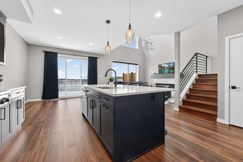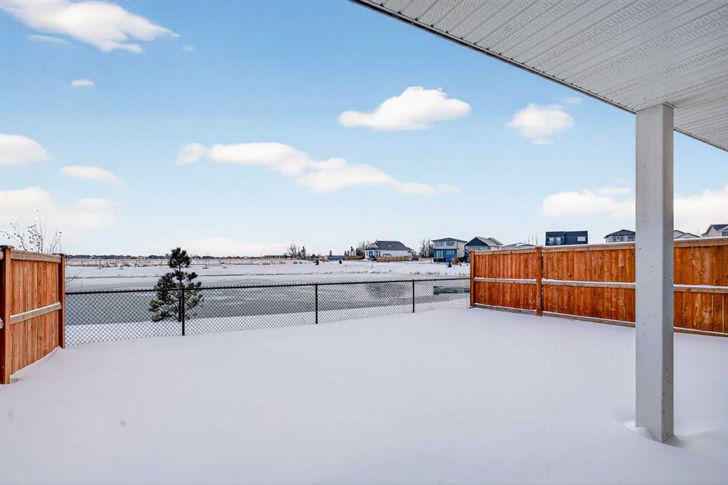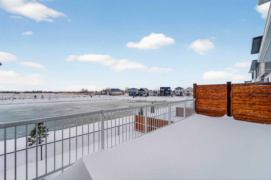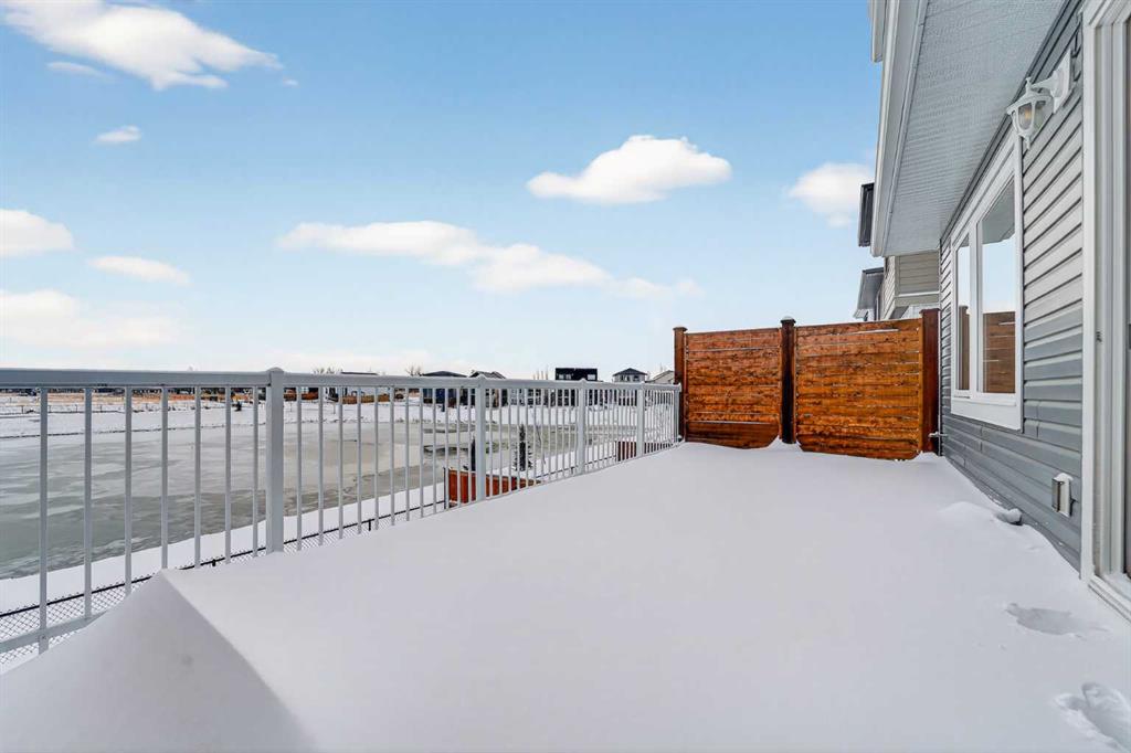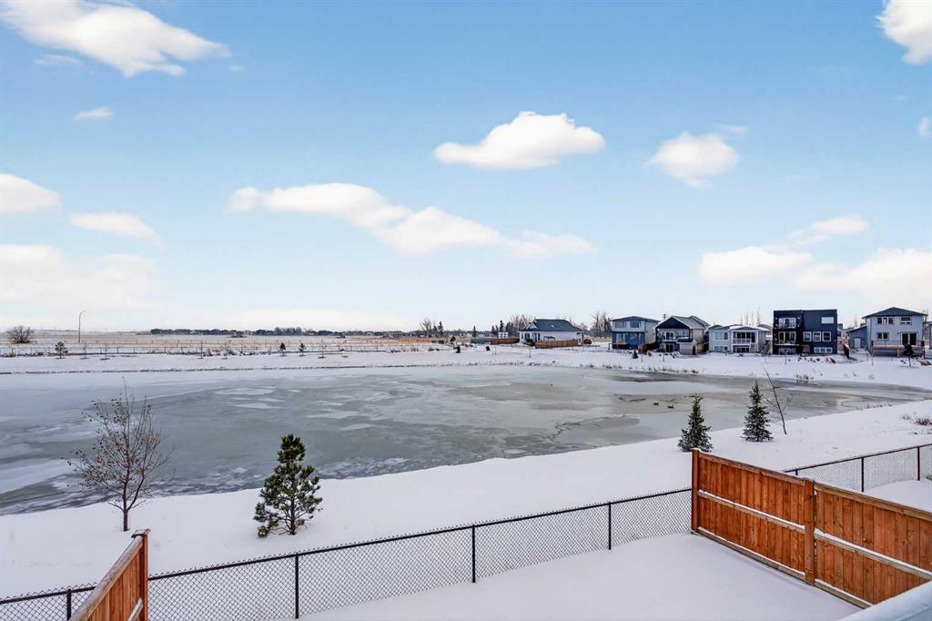 This next-to-new Southbrook home is anything but your typical spec build. Backing directly onto a tranquil pond with a walkout basement and full-length deck, it delivers the kind of view and functionality buyers wait years for. Southbrook continues to be one of Lethbridge’s most sought-after neighbourhoods for good reason. You’re minutes from Costco, Superstore, major shopping, Henderson Park, Evergreen Golf Centre, and the Lethbridge NMAX Centre, making everyday convenience feel effortless. Step inside and the first thing you’ll notice is the dramatic open-to-above living room filled with natural light and framed by expansive windows overlooking the pond. A striking chandelier anchors the space, adding just the right amount of sophistication to the airy design. The main floor office offers flexibility for remote work or a quiet retreat. The kitchen is elevated well beyond builder standard. It features upgraded quartz countertops with elegant veining, a dual-door fridge and freezer combo, built-in oven and microwave, and a statement Bertazzoni gas range. The walk-through pantry includes upgraded shelving and connects seamlessly to the mudroom and the oversized double garage, which has been extended two feet on each side for extra breathing room. Just off the dining area, sliding glass doors open to a full-length deck complete with privacy walls and stairs down to grade. From here, the pond views become part of your daily routine. Upstairs, the primary bedroom continues to capitalize on the view with large windows overlooking the water. The ensuite feels spa-inspired with a standalone soaker tub, dual vanities, abundant cabinetry, and a fully tiled walk-in shower. The walk-in closet connects directly to the upper laundry room, creating a layout that feels both practical and refined. This level also features a generous bonus room, two additional bedrooms, and a thoughtfully designed four-piece bathroom with a separate vanity area and pocket door to the tub and toilet. The walkout basement is undeveloped but far from basic. It has been upgraded with additional windows and rough-ins for a future bathroom and kitchen or bar area. Plumbing is already in place, and the furnace includes a damper system that would allow for separated heating if future development included a suite. The groundwork has been thoughtfully prepared. Outside, the property is fully landscaped with additional concrete and a finished pathway leading from the front yard to the backyard and undrground sprinklers. Combined with the pond setting, upgraded finishes, and functional layout, this home stands out in both design and long-term potential. Homes with this level of finish, location, and view rarely come together this cleanly.