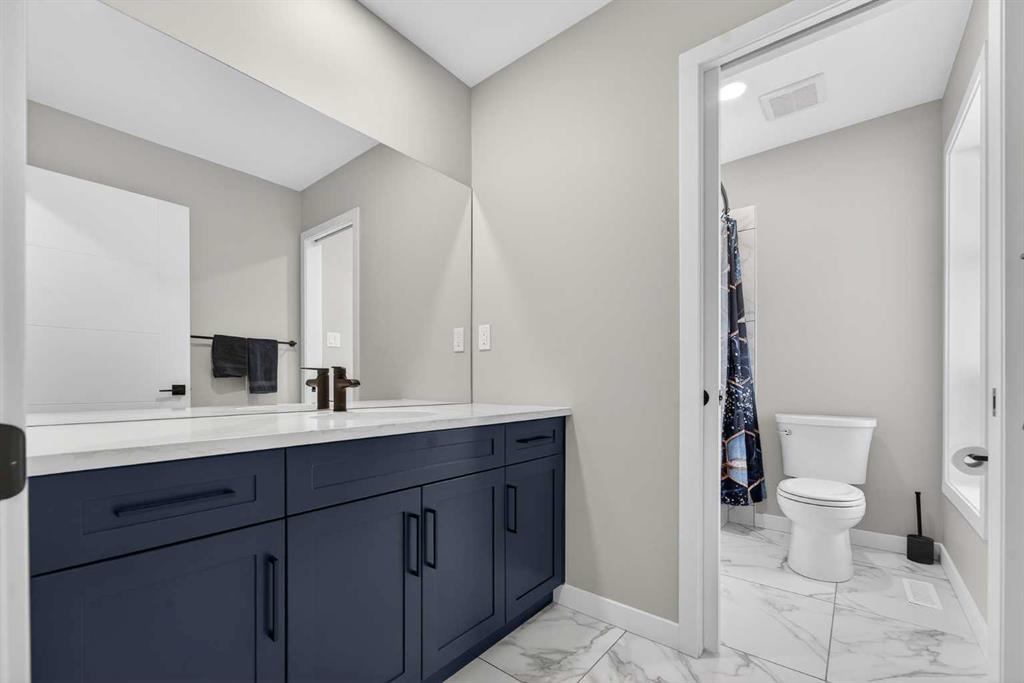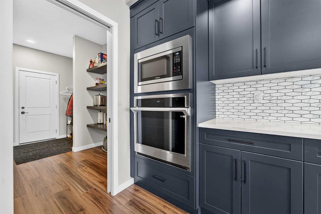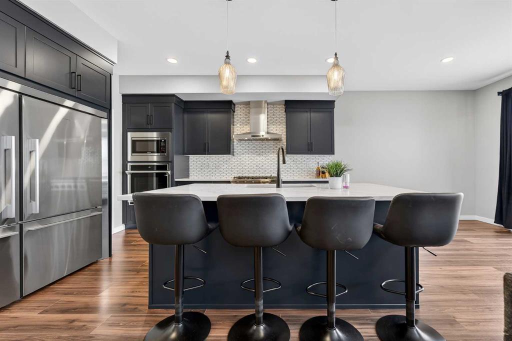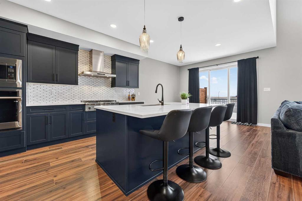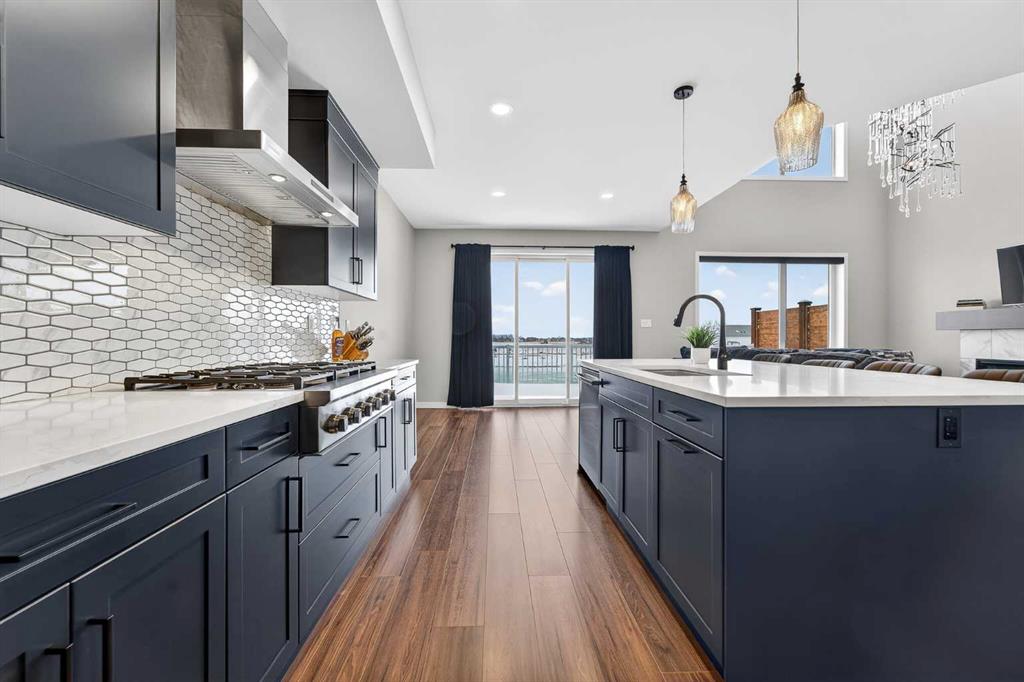 This next-to-new Southbrook home is anything but your typical spec build. Backing directly onto a tranquil pond with a walkout basement and full-length deck, it delivers the kind of view and functionality buyers wait years for. Southbrook continues to be one of Lethbridge’s most sought-after neighbourhoods for good reason. You’re minutes from Costco, Superstore, major shopping, Henderson Park, Evergreen Golf Centre, and the Lethbridge NMAX Centre, making everyday convenience feel effortless. Step inside and the first thing you’ll notice is the dramatic open-to-above living room filled with natural light and framed by expansive windows overlooking the pond. A striking chandelier anchors the space, adding just the right amount of sophistication to the airy design. The main floor office offers flexibility for remote work or a quiet retreat. The kitchen is elevated well beyond builder standard. It features upgraded quartz countertops with elegant veining, a dual-door fridge and freezer combo, built-in oven and microwave, and a statement Bertazzoni gas range. The walk-through pantry includes upgraded shelving and connects seamlessly to the mudroom and the oversized double garage, which has been extended two feet on each side for extra breathing room. Just off the dining area, sliding glass doors open to a full-length deck complete with privacy walls and stairs down to grade. From here, the pond views become part of your daily routine. Upstairs, the primary bedroom continues to capitalize on the view with large windows overlooking the water. The ensuite feels spa-inspired with a standalone soaker tub, dual vanities, abundant cabinetry, and a fully tiled walk-in shower. The walk-in closet connects directly to the upper laundry room, creating a layout that feels both practical and refined. This level also features a generous bonus room, two additional bedrooms, and a thoughtfully designed four-piece bathroom with a separate vanity area and pocket door to the tub and toilet. The walkout basement is undeveloped but far from basic. It has been upgraded with additional windows and rough-ins for a future bathroom and kitchen or bar area. Plumbing is already in place, and the furnace includes a damper system that would allow for separated heating if future development included a suite. The groundwork has been thoughtfully prepared. Outside, the property is fully landscaped with additional concrete and a finished pathway leading from the front yard to the backyard and undrground sprinklers. Combined with the pond setting, upgraded finishes, and functional layout, this home stands out in both design and long-term potential. Homes with this level of finish, location, and view rarely come together this cleanly.